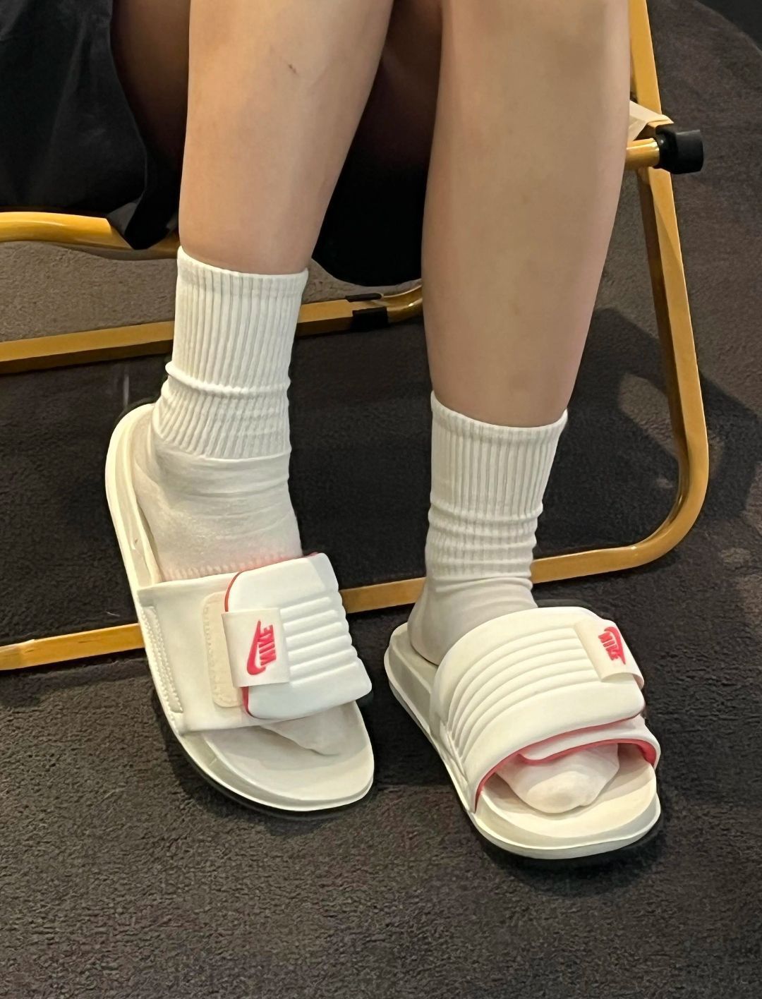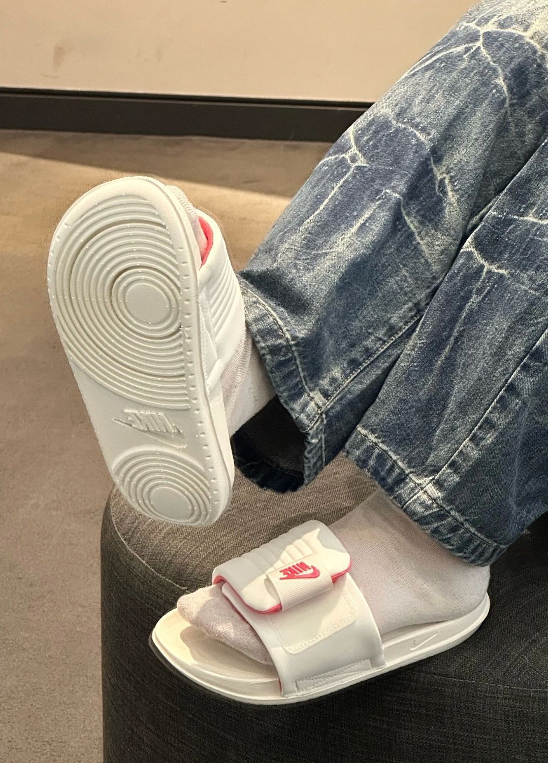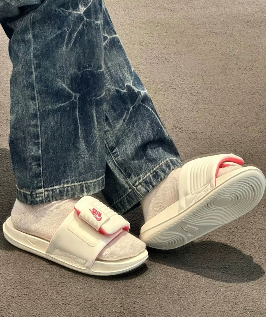 又发现一双宝藏拖👟 上脚软乎乎的 偏小可以大一码哦🦶🏻 粉粉嫩嫩的配色小公主👸 咋就是出街搭配也不赖嘛😊 #拖鞋夏日宝藏穿的很舒服 #甜美女孩的宝藏拖鞋 #今日份穿可爱拖鞋分享 #舒适度满分的拖鞋 #百搭休闲宝藏拖鞋 #nike #女生的宝藏拖 #nike运动拖鞋