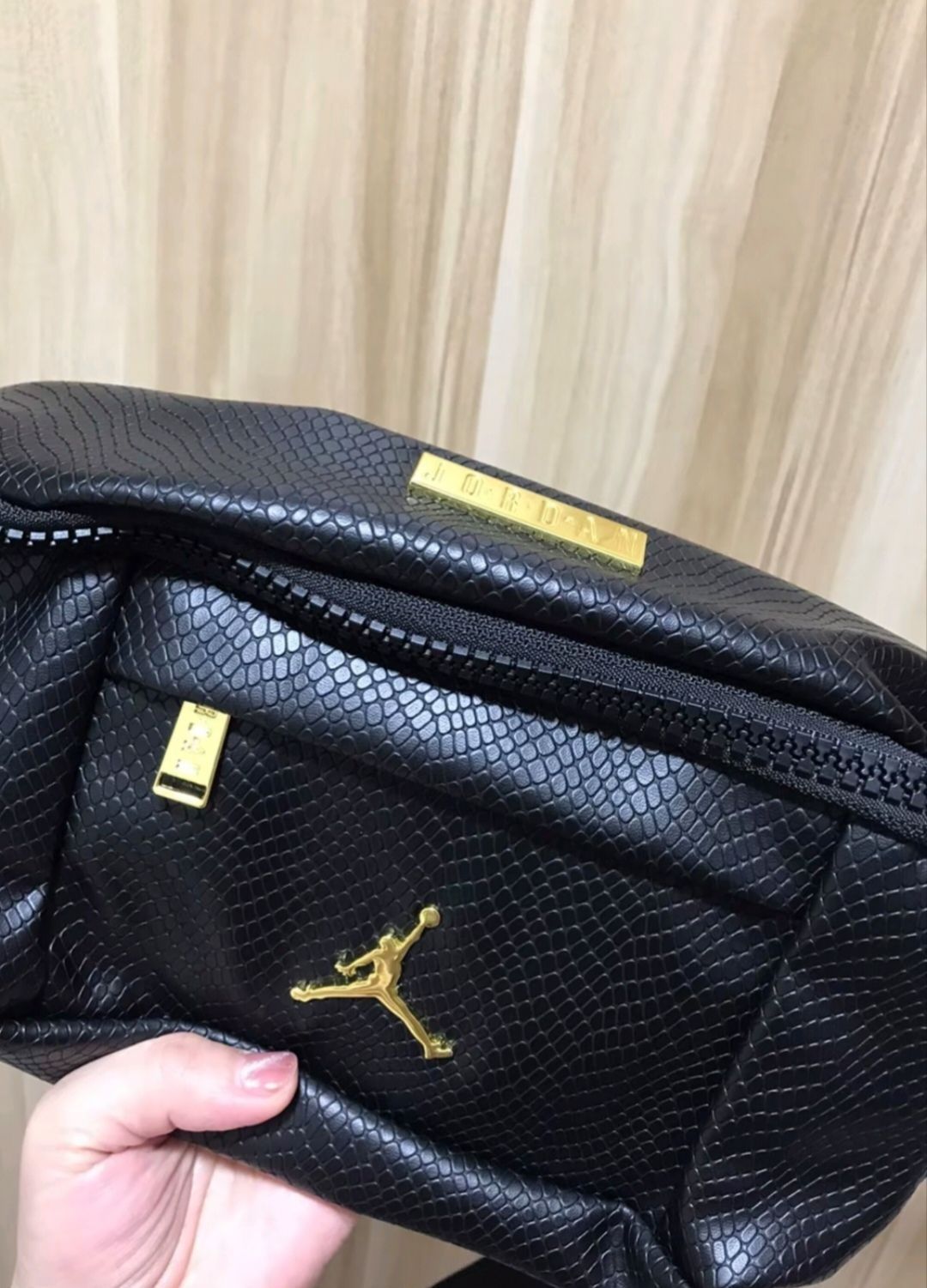 本篇笔记关联了Jordan 金属飞人logo蛇纹高质感人造革拉链开合大容量腰包胸包 黑金 HA5507-013等商品,为用户提供真实的使用体验和购买参考。
