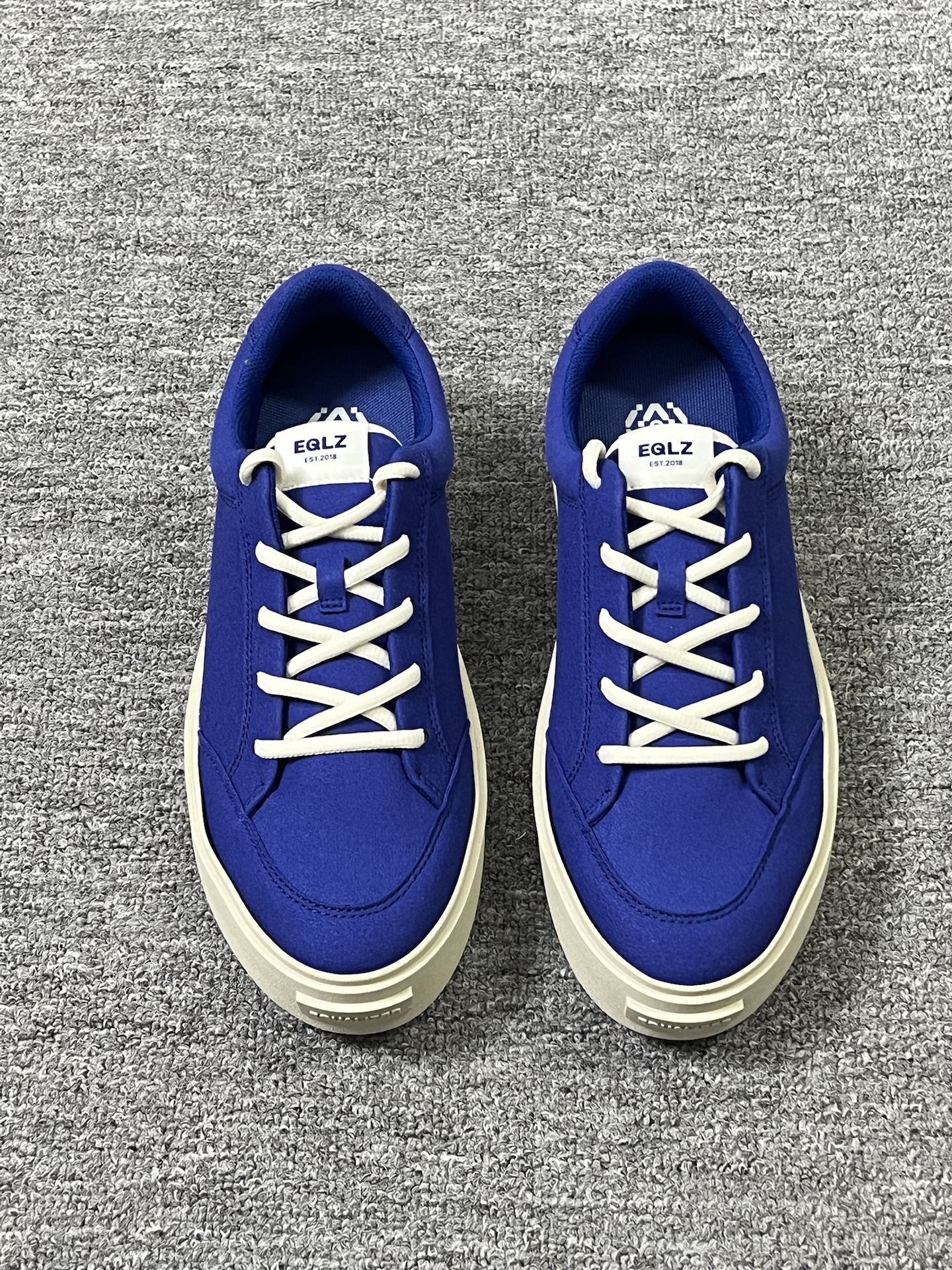 今天和大家分享一双 #EQLZ 家的克莱因蓝板鞋 后跟的EQLZ标志非常的亮眼,辨识度很高 鞋面是帆布的面料,夏天穿透气性很不错 中底做了加厚,我上脚还能增高3cm左右 搭配一条短裤,夏天穿非常的清爽 这双鞋子不偏码,我是按照正常尺码选择的! #把这双鞋焊在脚上 #剪得物扣最快的一双鞋 #潮鞋新品体验官 #潮鞋捕手计划 #战靴设计暗号