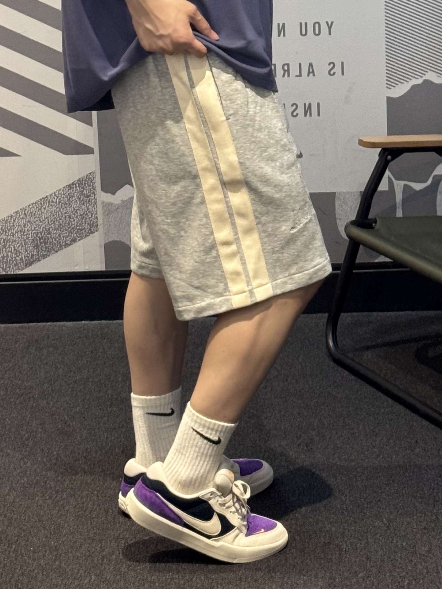 谁懂这件短裤的含金量啊🥺 灰色超显干净‼️ 纯棉面料 五分长度 日常穿也可以轻松拿捏~ 不对称竖条纹 自带层次感 上身嘎嘎显松弛🎧 搭配紫色滑板鞋➕同色系T恤 轻松拿捏夏日松弛感😉 #剪吊牌最快的一次 #618潮服捡漏指南 #夏日少年感出游 #分享男孩子的宝藏短裤 #好晴朗的夏日穿搭