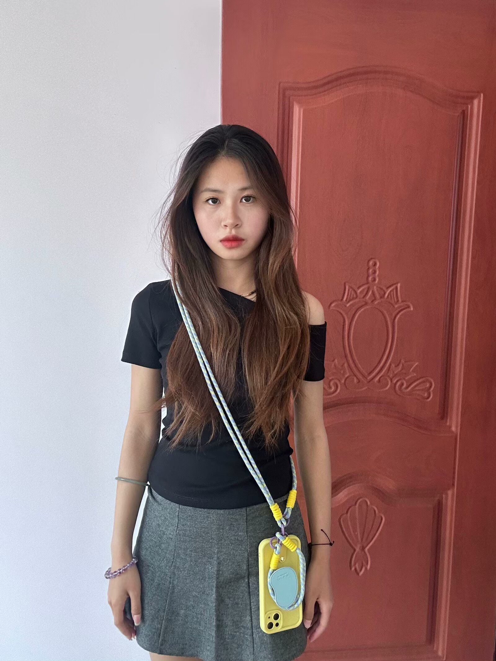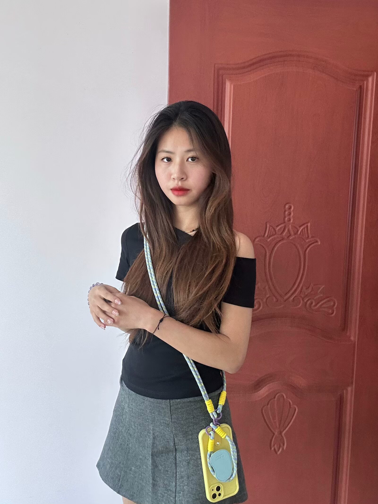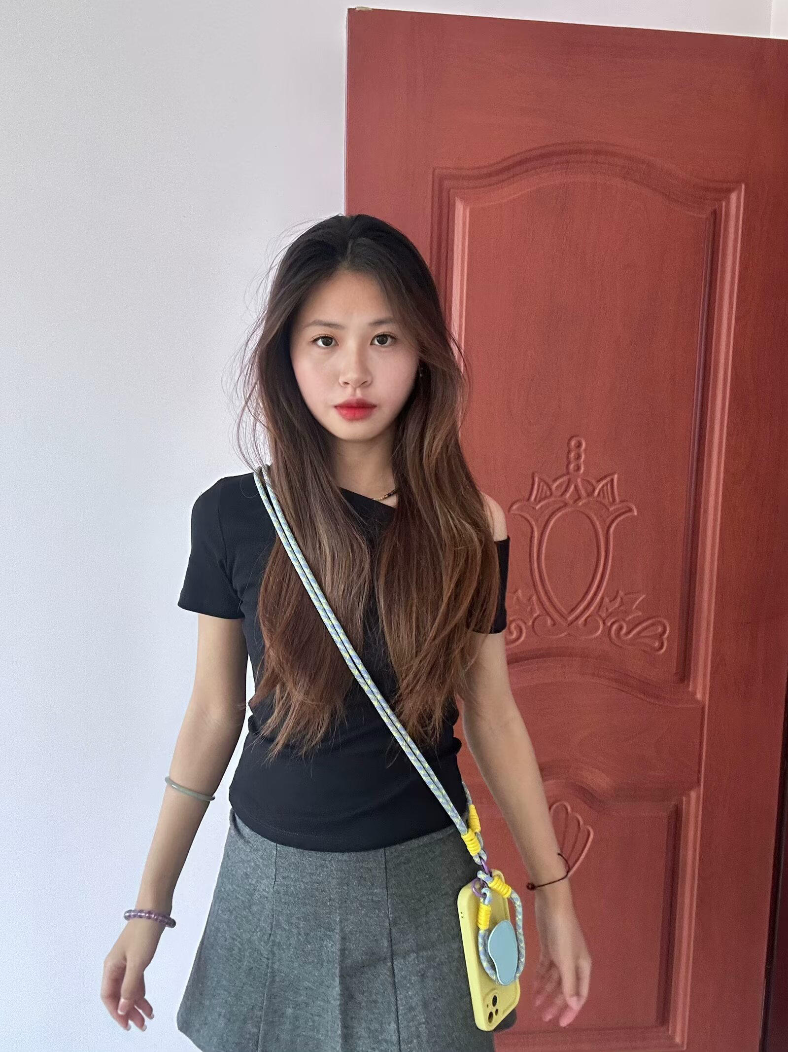 家人们谁懂啊!挖到宝了!黑色斜肩上衣真的太会了,恰到好处地露出迷人肩颈线条,纯欲中带着点小性感。搭配灰色百褶小短裙,俏皮又灵动,满满的青春气息。再配上一双酷帅的马丁靴,甜酷感直接拉满。这套出街,回头率百分百,简直是斩男又斩女,我宣布要把它焊在身上!