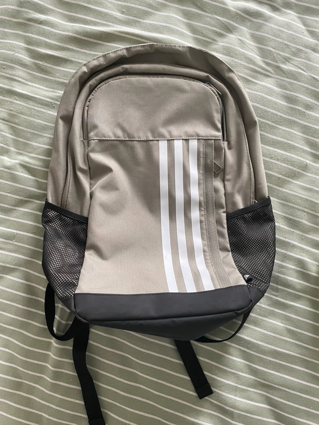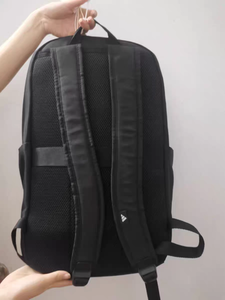 阿迪双肩包收到了,材质结实耐用,质量不错!背包设计合理,两边口袋不是网的,这个设计就很有亮点,方便实用。书包容量很大,出门旅行通勤都很实用,而且书包本身很轻,背起来很舒服。外观简约时尚,颜色百搭。价格实惠,物流速度也很快,性价比超高,强烈推荐大家入手!