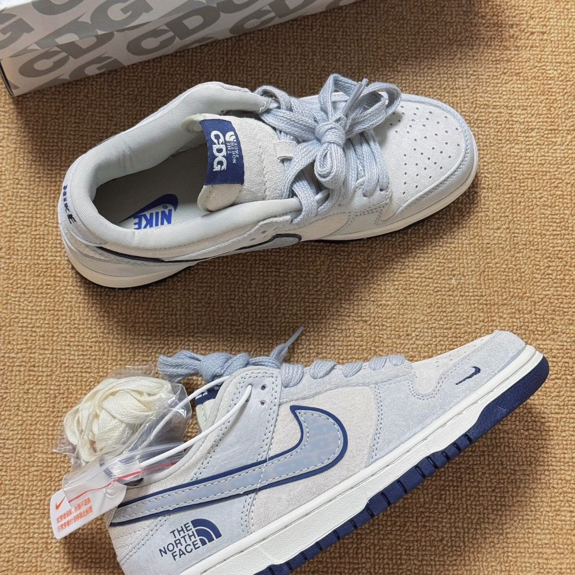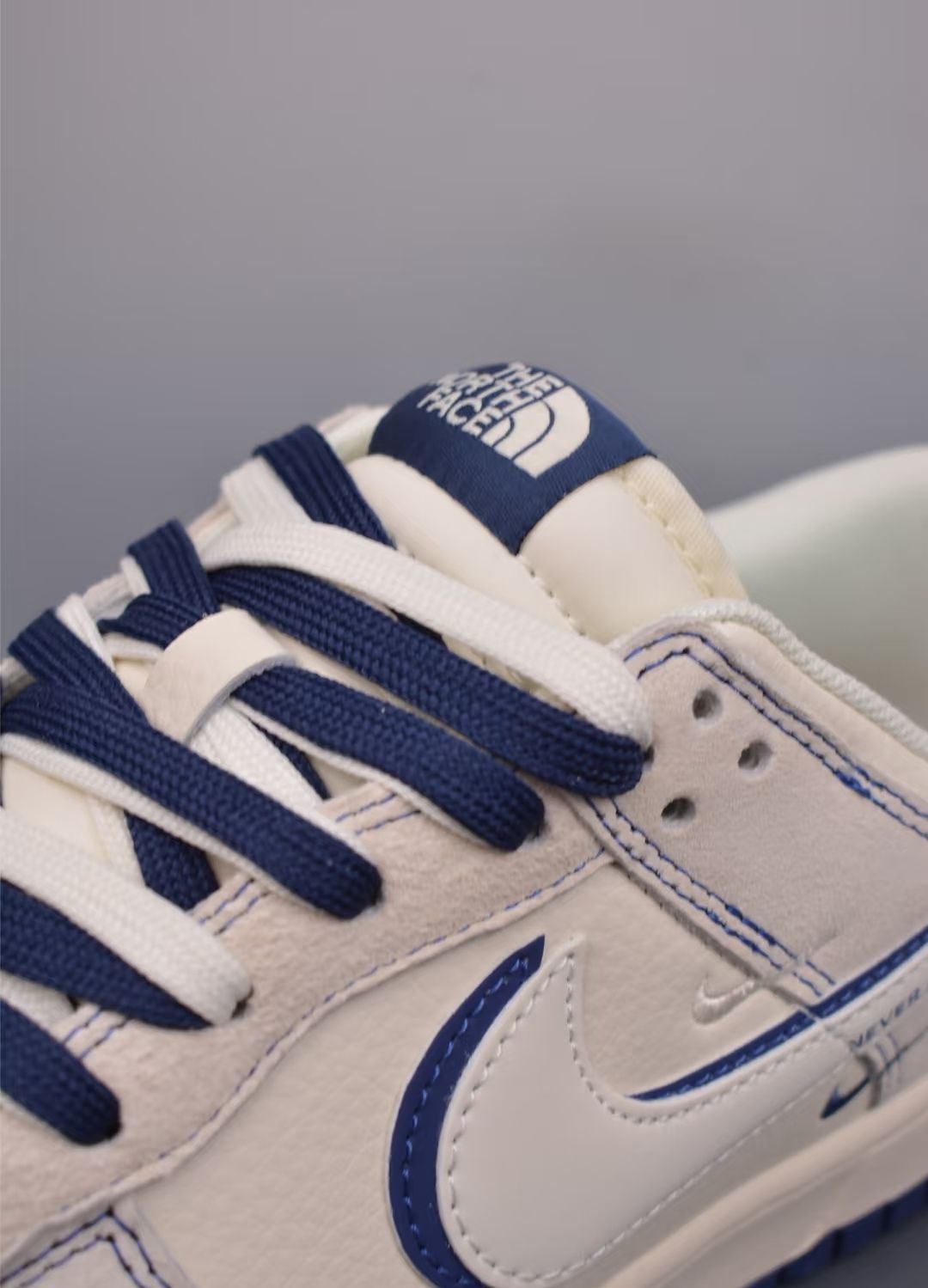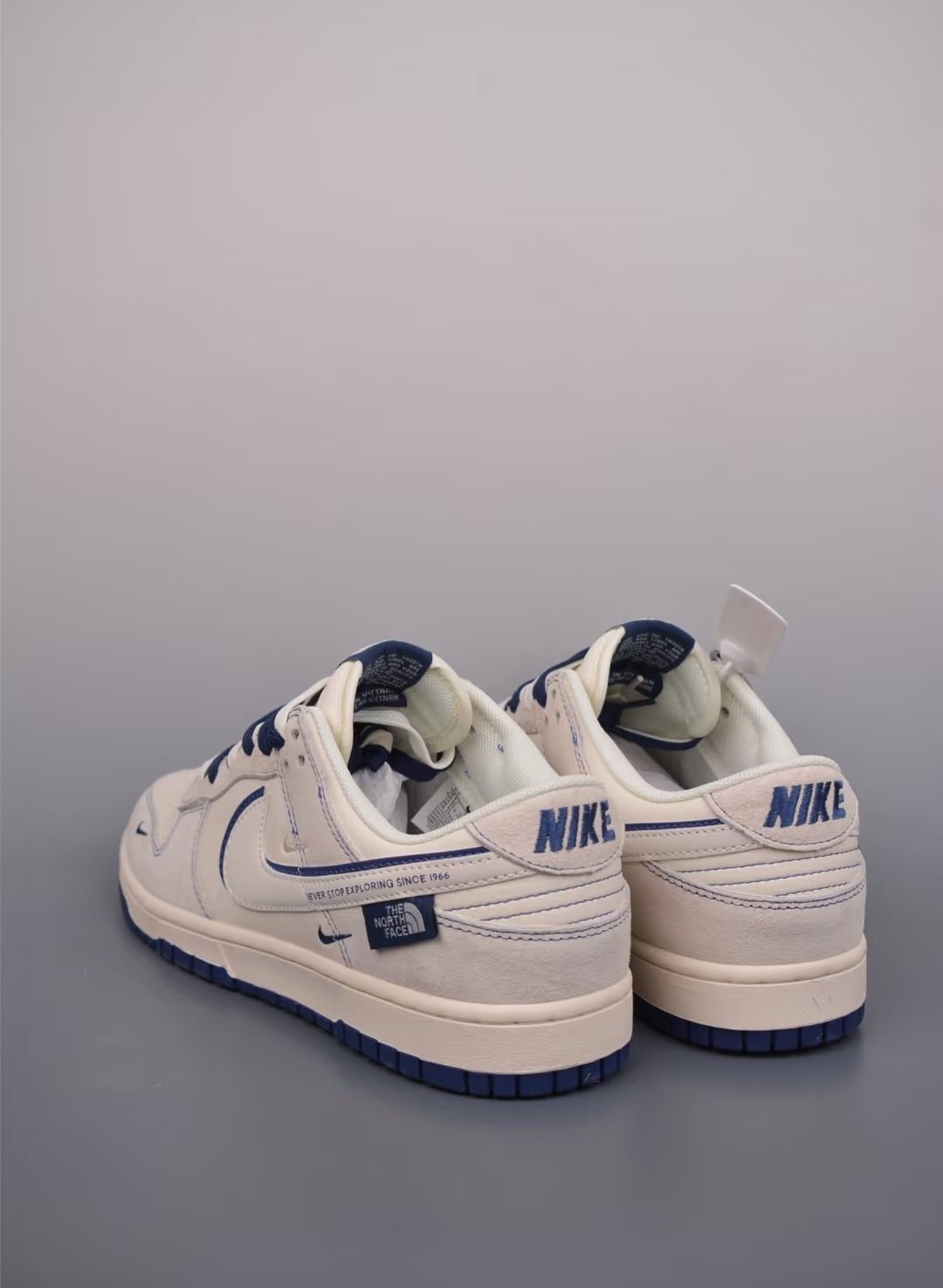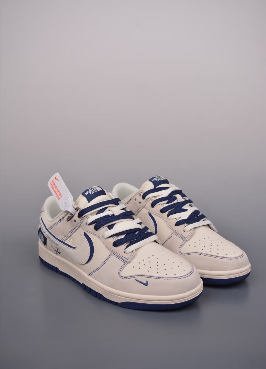 Nike SB Dunk Low 北面联名 被追着问的宝藏板鞋 | Nike x TNF联名太绝啦 家人们谁懂啊,这双Nike和The North Face的联名板鞋我一整个爱住! 奶白色鞋面搭配深蓝细节,简约又高级,随便搭牛仔裤、运动裤都超好看,适配度100%~ 鞋型也很正,上脚显得脚型超好看,而且舒适度也在线,走路久了也不累。 细节更是满满,鞋侧双方logo,彰显独特身份。 有了它,出街就是最...