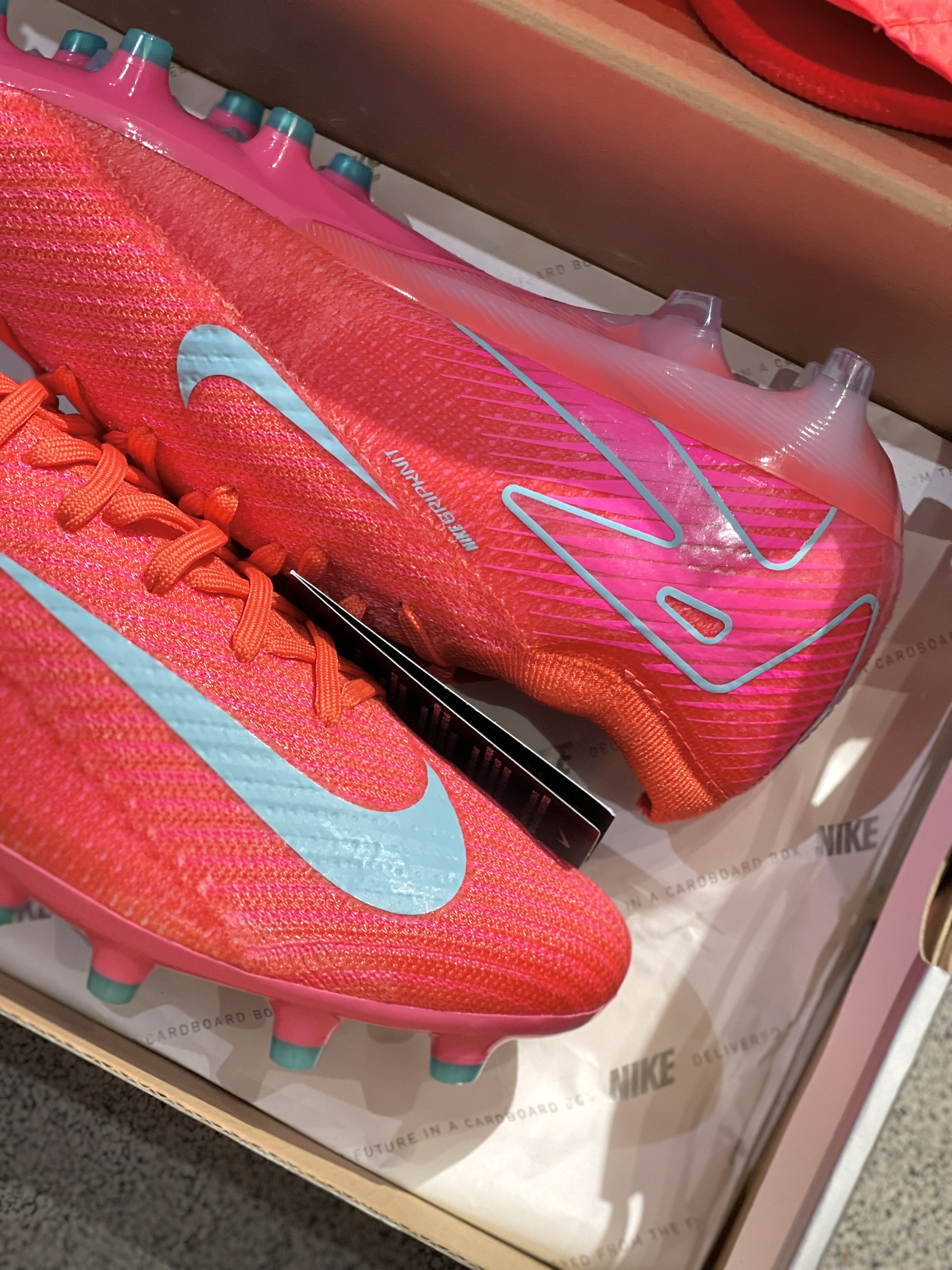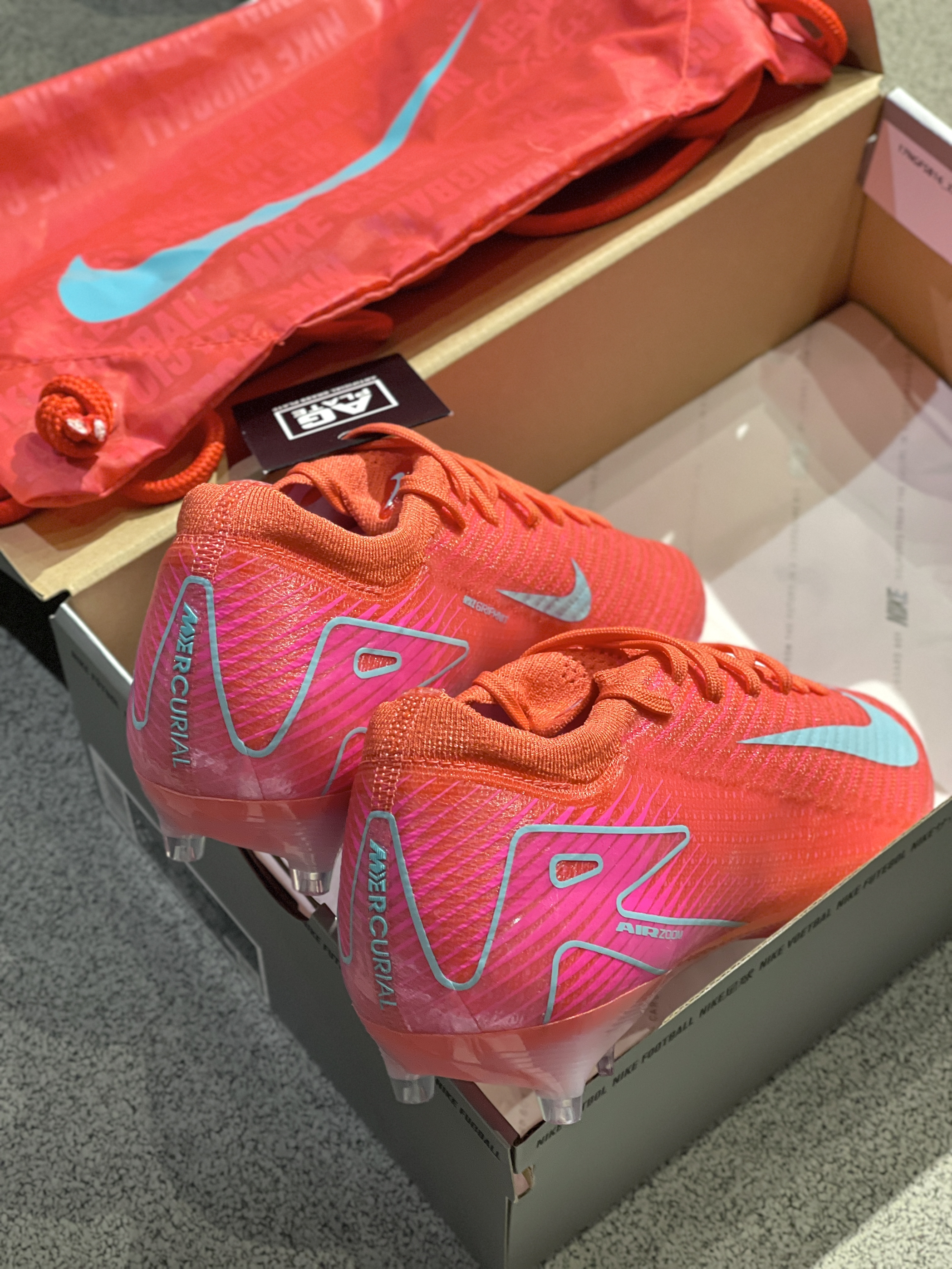 天气越来越热,踢球安排起来,一双烧气的战靴可以督促你的运动!😍 最近6.18好价在得物入手了一双刺客16的新配色,实物开箱着实让我眼前一亮!烧气的红色➕AG大底,人工草的场地就可以使用,内嵌还有Air Zoom气垫,减震性能也可以的!缺点就是容易断钉,不舍得用力!😩