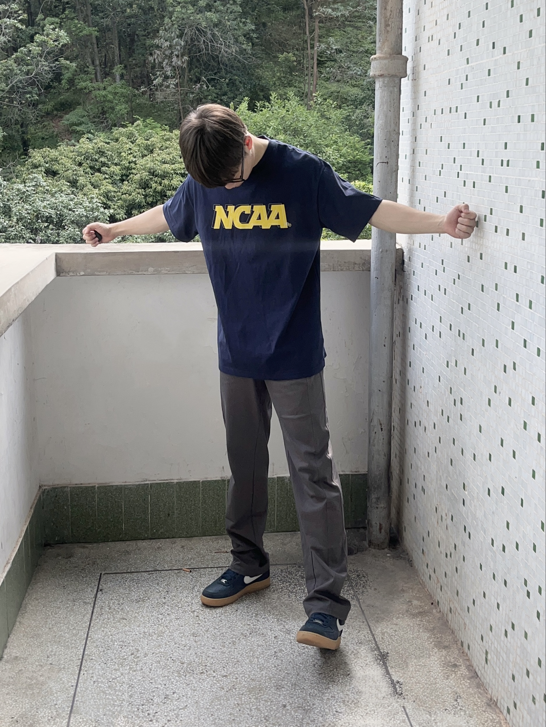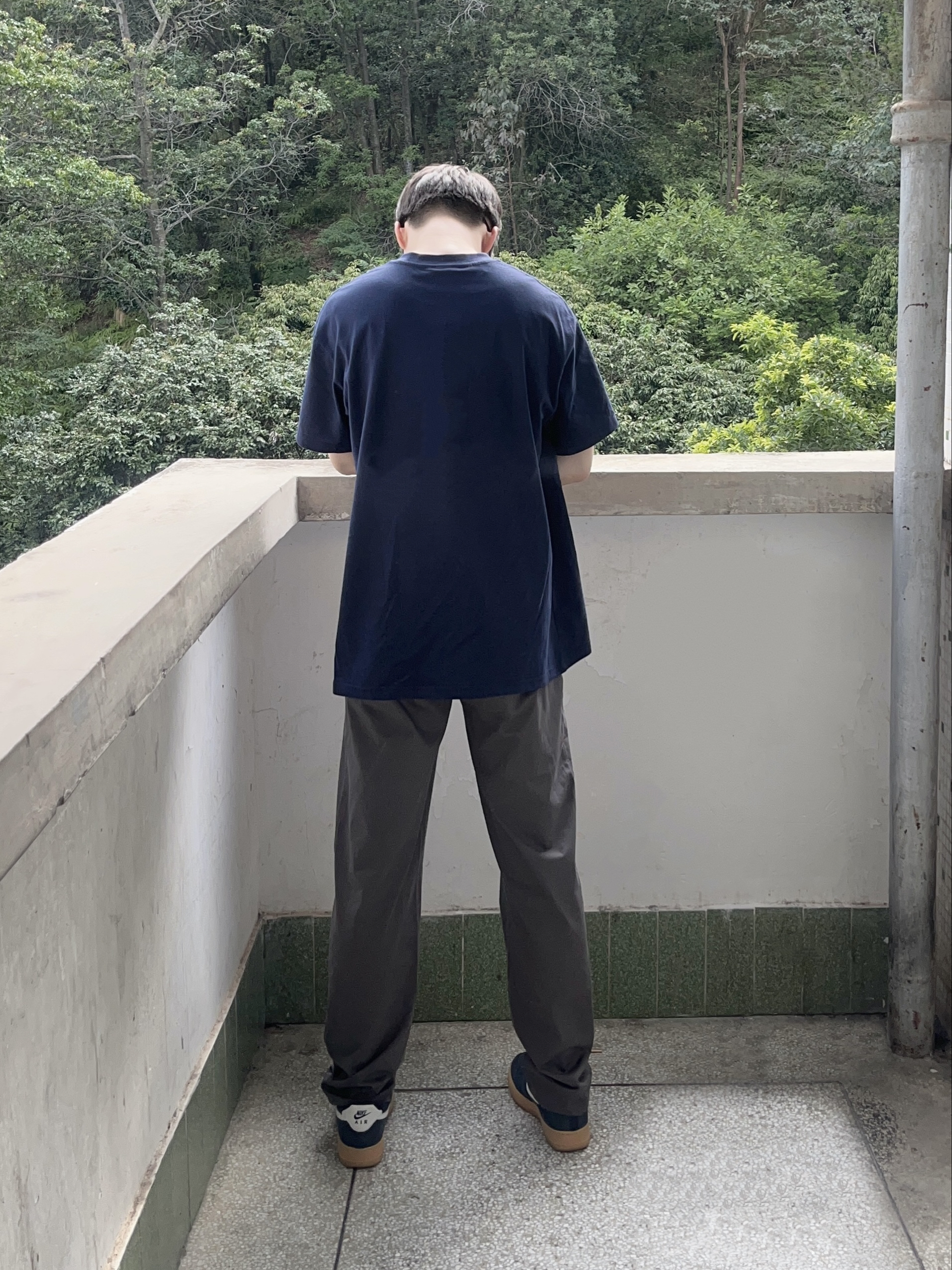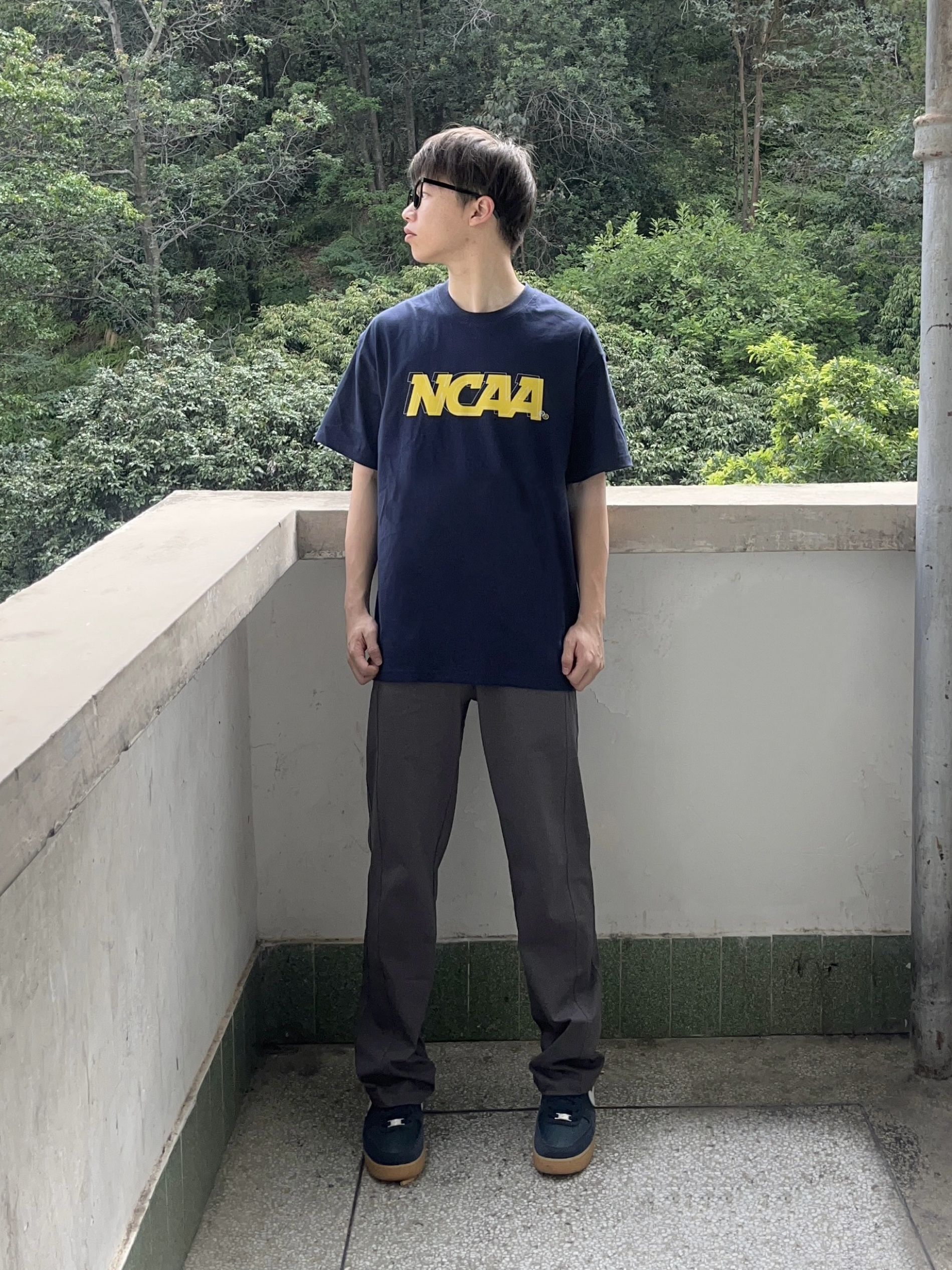 今日份穿搭分享look👀 藏青色印花短袖搭配 bodydream 家的浅灰色直筒休闲裤👖 颜值简约时尚 透气面料舒适透气 版型宽松显腿型 一套搭配下来 夏日Citywalk休闲又百搭🚶