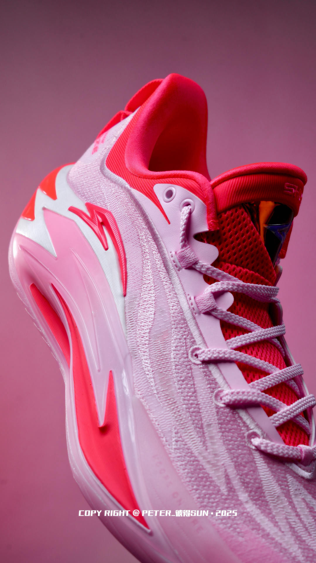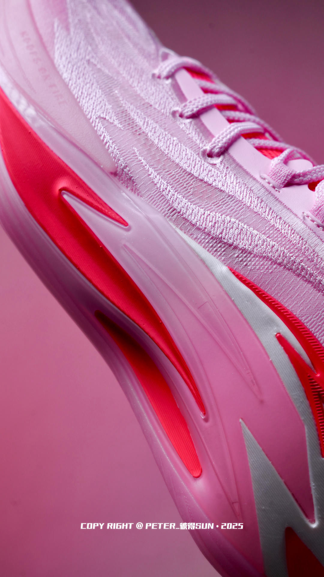心心念念的狂潮7终于到了,这次这个粉焰配色真的戳到我了,我觉得没有男生,打篮球的男生会拒绝❌这个好看的粉色战靴吧。 粉色的渐变和红色搭配,层次感挺不错的,配合狂潮7鞋身的线条,整体视觉上也挺流畅的。 上脚很轻,网面材质的鞋面透气性挺不错的,上脚就能感受不错的场地感感和活动感,中底软弹适中,很舒服,前后的过度顺畅,前掌蹬地发力的回馈很迅速,有种快人一步的感觉,脚踝内侧的填充我挺喜欢的,整个踝部锁定挺...