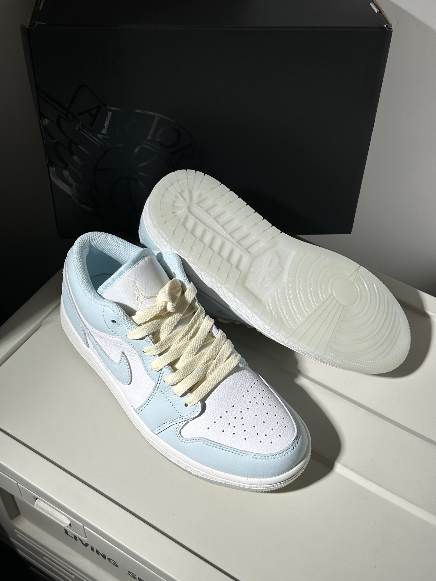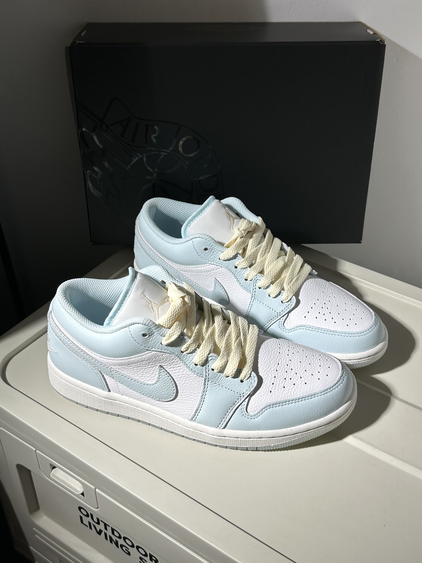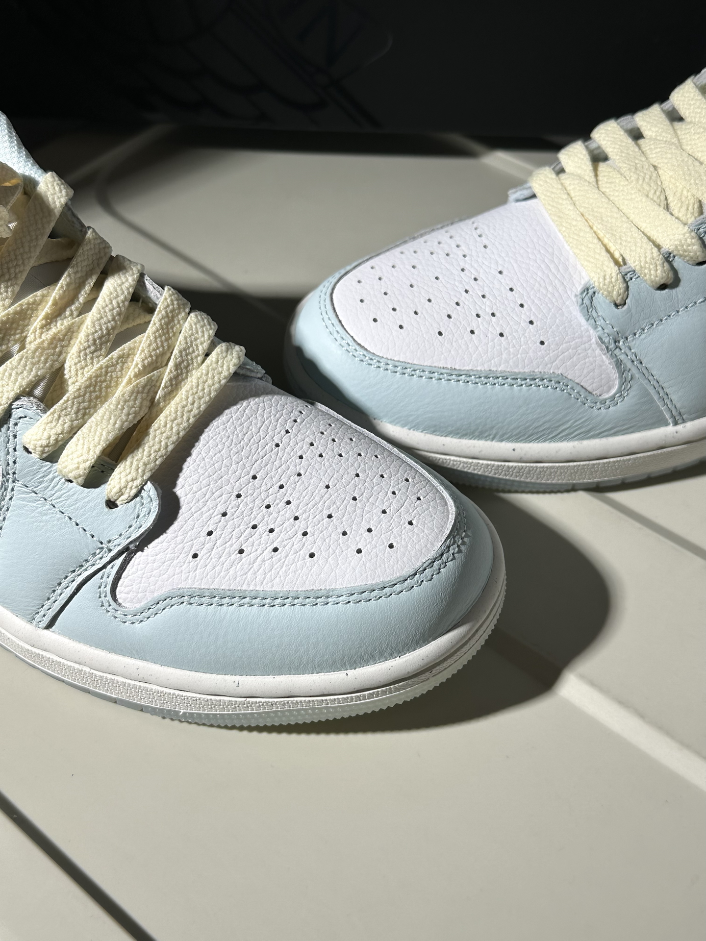 今天和大家分享一下最近发现的宝藏aj1,一起看看鞋子的细节质感如何吧~🥝 − 🏖️配色:最近入手了这双白蓝配色的清爽感AJ1,鞋子采用蓝白配色为主~而且是这种天蓝色🐳,非常适合夏日的凉感穿搭👕,并且鞋带部分是用到米白色与鞋边进行到了一定的呼应,也是加强了一定的复古感🚛,所以穿搭方面的话往那种比较元气复古的风格去穿也是OK的🫧 🍀材质:作为一双SE特别版本的AJ1 low,鞋面全部是用到了头层牛皮...