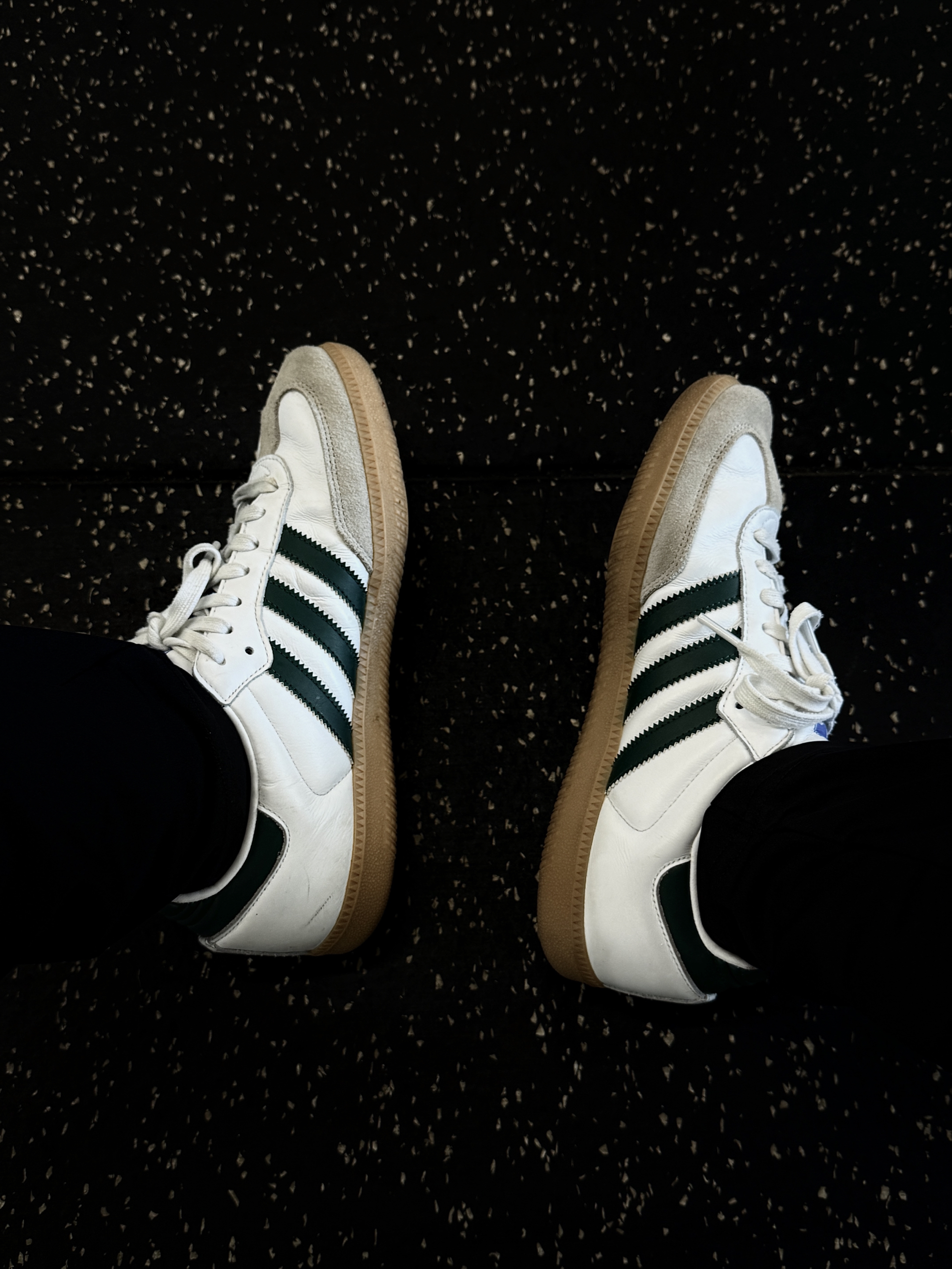 看着耿浩伦—伦哥的视频健身真的是很给力,健身穿德训鞋的体验非同凡响,兄弟们!别再被专业训练鞋割韭菜了!**adidas Samba OG白绿灰**——这双被足球流氓和BLACKPINK捧上神坛的德训鞋,**健身表现居然吊打千元档训练鞋**?! 撸铁3年老炮含泪实测👇 --- ### 🔥 **健身房逆天实测** ✅ **【力量区王炸】稳到教练傻眼!** ▶️ **生胶锯齿底+前掌加宽...