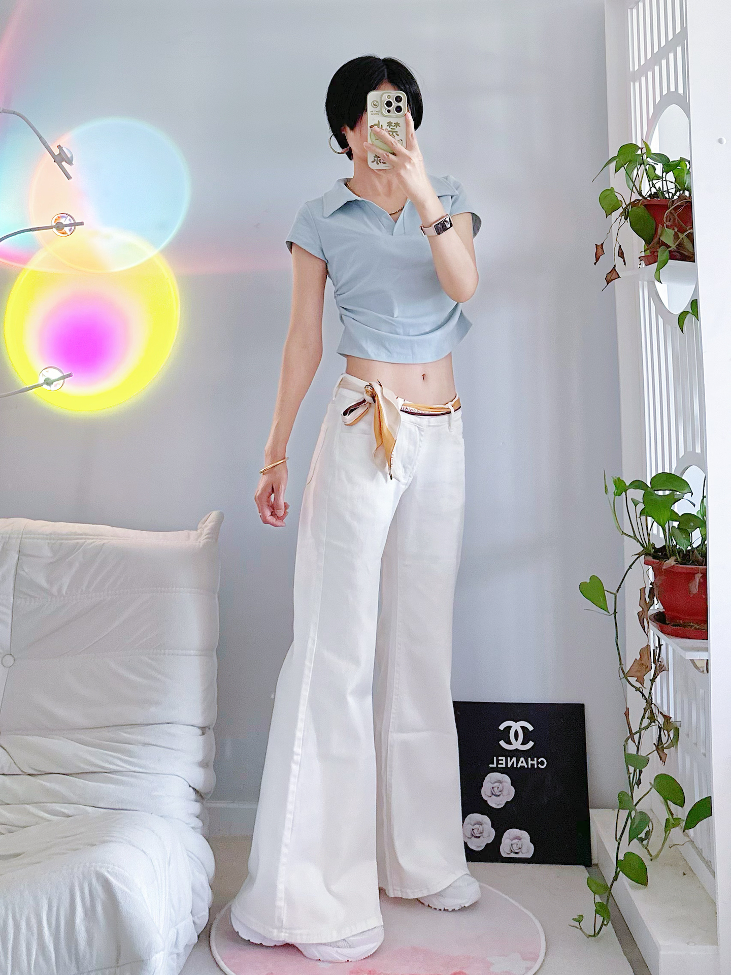 【我的夏日白色系穿搭~👀微喇牛仔裤➕跑鞋】,由用户 蓝心安安 分享,来自辽宁。这是一篇来自识货社区的真实用户分享笔记。