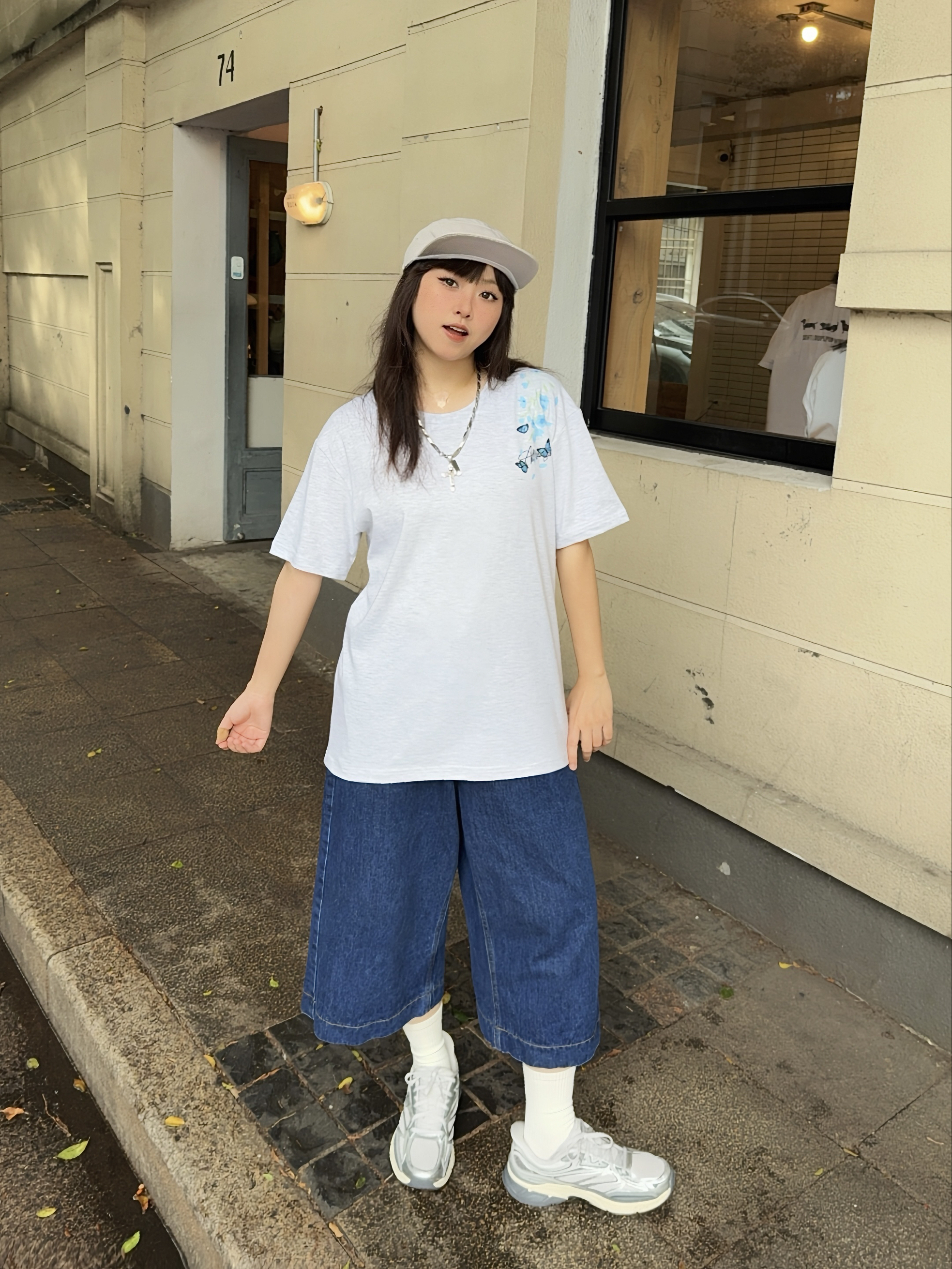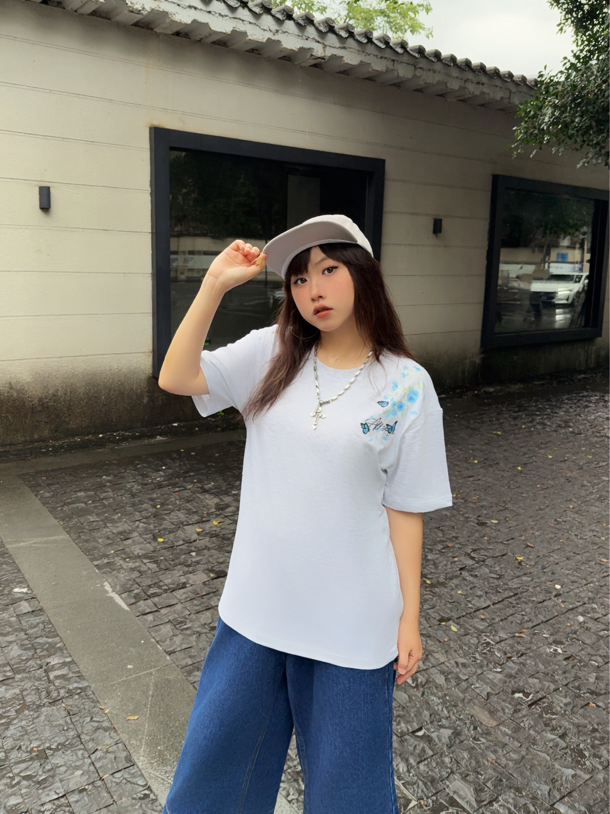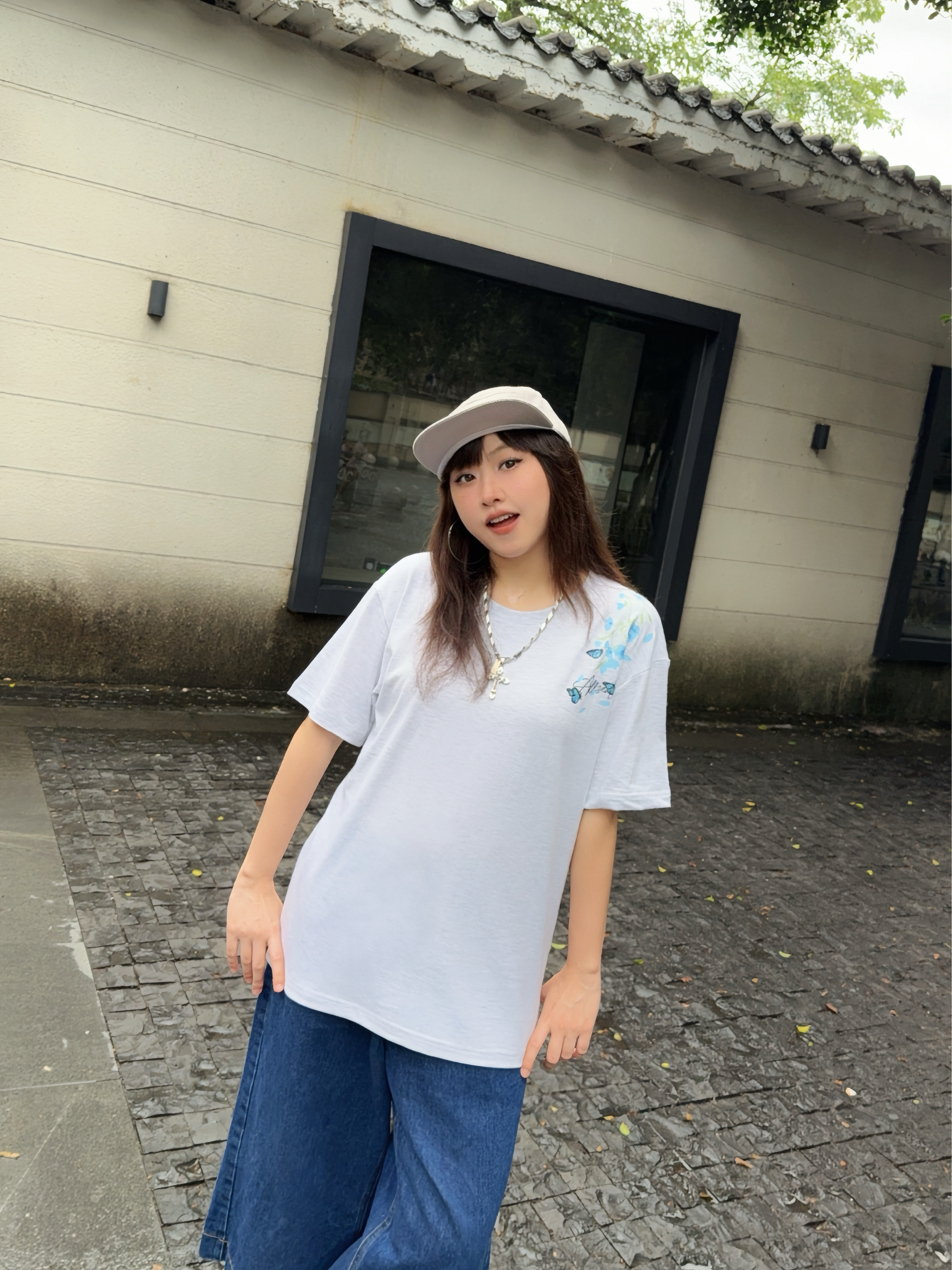 夏日甜酷短袖穿搭🐾这么搭也泰chill啦🫧618买买买🉑入 🦋💐不得不说,这件T恤蝴蝶植物花花泰有夏日感啦,穿上也是透气舒服der ☑️日常可以搭配牛仔7分裤和棒球帽🧢,甜酷出街!