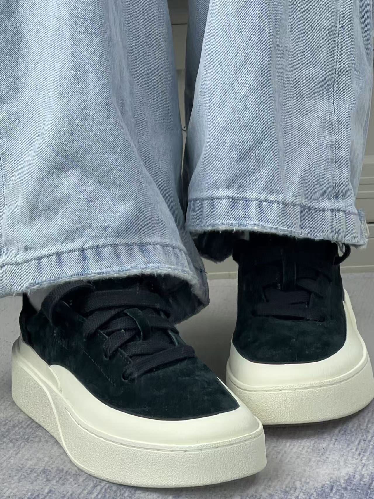 这双adidas LABCOURT板鞋我穿了一个多月,感觉还挺实用的。 黑白配色挺百搭的,皮质和麂皮拼接的,质感不错。鞋型比较秀气,我脚偏宽穿着也不挤,不过脚背高的话可能要选大半码。 穿起来不算特别软那种,但走路多了也不会累。周末搭牛仔裤或者休闲裤 缺点也有,浅色麂皮部分确实容易脏,得经常擦。新鞋后跟有点硬,穿两次就好了。 整体来说挺耐穿的,男女同款,想买基础款板鞋的话可以考虑。 #今天只...