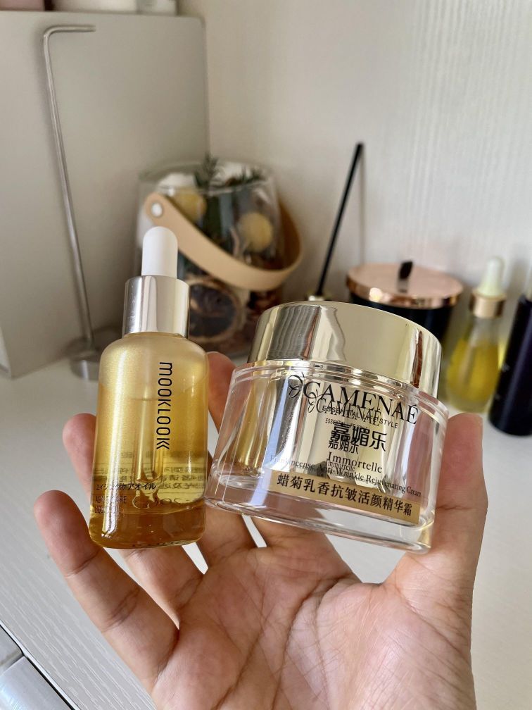 与其说是产品的组合 不如说是一些让皮肤变好的护肤思路 ✨✨✨✨✨✨✨ 1️⃣、抗皱精华油+精油面霜 三大A醇成分、水飞蓟菜籽油、白池花籽油 腊菊精油+乳香精油 全通路保证有效k老 2️⃣、修护精华+修护霜 仿生膜磷脂 迅速吸收 修红 修护霜增厚角质层 抵抗外界刺激 3️⃣、果冻面膜+k氧油 温和果酸冻膜 去掉老废角质 提亮焕肤 K氧油vcip 石榴籽提取物 自然光泽感 4️⃣、油液精华+胶原面霜 ...
