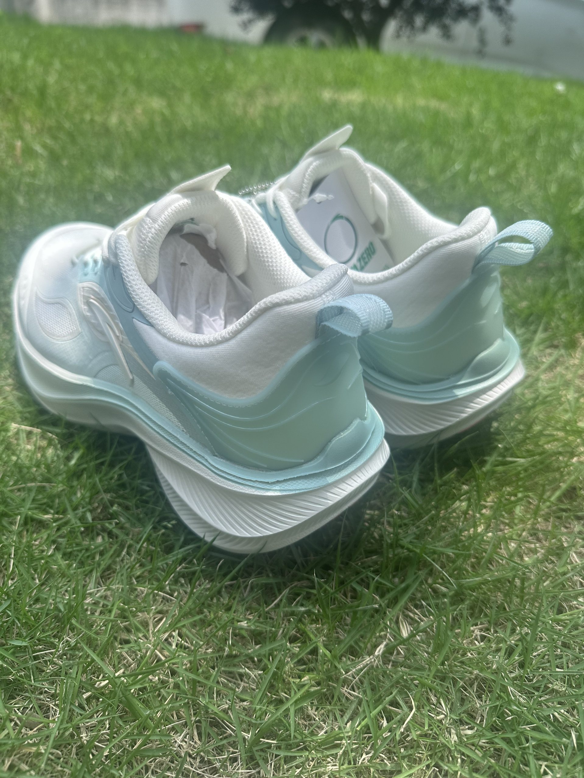 这双海盐蓝白搭配超好看,我好喜欢,网面透气款,鞋子很轻,是运动跑步不错的选择