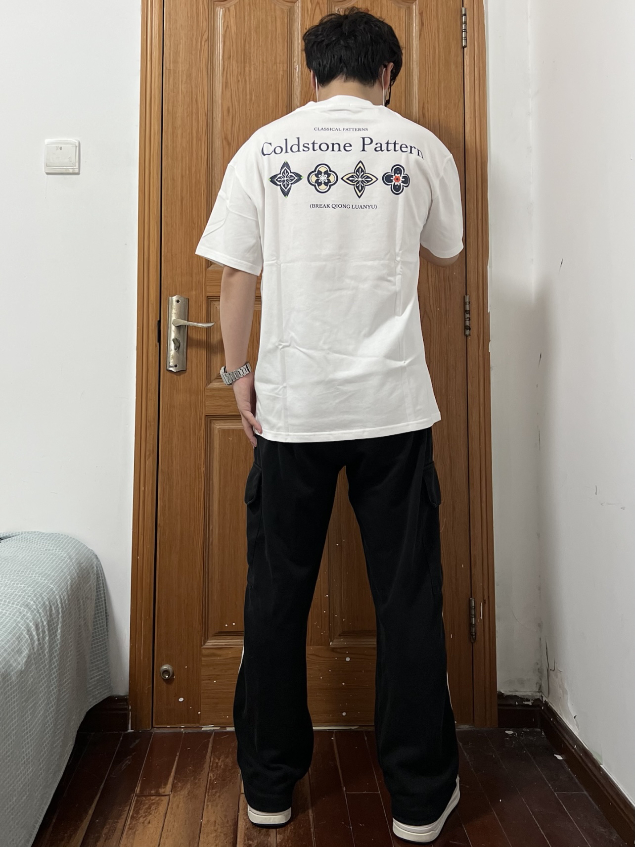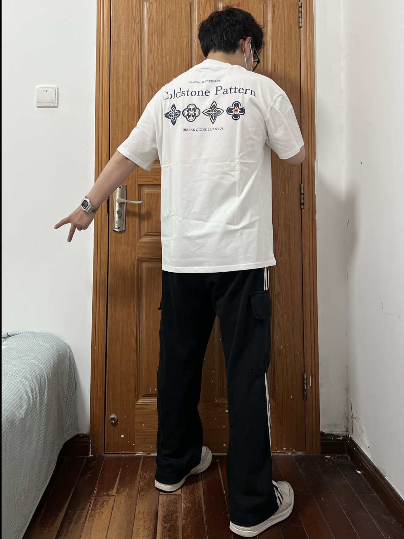 不一样的花卉民族风很戳我的心巴❤️ 背后的图案印花既有几何美学又有国潮元素 当然正面就是缩小版的啦 咱就是说华流才是世界上最流行的时尚❗️ 版型宽松选自己正常尺码就行 简单搭配黑色长裤就能很帅🉑️ 👔 COLDSTONE 👖 黑色长裤 👟 白色运动鞋 🙋♂️ 170/130斤 M 持续带来最真实的穿搭体验和球鞋开箱 喜欢的可以关注点赞哦