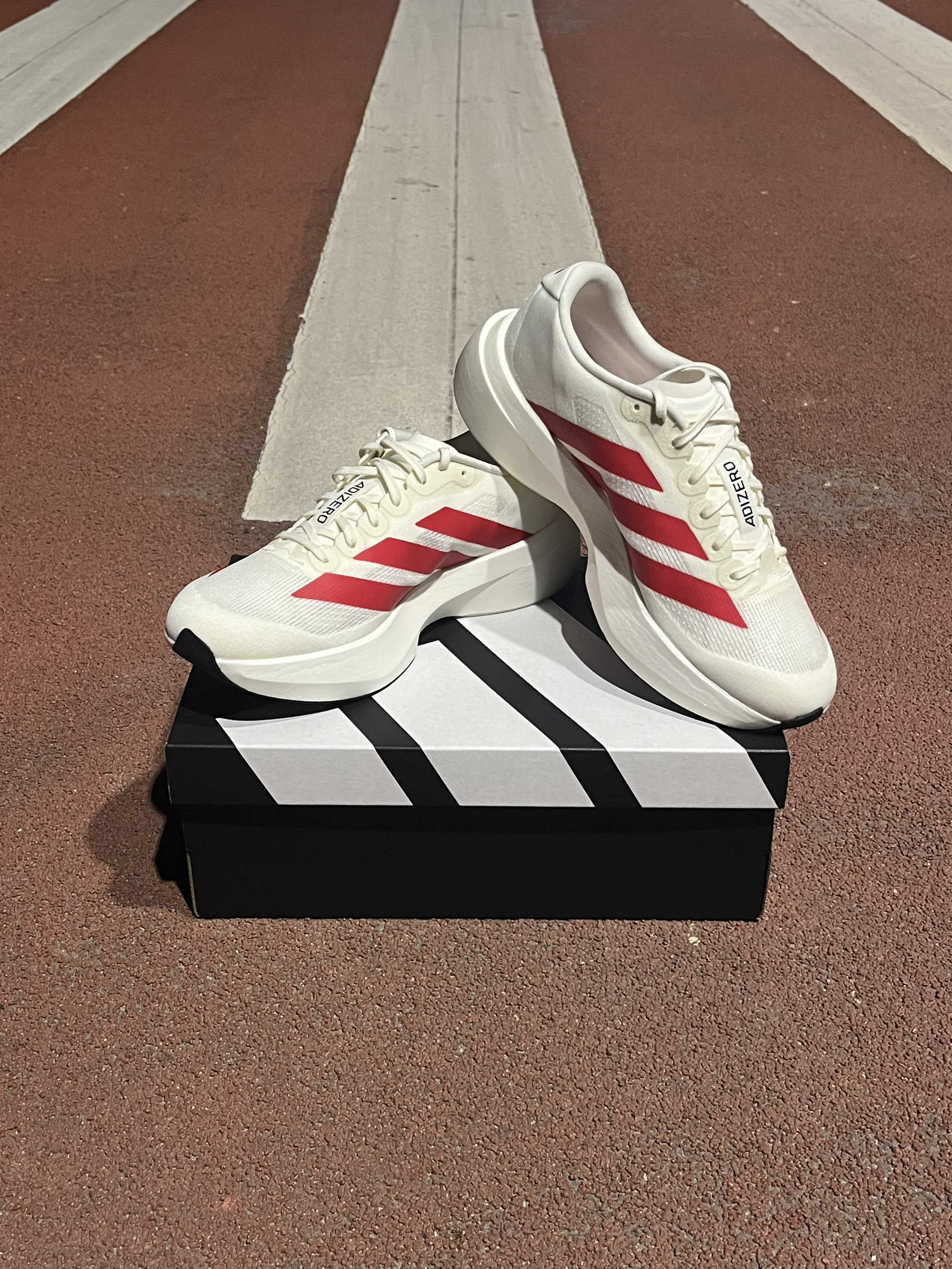 👟 轻到离谱,弹到起飞 - 上脚第一感觉:“这鞋没重量? - Lightstrike Pro 中底,踩下去就回弹,越跑越带劲 - 红白配色+三道杠,经典又炸街,跑完直接穿去喝咖啡  🏃 “跑起来,才是活着” - 5km 轻松 PB,10km 还能冲,马拉松选手的私藏款 - 鞋舌 ADIZERO 标一露,懂的人自然懂 📸 实拍无滤镜,细节自己看 - 鞋型瘦长,脚宽建议试穿 - ...
