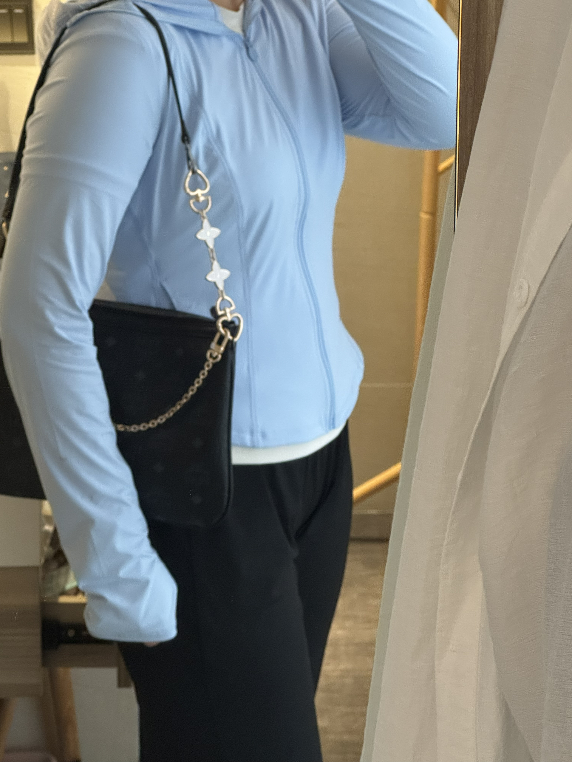 加了这个链条可以单独当作一个小包背啦 比其他的小包容量还大很多 嘎嘎实用!!!没有选择黑色链条 因为包包本身是黑色的 想要选择一个突出一些的色系!事实证明没选错!