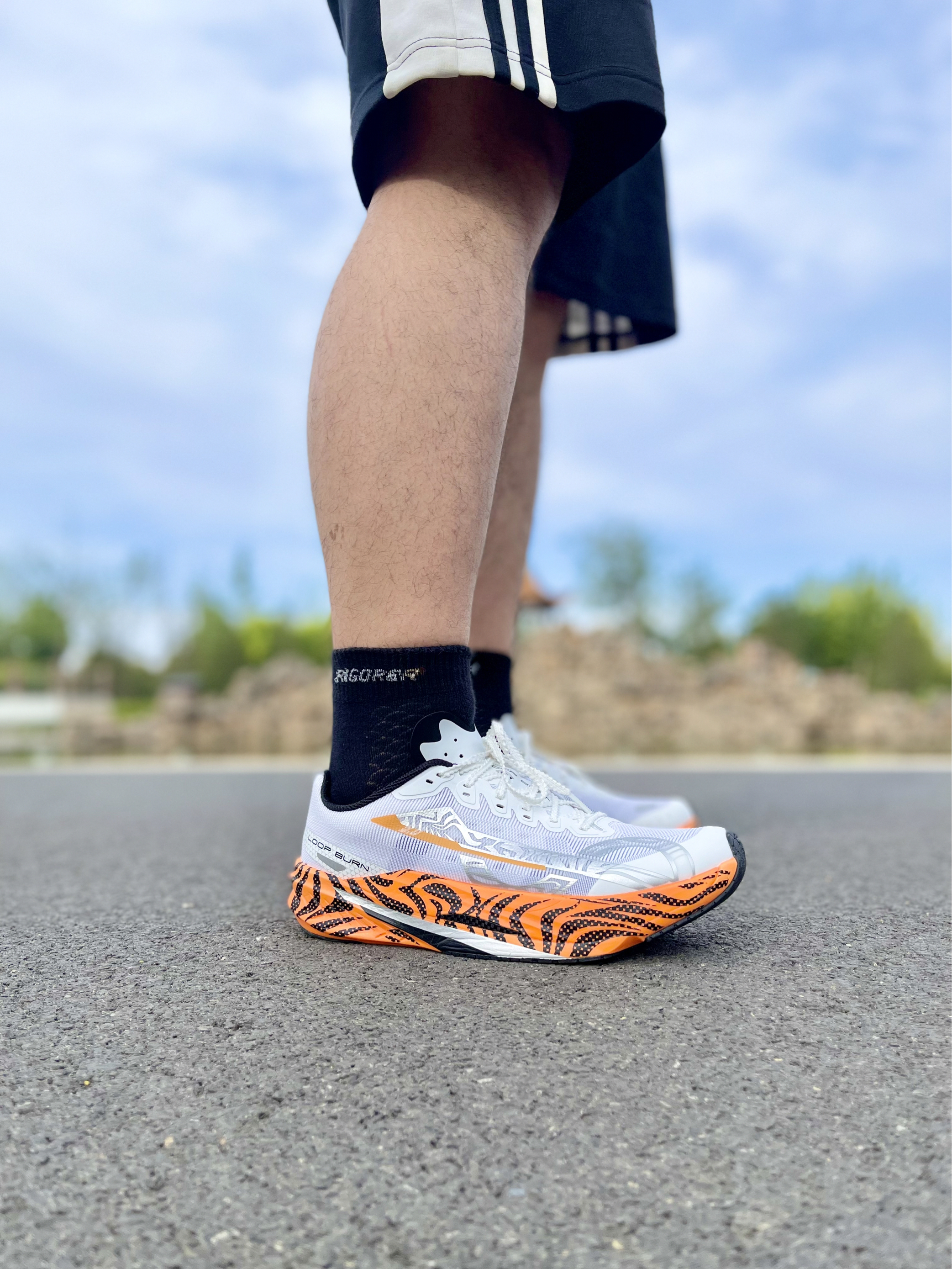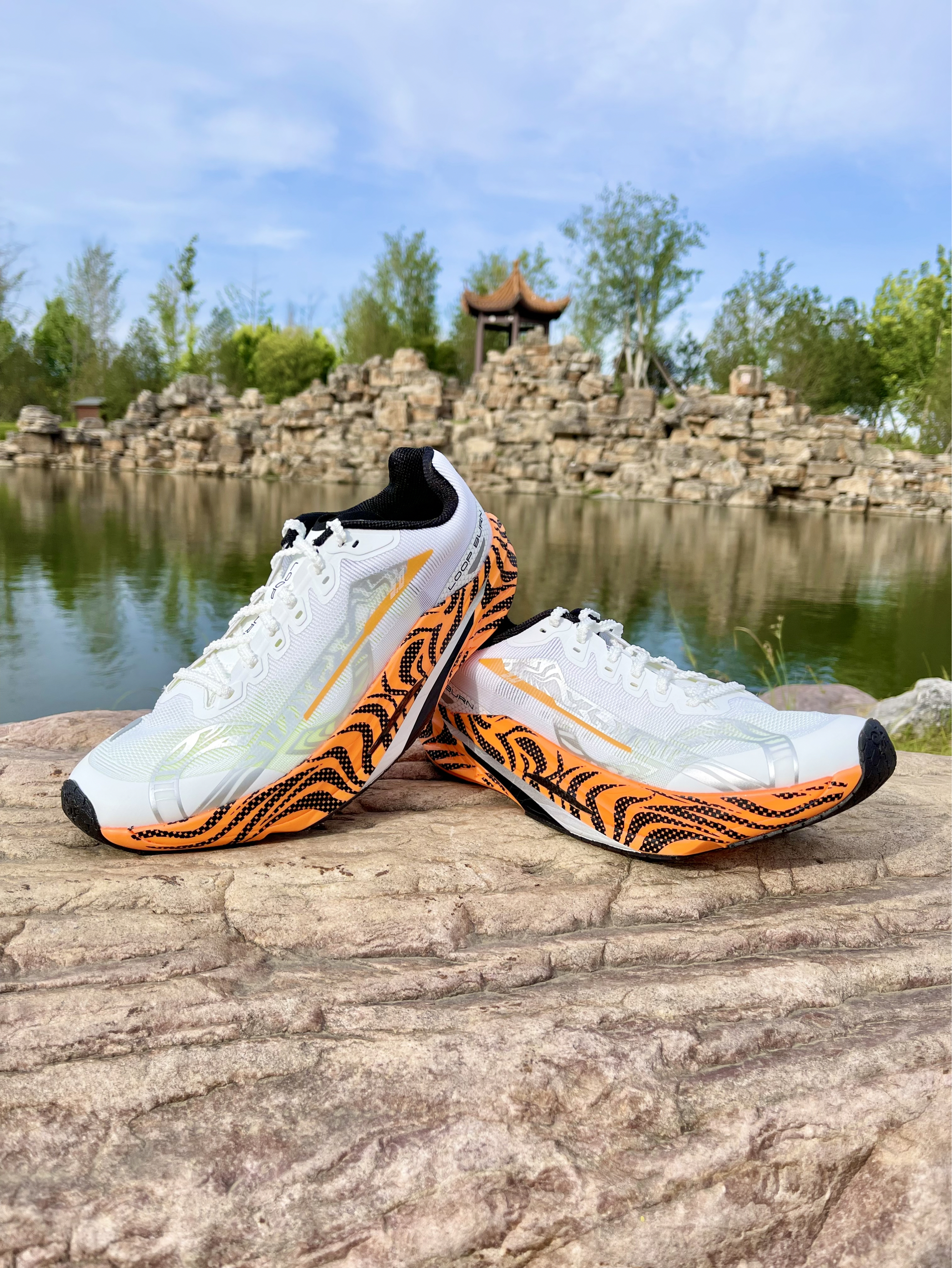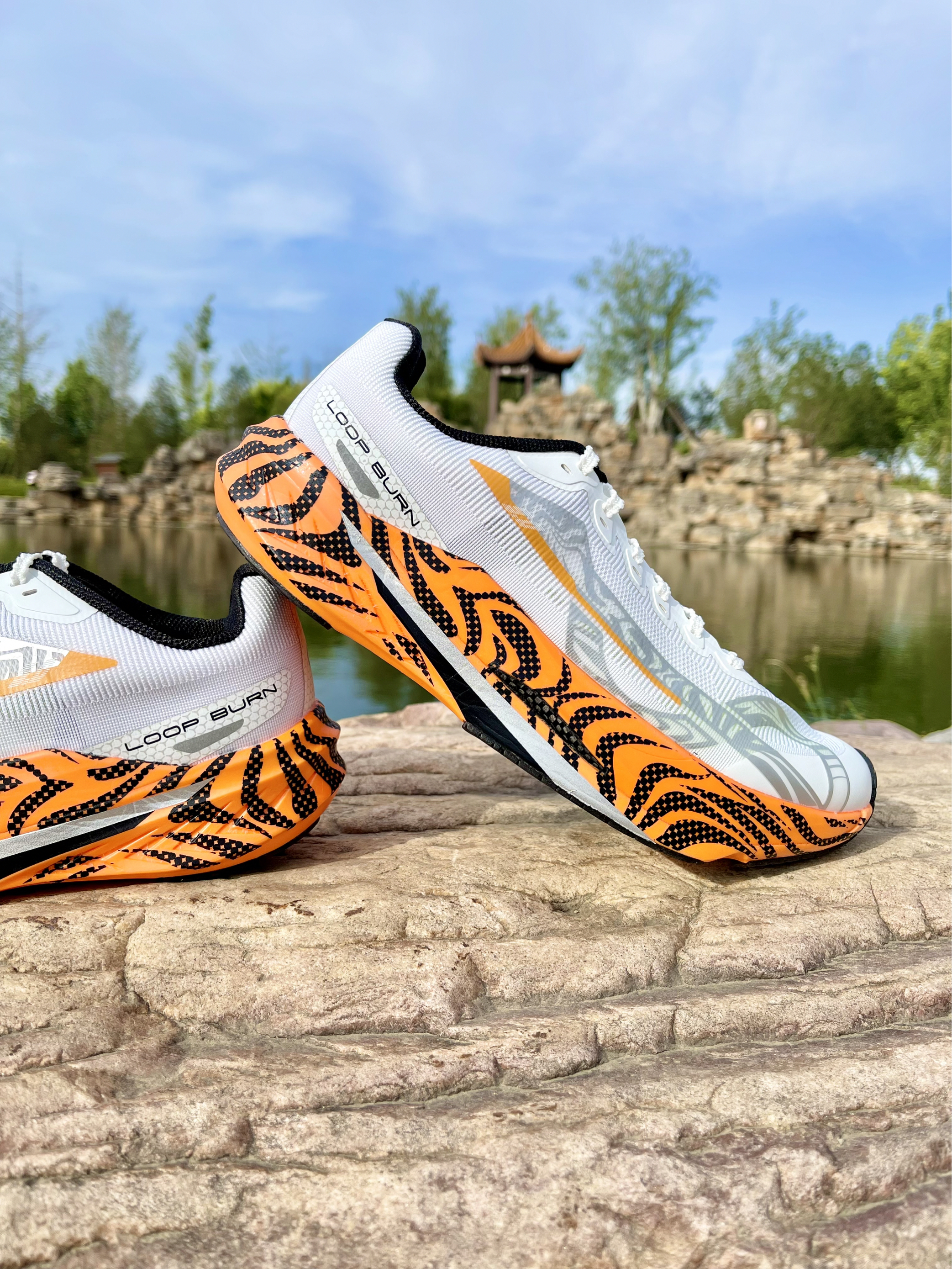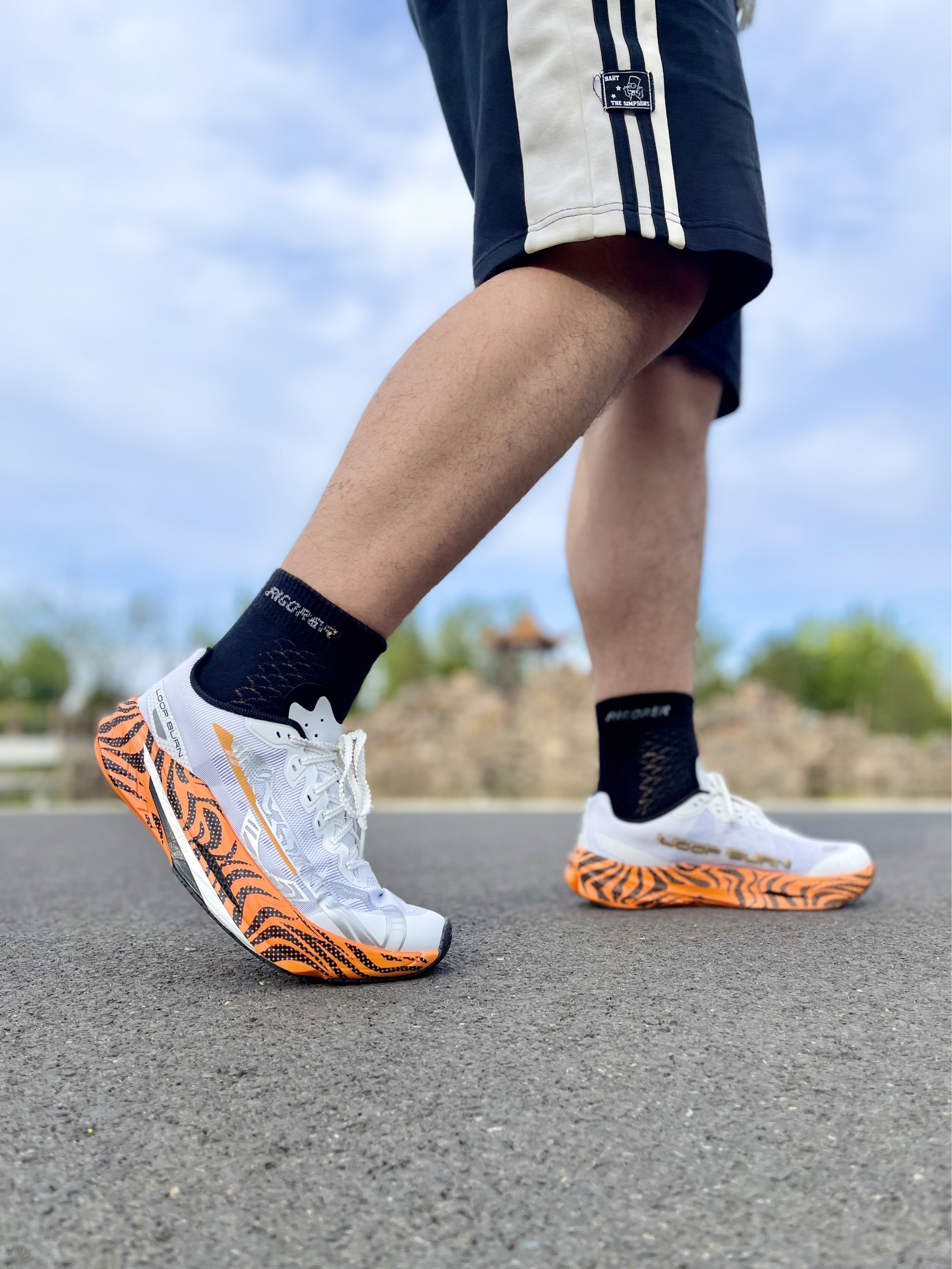 哈喽 哈喽 猫小肥z 🐈 来咯 今天给大家分享 派燃烧 郑恺联名 状元5pro 竞速跑步鞋 这双碳板跑鞋重量还蛮轻的 颜值和脚感我都很喜欢 鞋子采用小猎豹配色 搭配鞋身派燃烧Logo 配色满满的夏日活力 穿在脚上酷酷的很吸睛 三维立体绞棕鞋面 轻薄透气 包裹和强度都是可以的 派立方中底➕全掌异形碳板 跑步给到稳定的回弹动力 中长跑训练体考体测也都毫无压力 跑步我就穿它啦