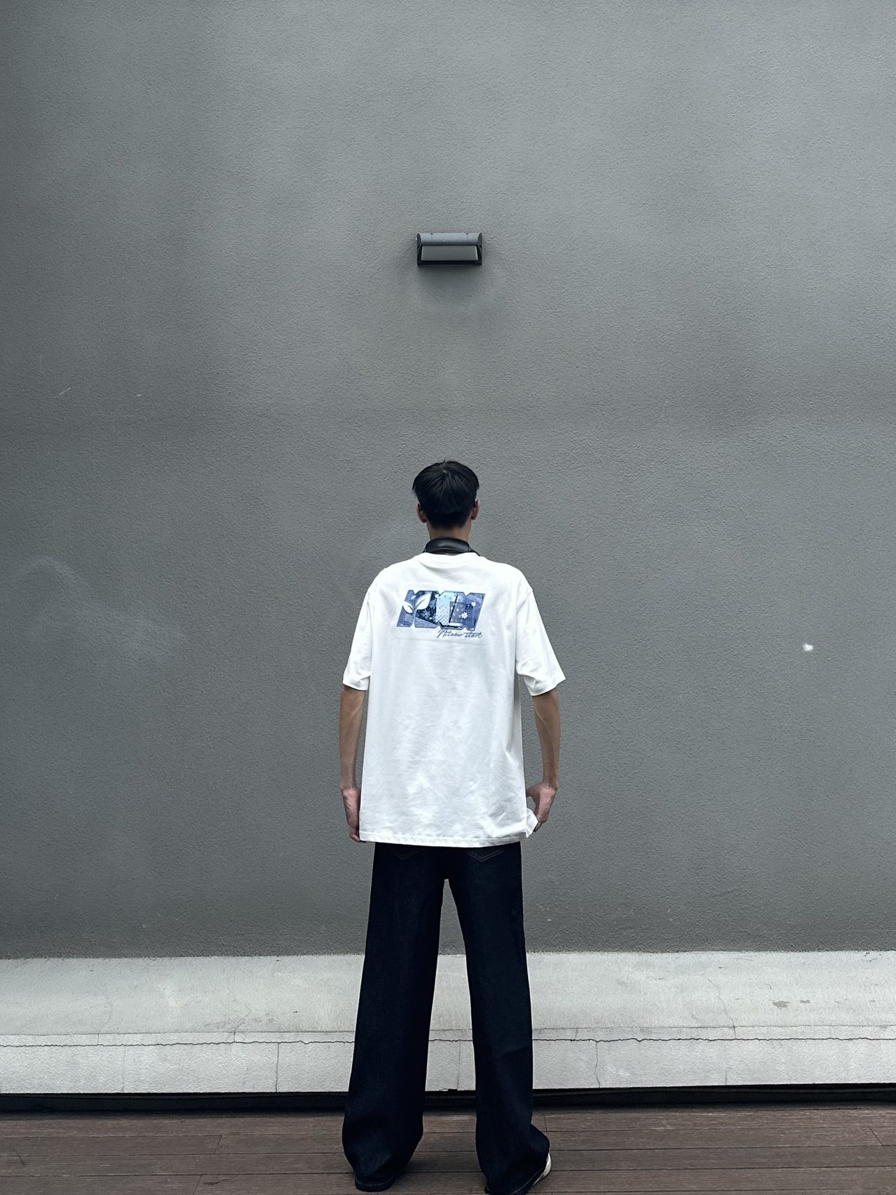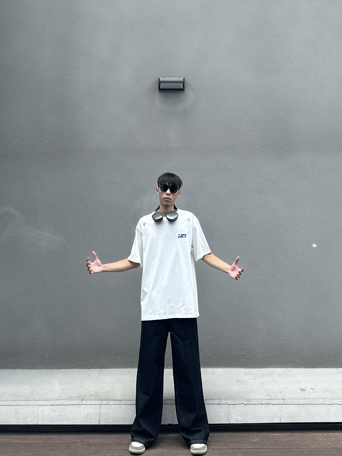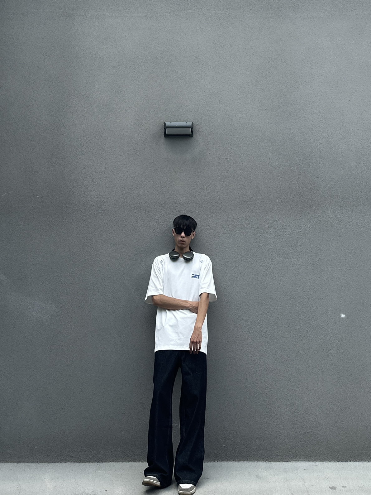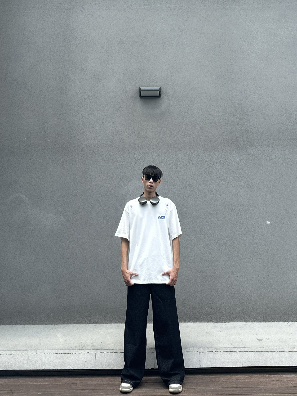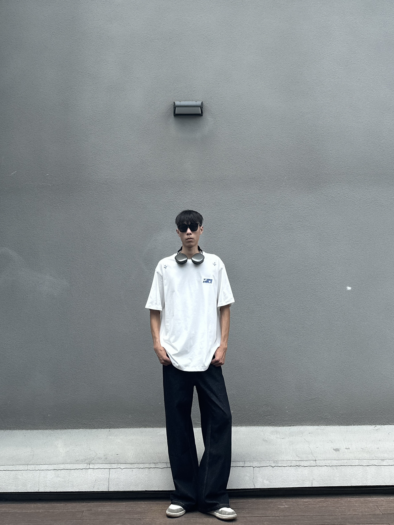 哈喽 大家好 今日份穿搭分享来啦 👔NSTNEW START 上身一件美式刺绣圆领T 重磅面料穿着起来舒适透气 背面刺绣雏菊印花质感满满 我182cm 65kg XL码搭配一条黑色牛仔裤 夏日街头 一身宽松出门真的舒适酷帅💯