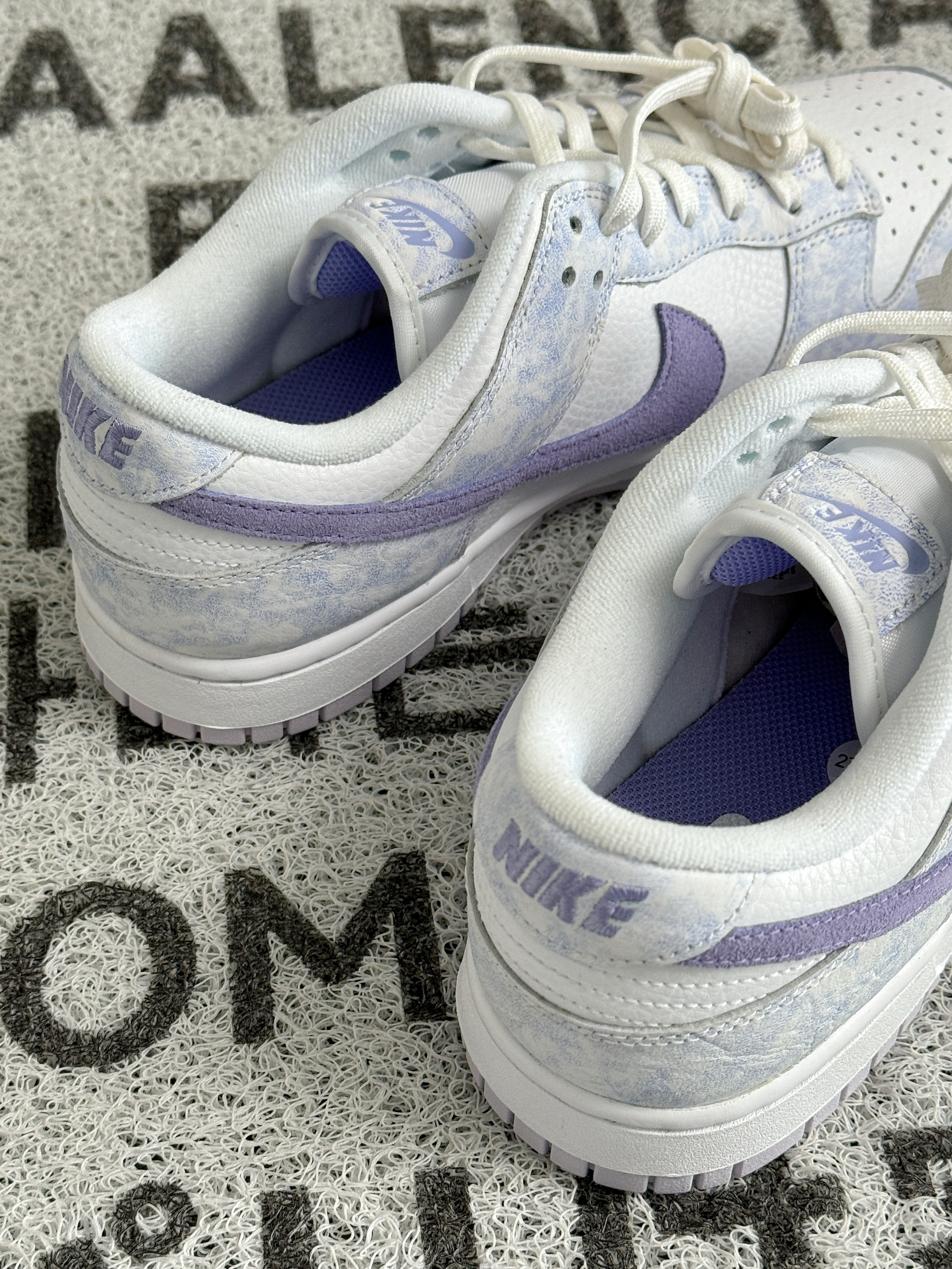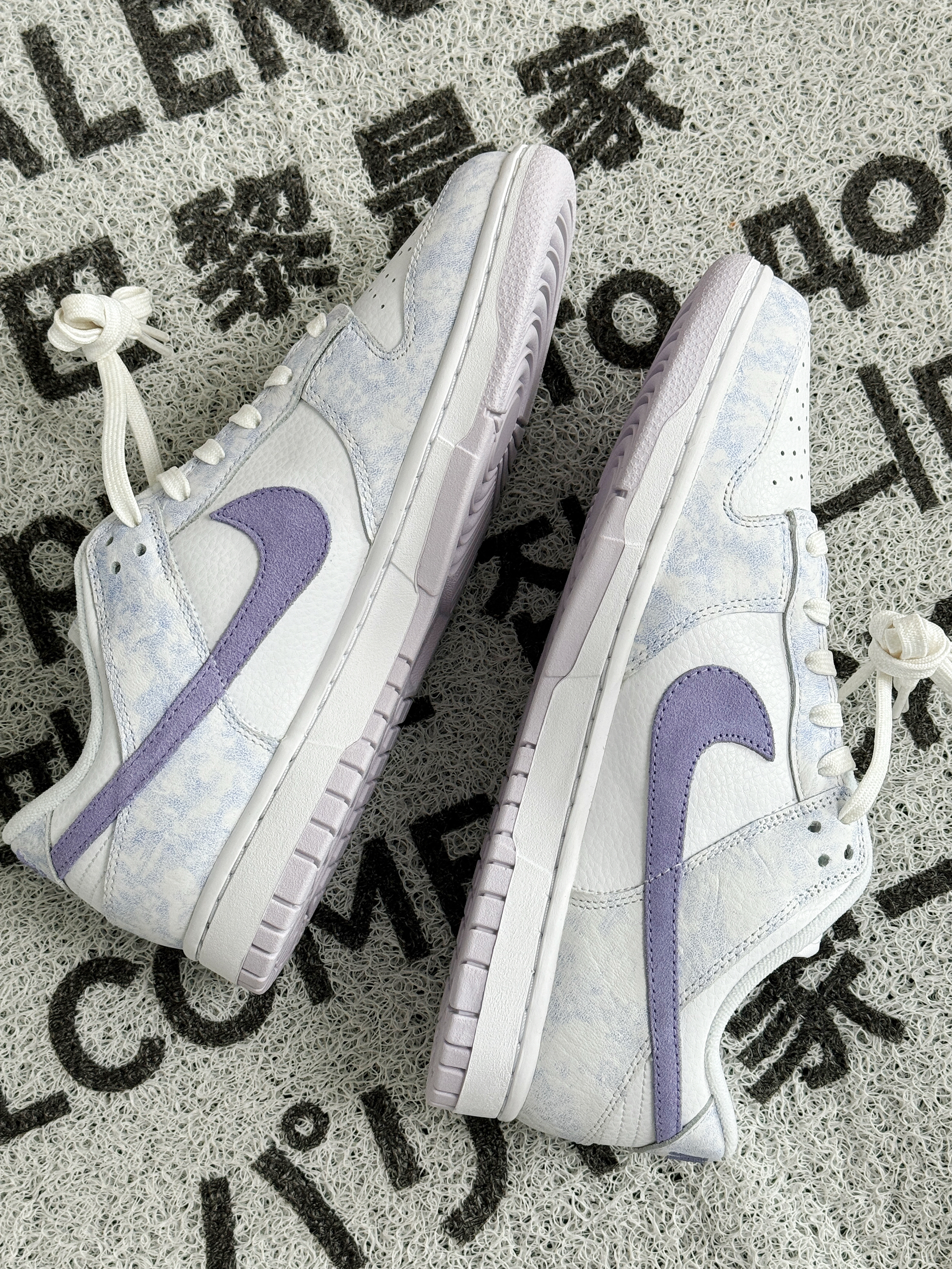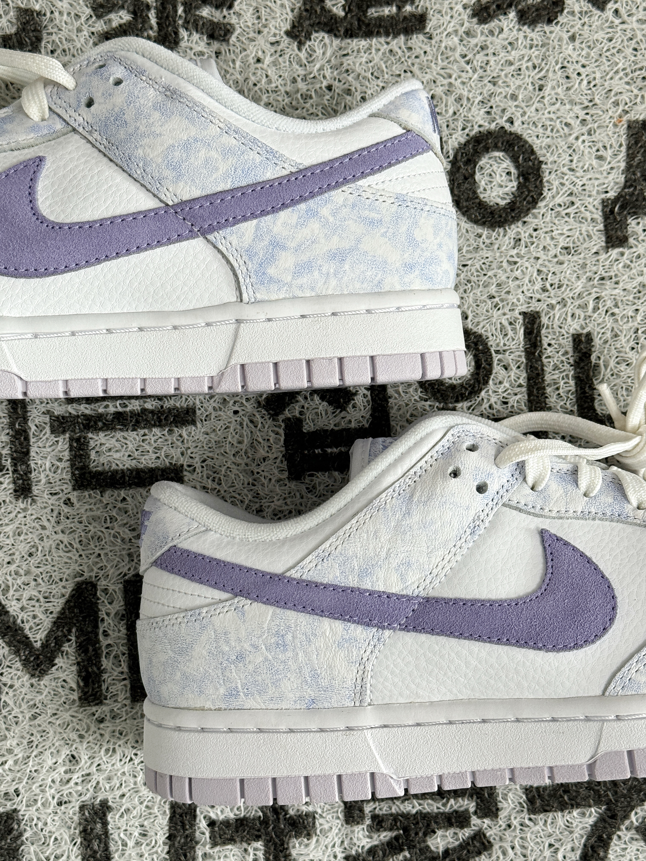 浅浅的白紫色调,纹理很像薰衣草 看起来十分清新脱俗,非常显气质的感觉 全皮革的材质耐穿好打理 Dunk的脚感偏硬,可以换个软弹的鞋垫 几百的价格,自穿性价比挺高 女生穿特别好搭衣服,男生穿也可以 搭情侣鞋来穿是相当不错的选择~