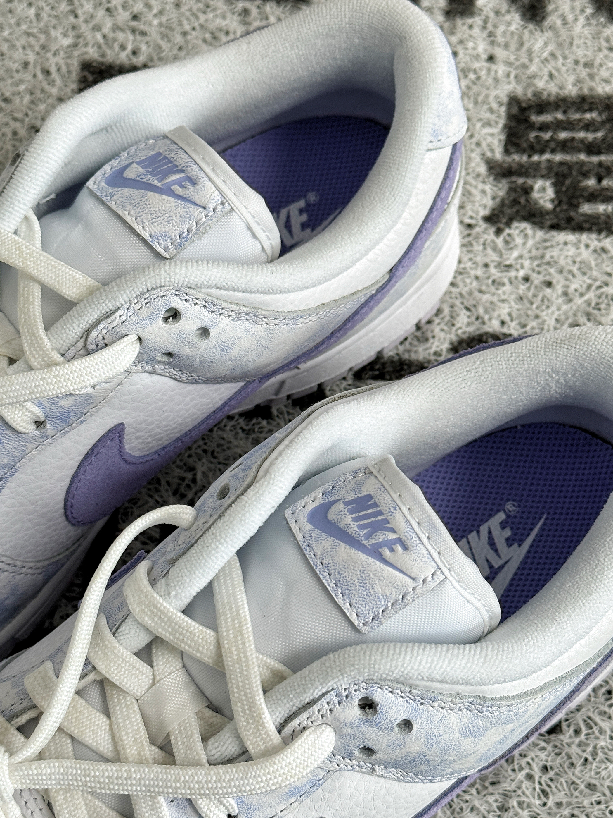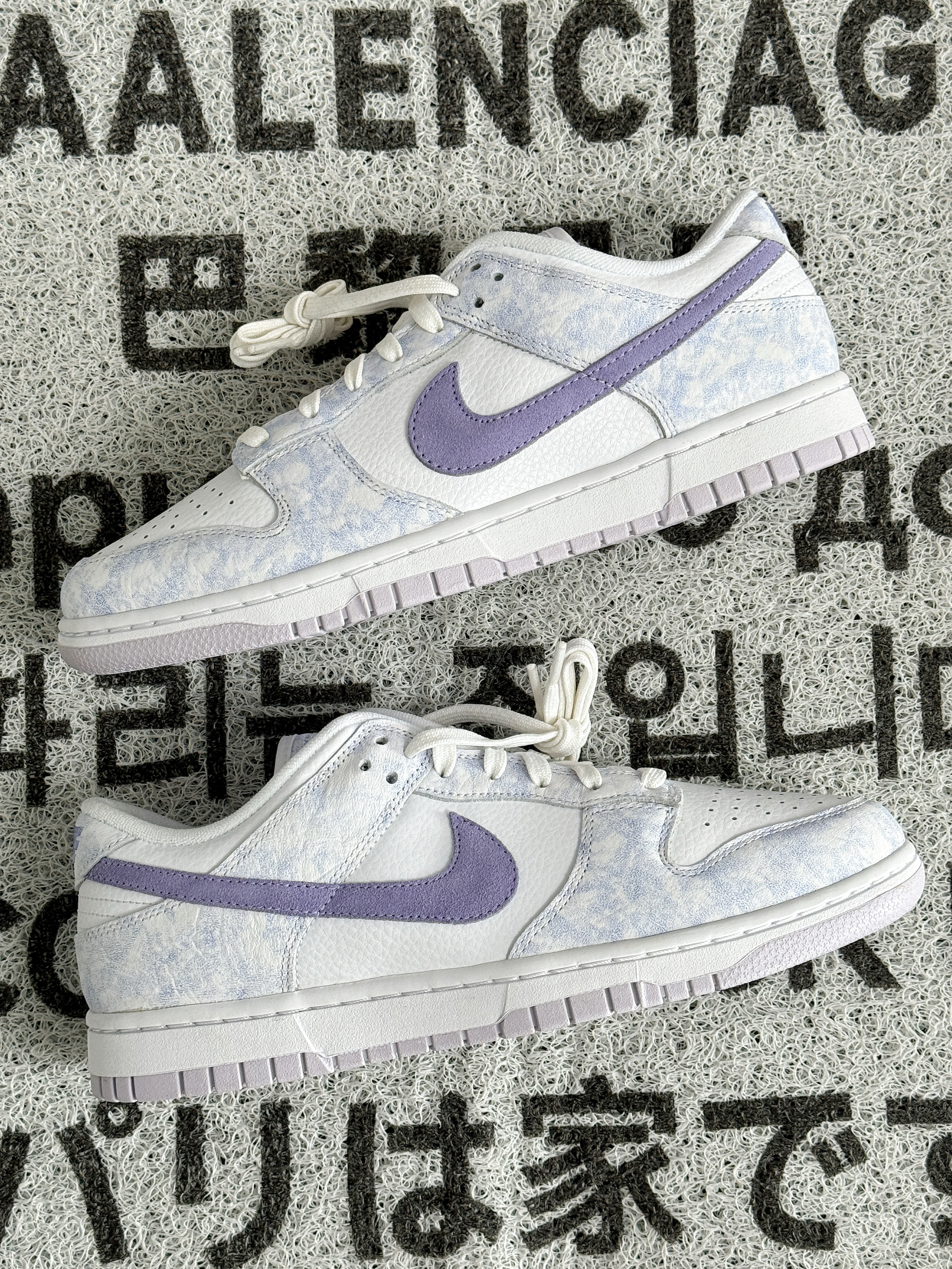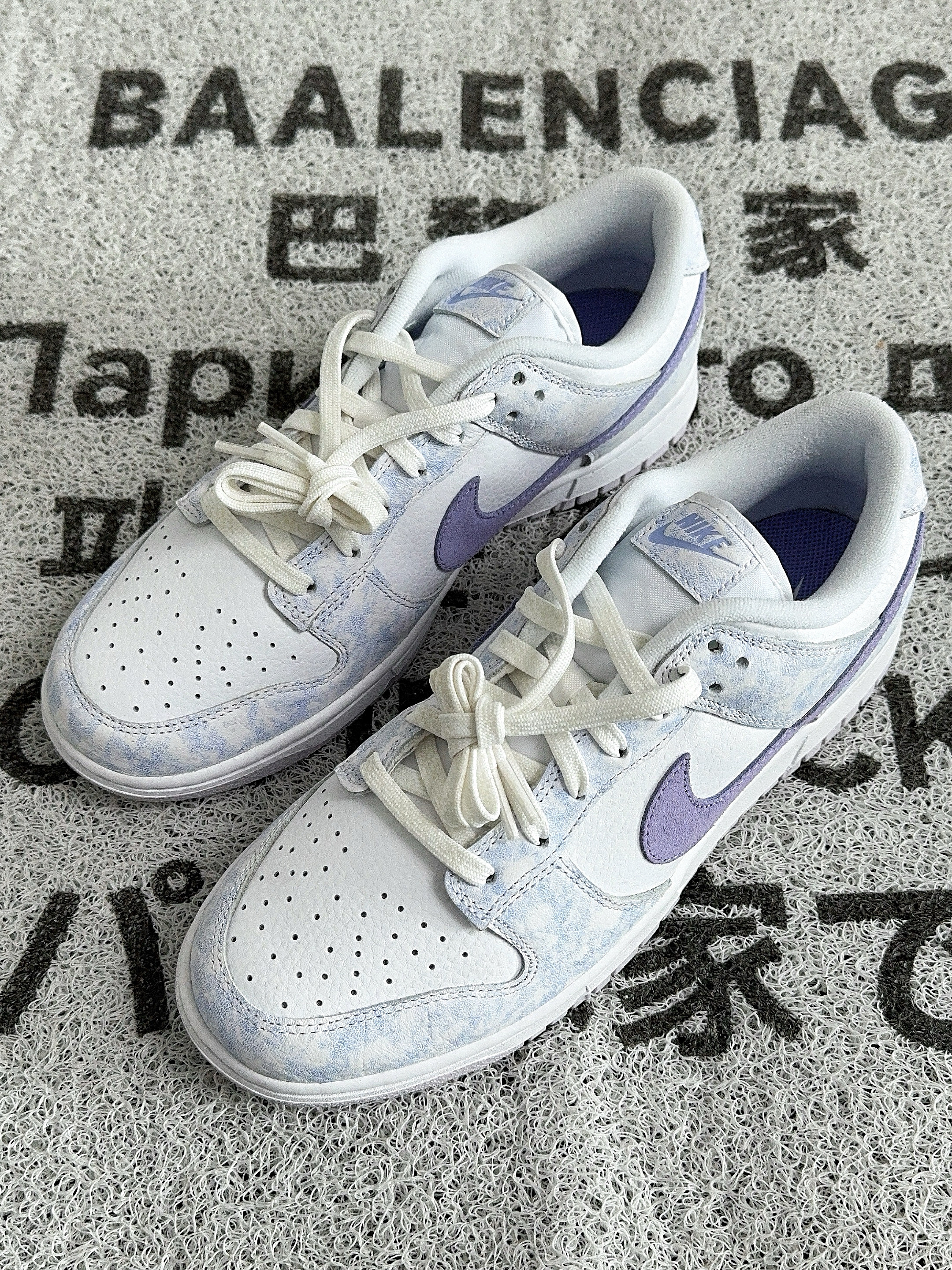 浅浅的白紫色调,纹理很像薰衣草 看起来十分清新脱俗,非常显气质的感觉 全皮革的材质耐穿好打理 Dunk的脚感偏硬,可以换个软弹的鞋垫 几百的价格,自穿性价比挺高 女生穿特别好搭衣服,男生穿也可以 搭情侣鞋来穿是相当不错的选择~