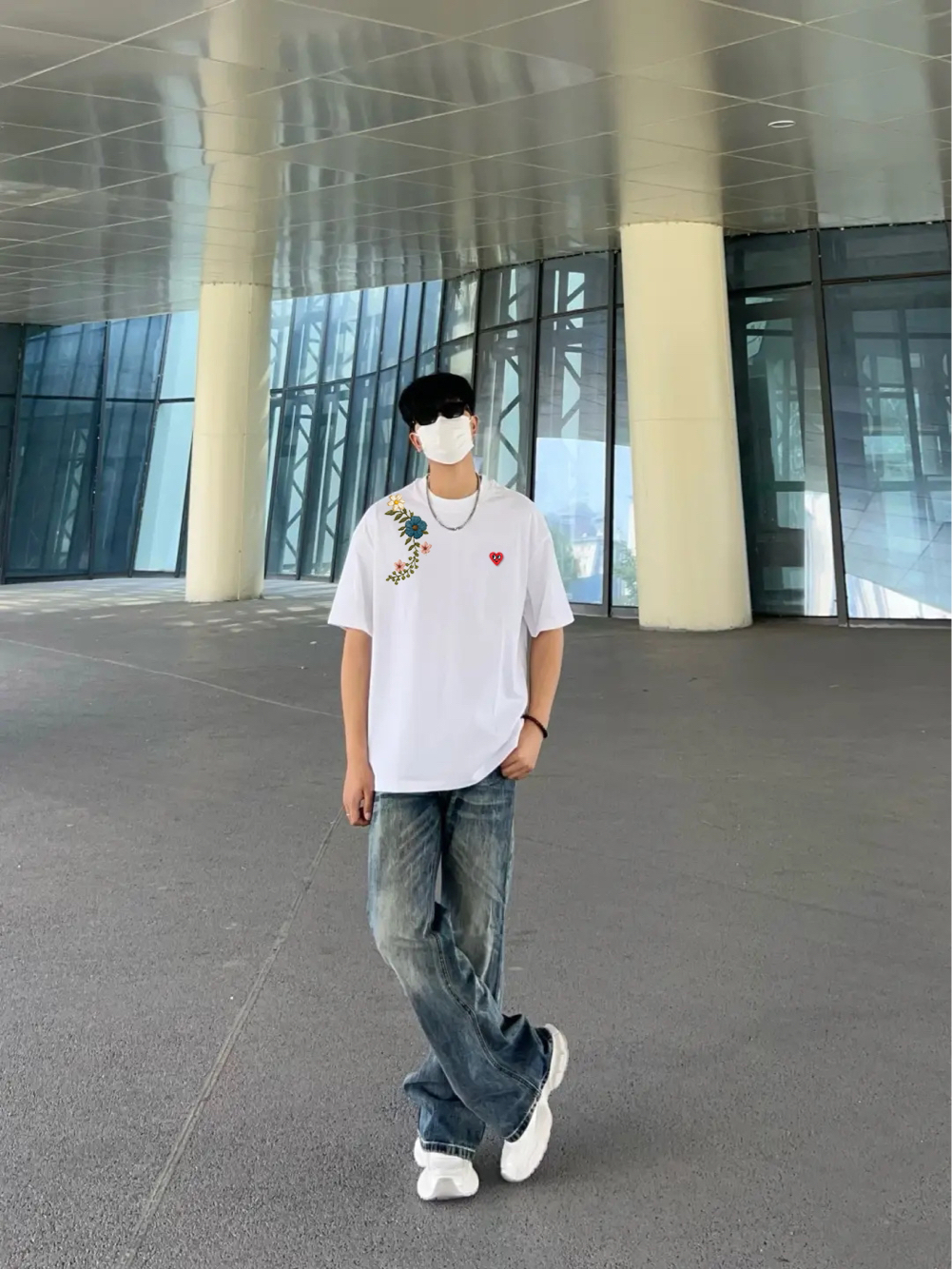 非这件刺绣花卉莫属了,前后都有刺绣,有一种花朵在衣服上蔓延开来的感觉,很特别,版型也是很好驾驭,搭配牛仔裤轻松出街