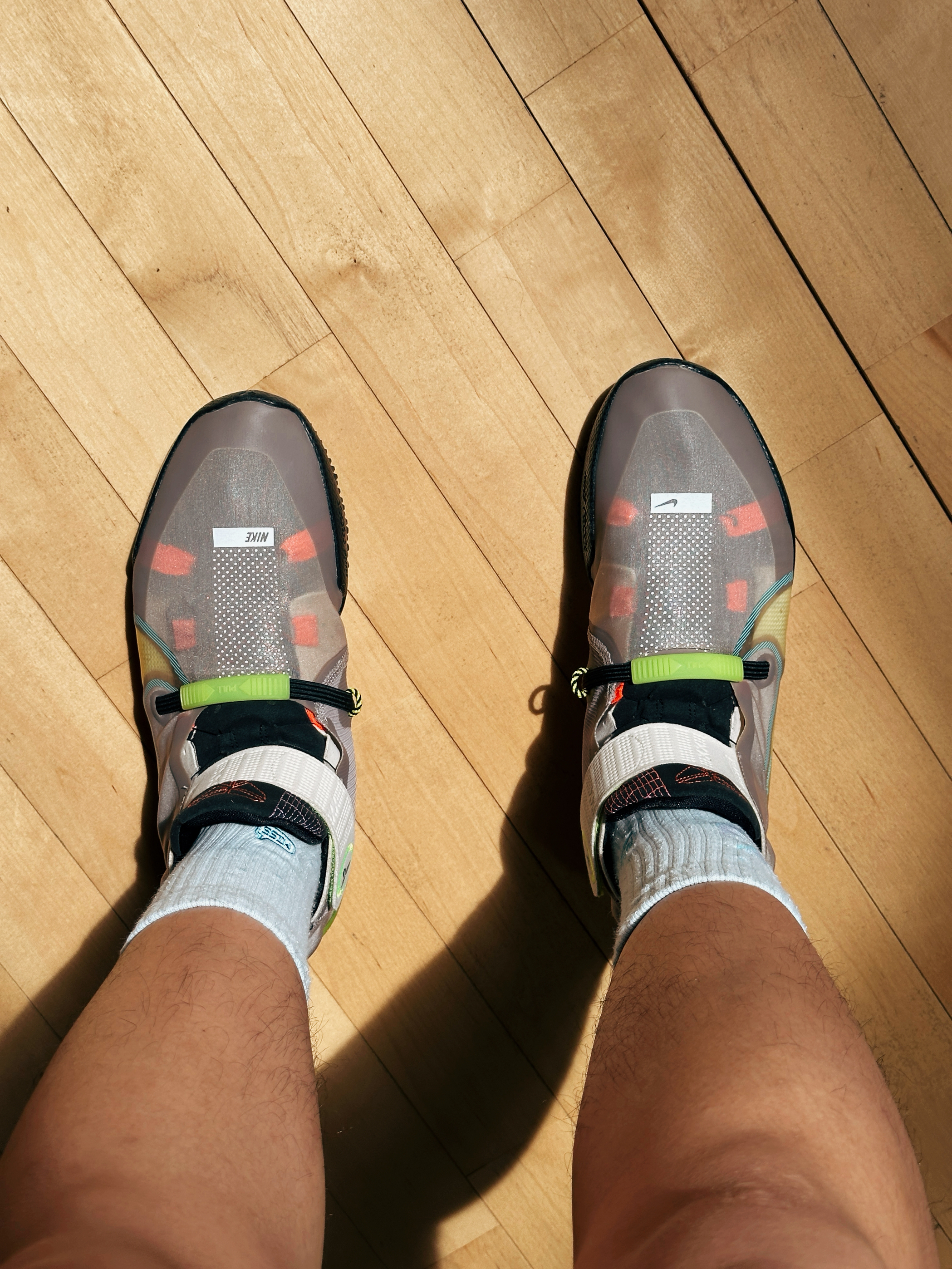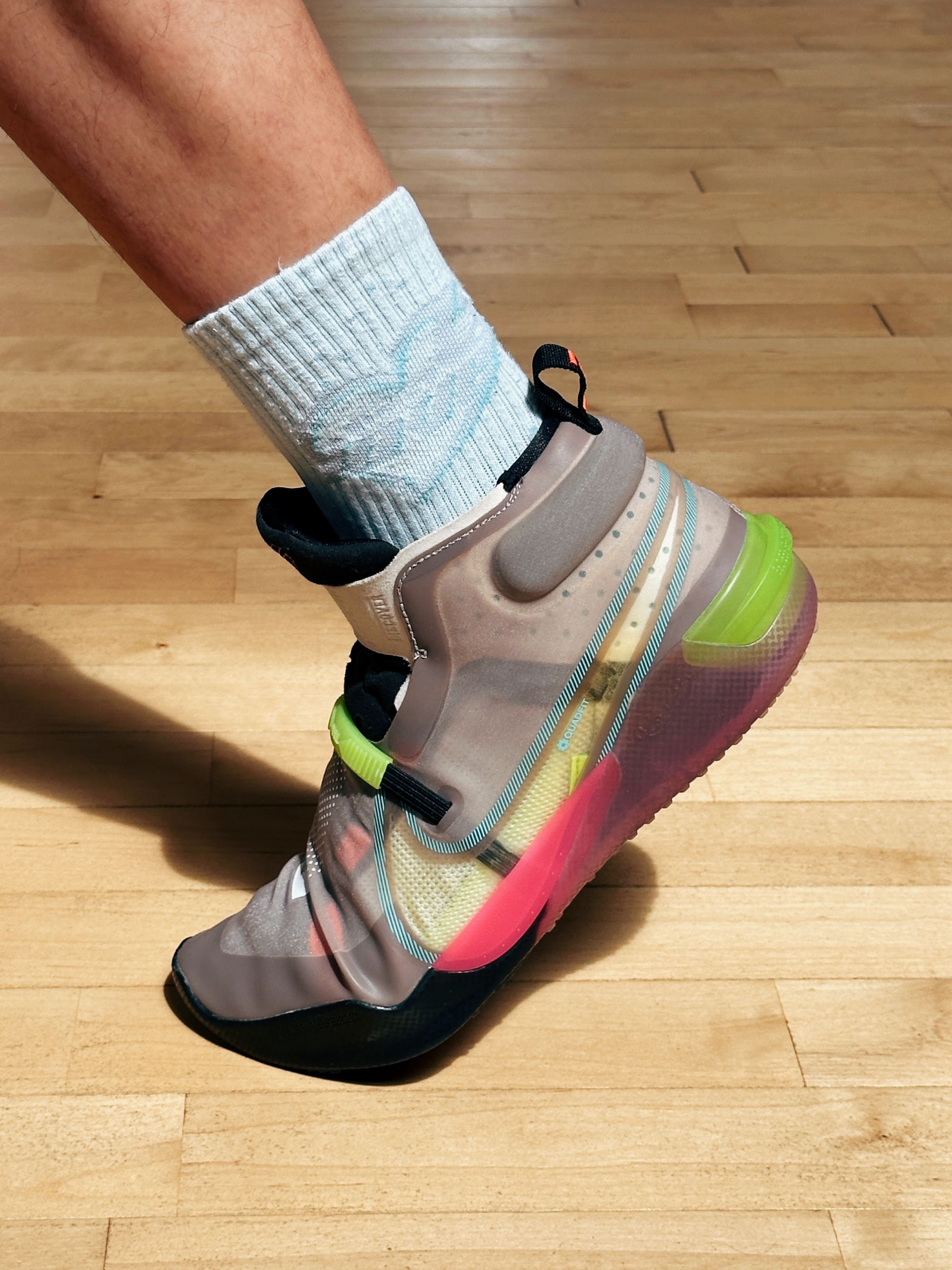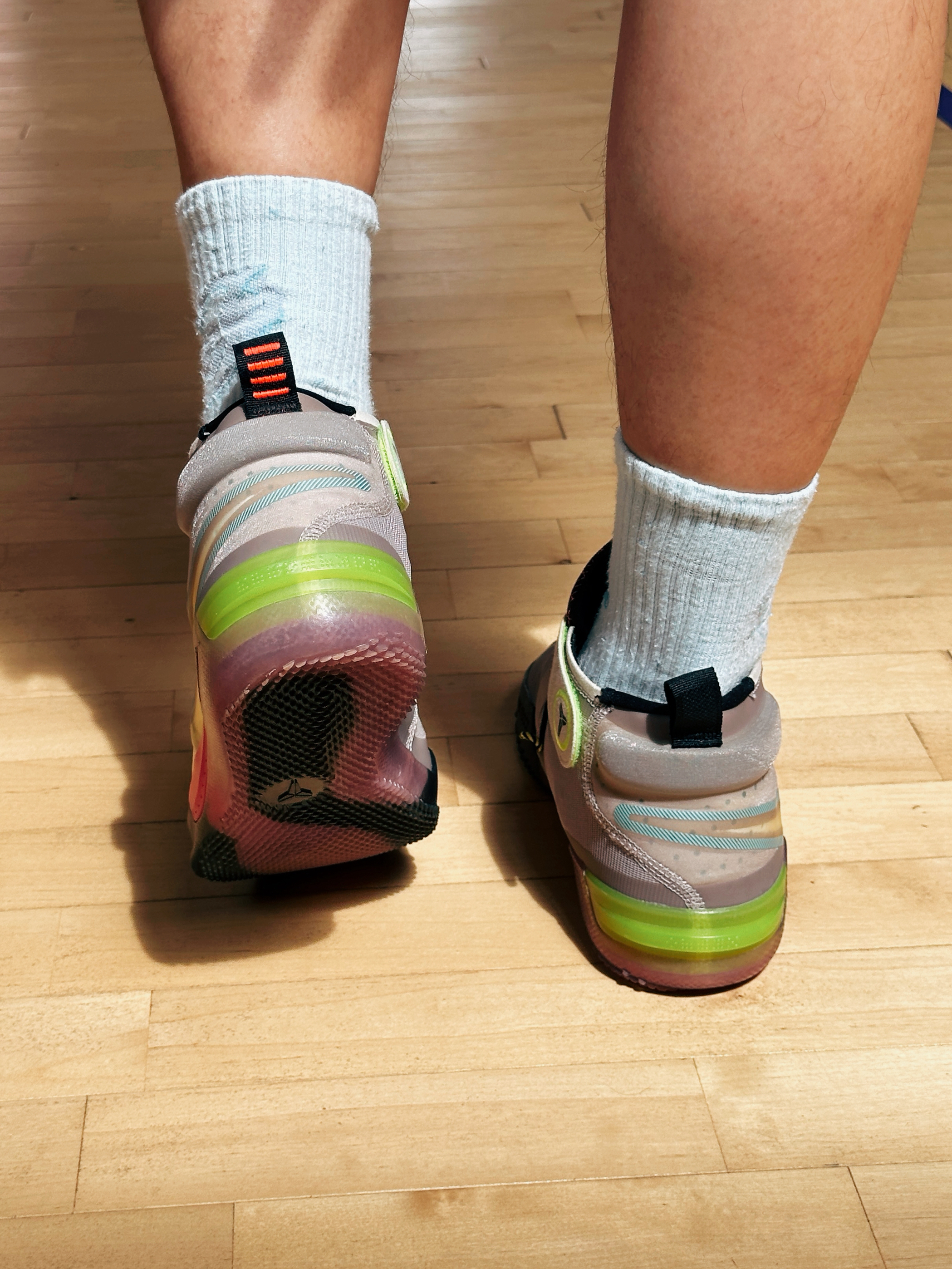 上脚以后我是 45 的 窄脚型 低脚背 扁平足,我穿 45 码正正合适,严丝合缝,几乎没有多余的空间,鞋楦做的偏窄,高度超级偏低,所以比较挑脚型的,宽脚型和高脚背就别受罪了!静态穿着的时候呈现出非常贴地的的重心感受,前低后高比较舒服,一蹬就走很迅速! 缓震方面:几乎有点体重的都劝退了,首先比较薄再加上材料不明显,所以约等于膝盖缓震,比纯板砖强在了它更韧,不是那种生硬的类型,但是后掌就遭殃了...