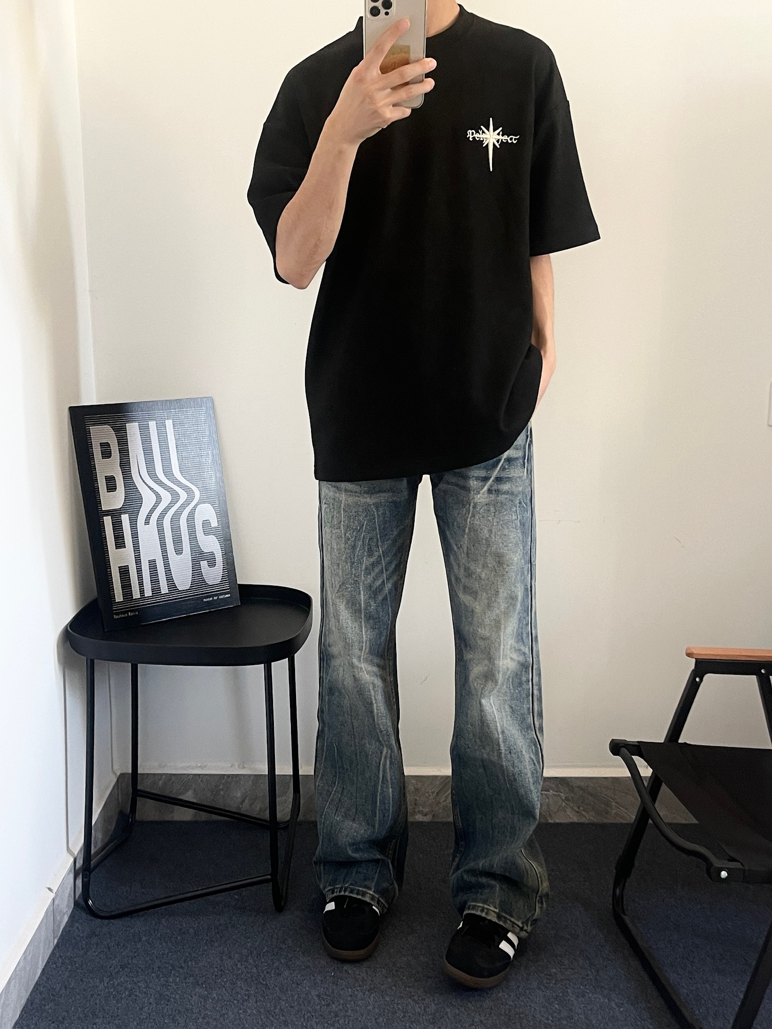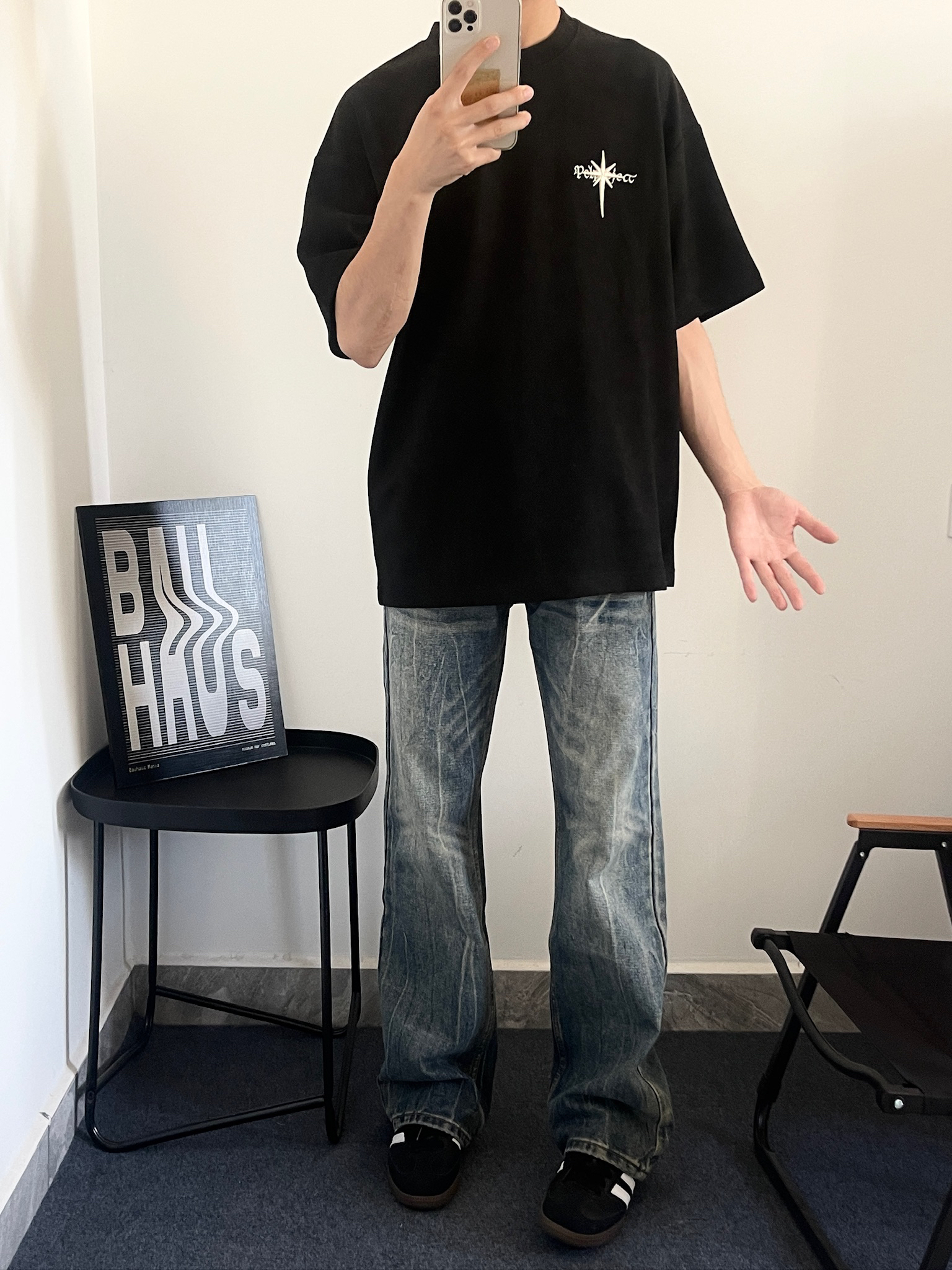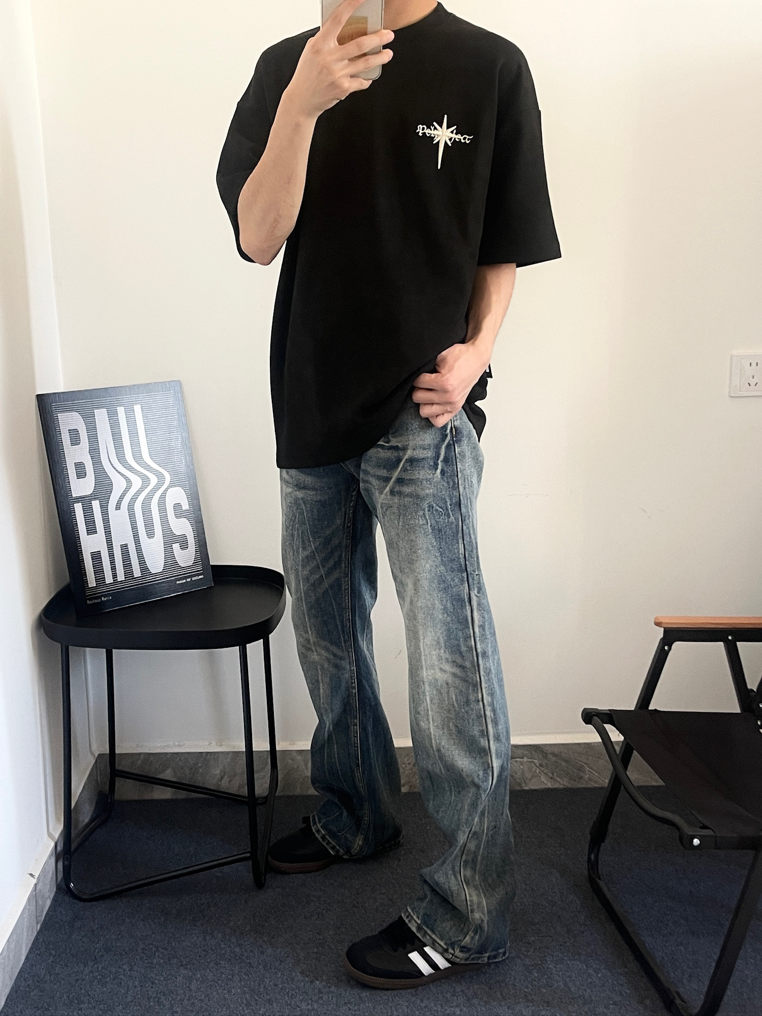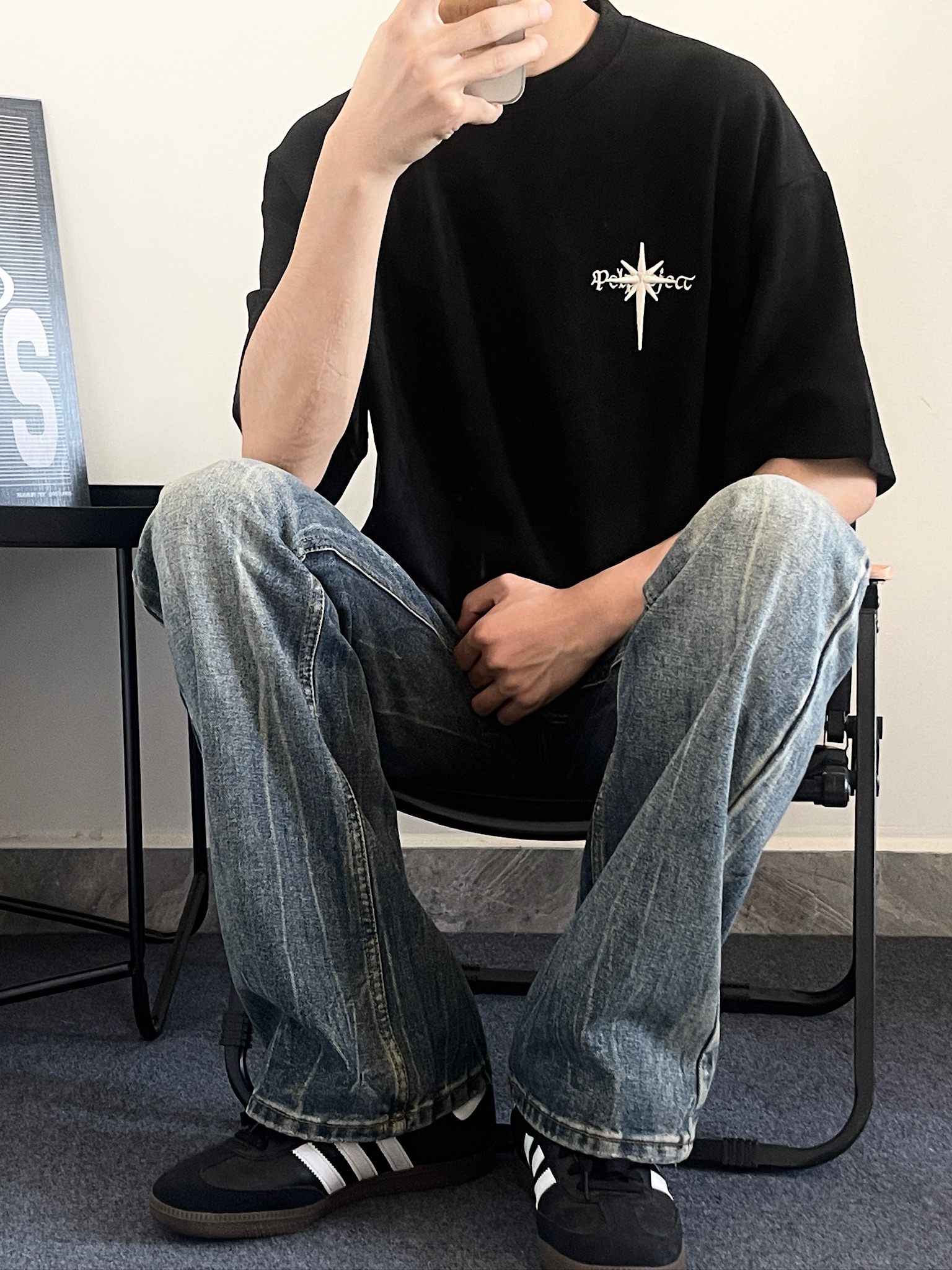 哈喽>宝子们 今天穿什么 ~ 今天穿 PCLP 家这款麂皮面料的短袖这件短袖整体是比较简约的 胸口前一个小刺绣配上背部的刺绣整体是相互呼 应 我搭配了条复古水洗色的牛仔裤 整体更加复古 风一些