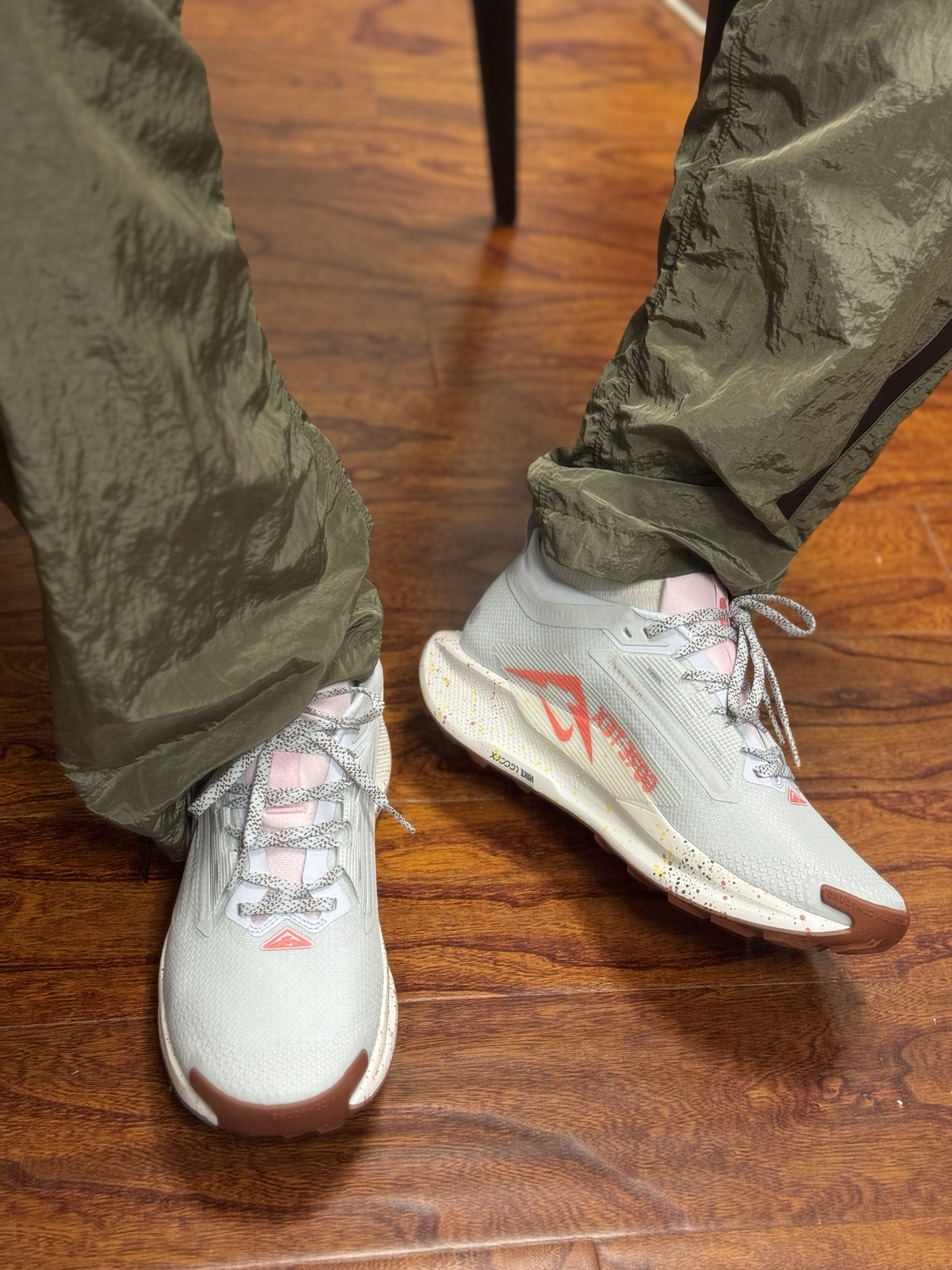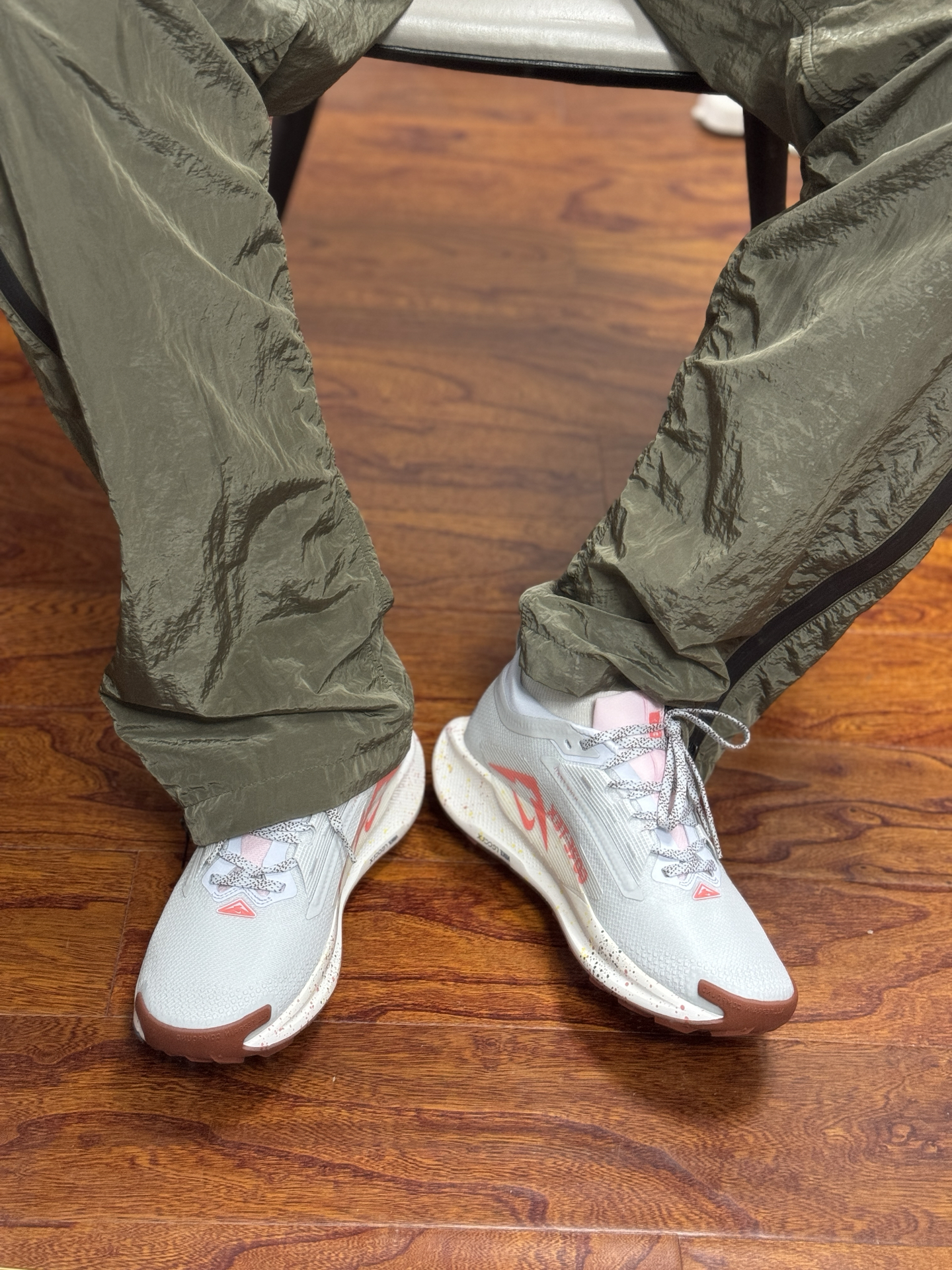 夏天当然要跑起来了! 我的这双“Nike Pegasus Trail 5 ”跑步鞋我就很喜欢。 鞋子不仅颜值很高,穿起来脚感很好,软软的,包裹性方面相当不错。 我喜欢这双鞋子的原因最主要的是上脚颜值很高,平时很好搭配衣服。 #618潮服捡漏指南 #心心念念就等618 #618剁手好鞋推荐 #穿上这双跑鞋爱上跑步 #把这双鞋焊在脚上
