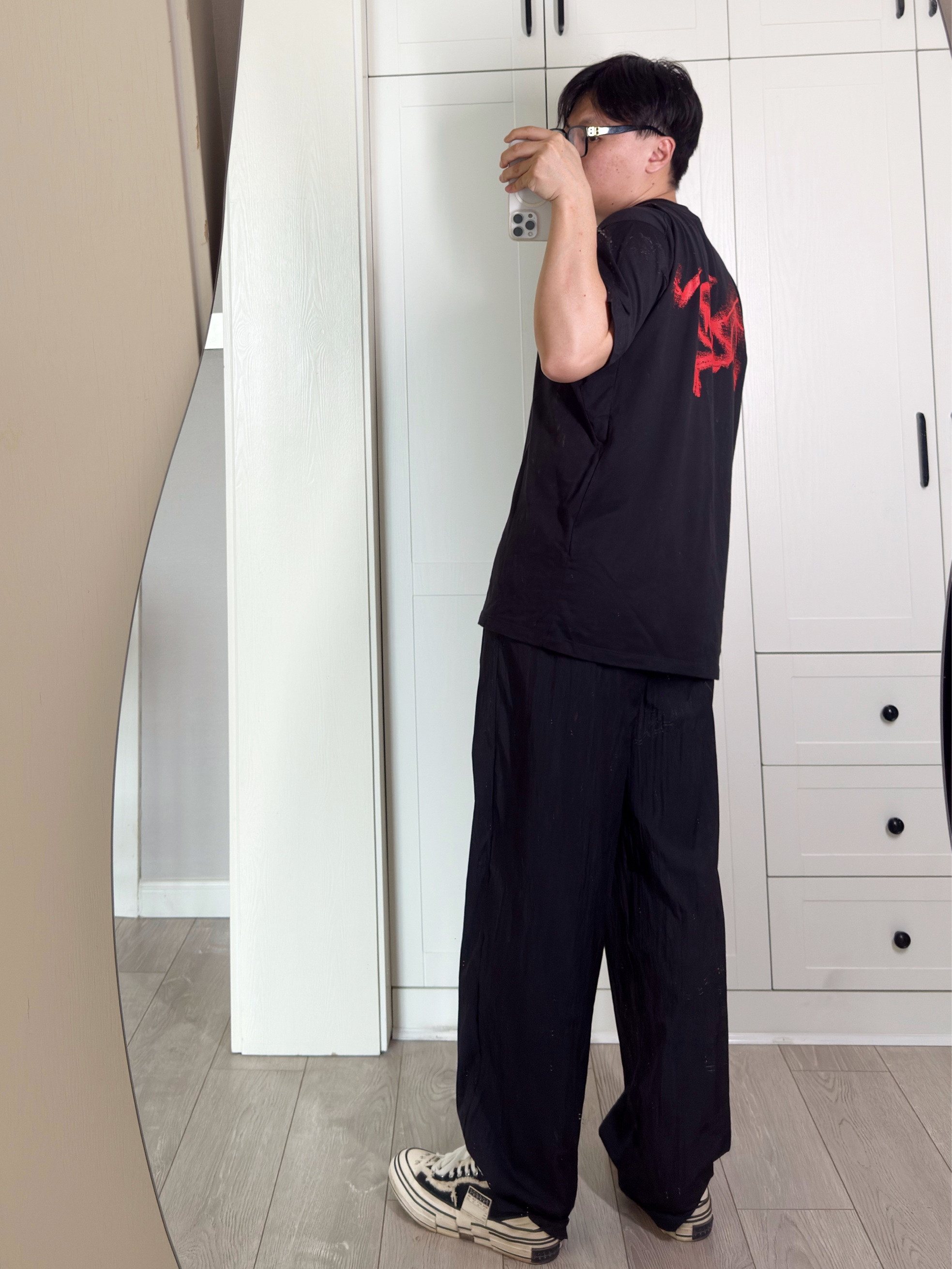 继续分享今年特别喜欢买的鸟T,很薄的纯棉,上身真的很舒适,前面的小logo,背后的模糊鸟帅炸了。可以说是任何年龄都通吃了。 搭配的话,继续配我喜欢的阔腿裤帆布鞋,帅就完事儿了。
