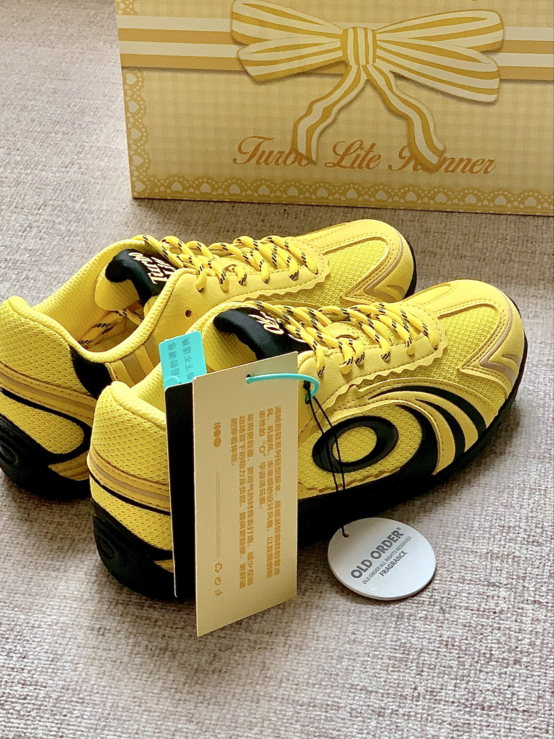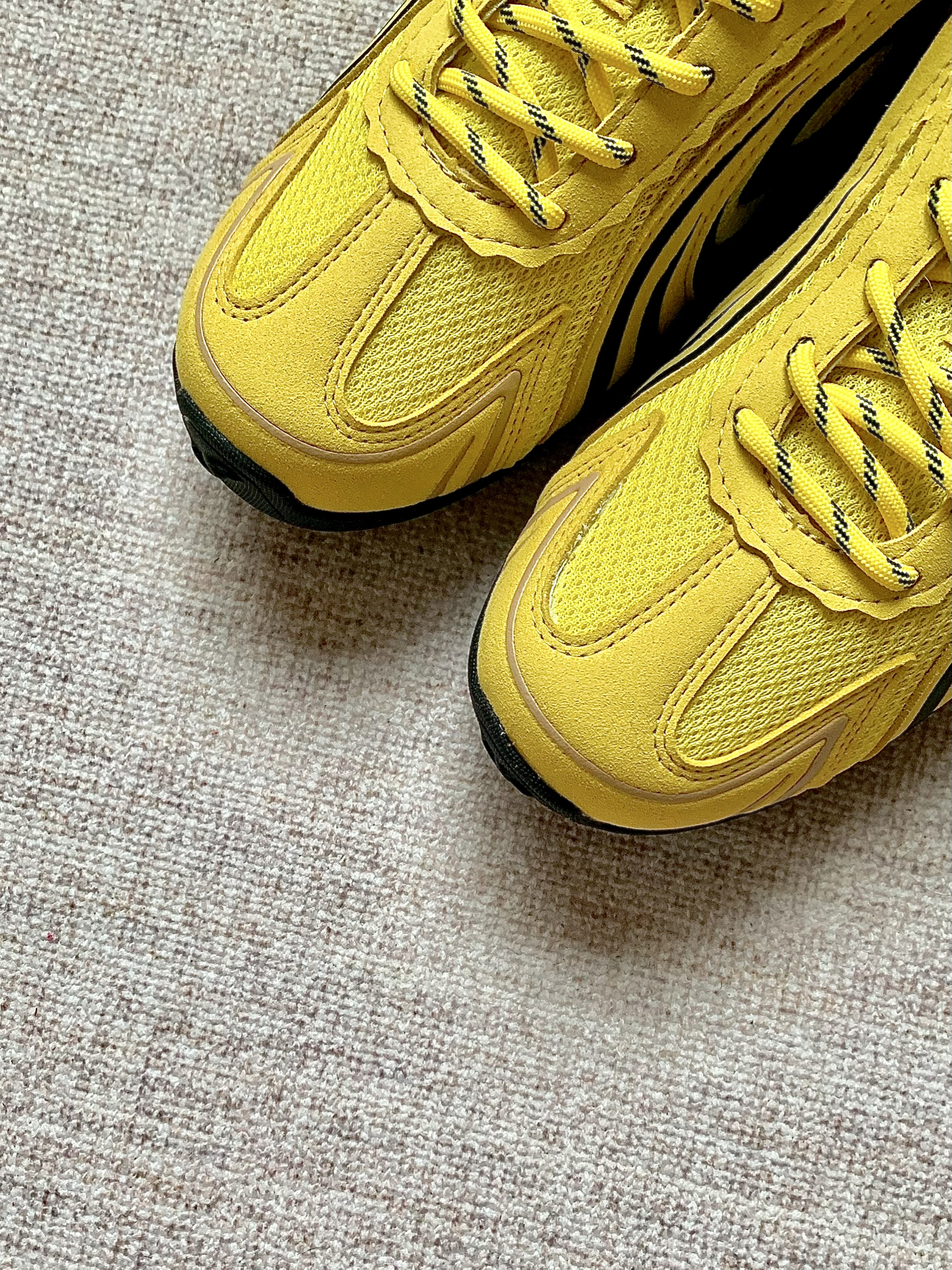 活力日出🌞 真的像太阳一样,很温暖阳光的一双鞋子🌅 💗Yellow Sunrrise黄配色德训👼 是网面的,透气性Ok 轻薄材质,是一款芭蕾🩰风格设计的跑鞋 😃也是一双脚感轻盈的跑鞋,路走很久也不会累脚 鞋码🦶:正码正拍