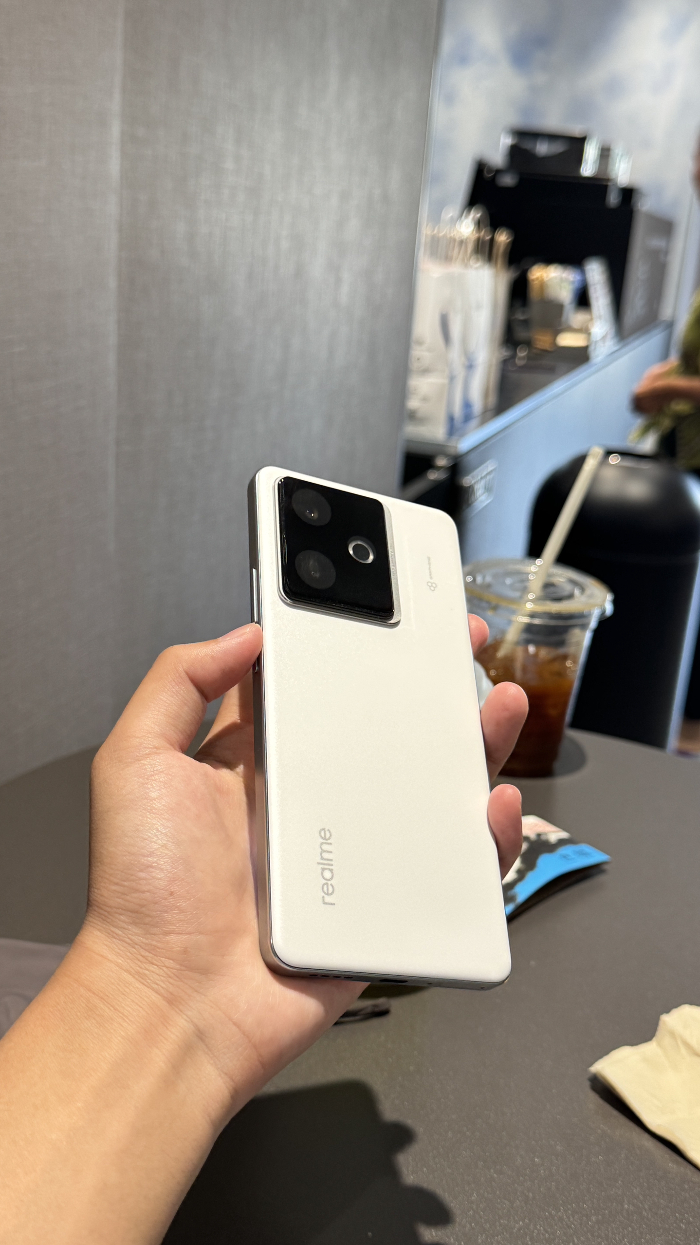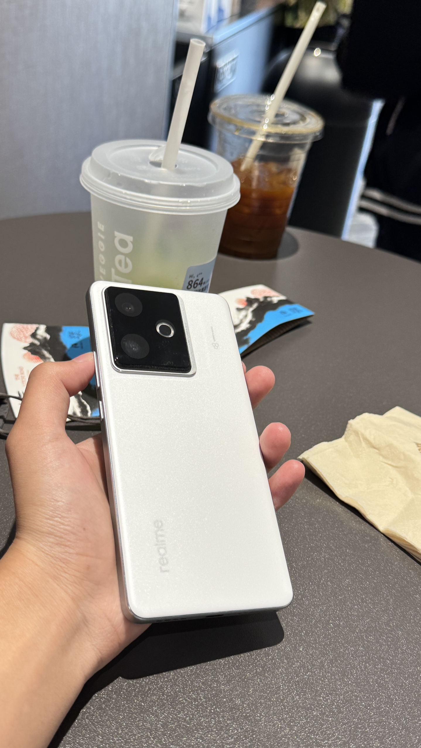 【☕咖啡局偶遇宝藏机! realme这抹磨砂白太绝,背面镜头模组超有设计感✨ 翻转看屏,17:10的萌】,由用户 反派椰 分享,来自江西。这是一篇来自识货社区的真实用户分享笔记。