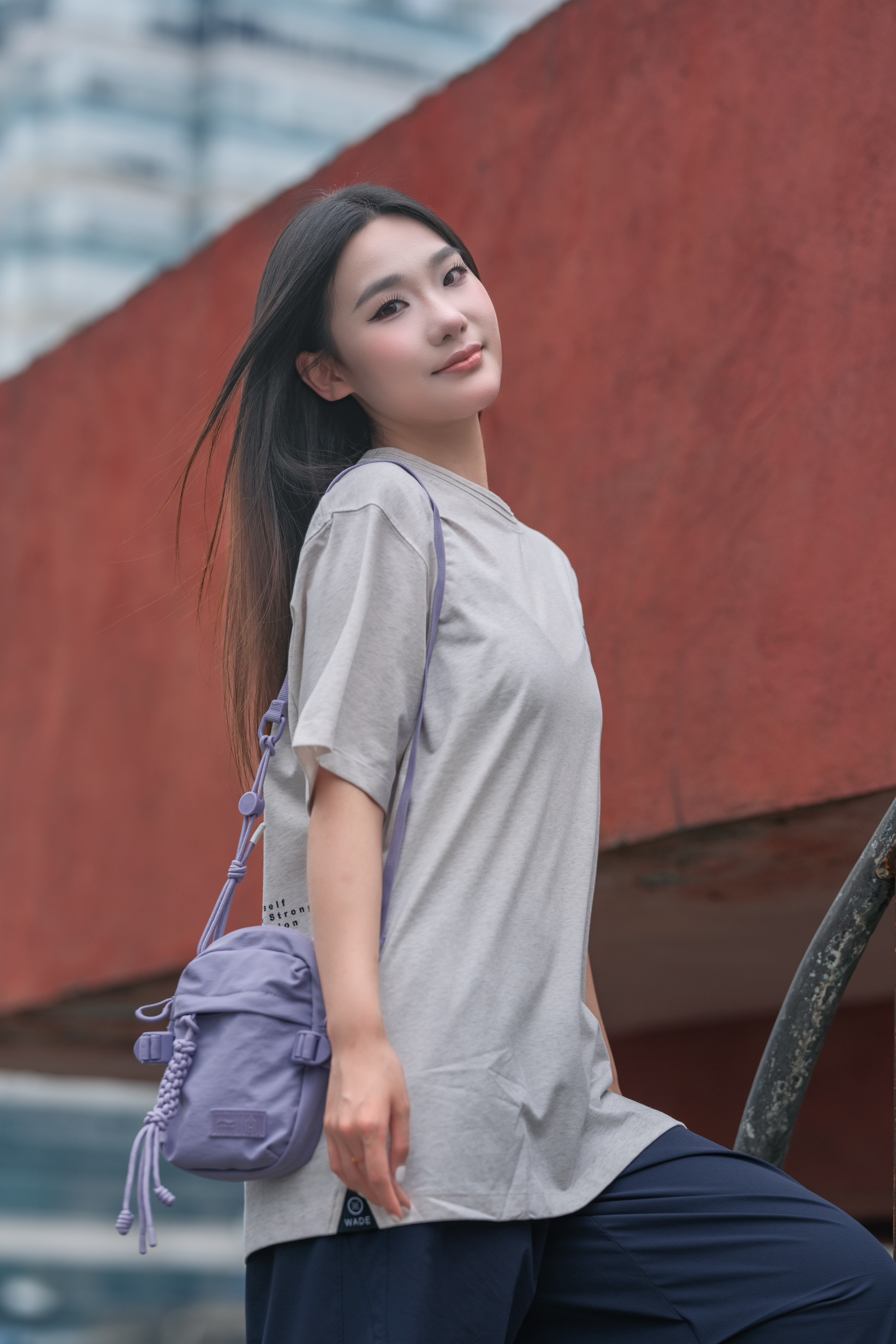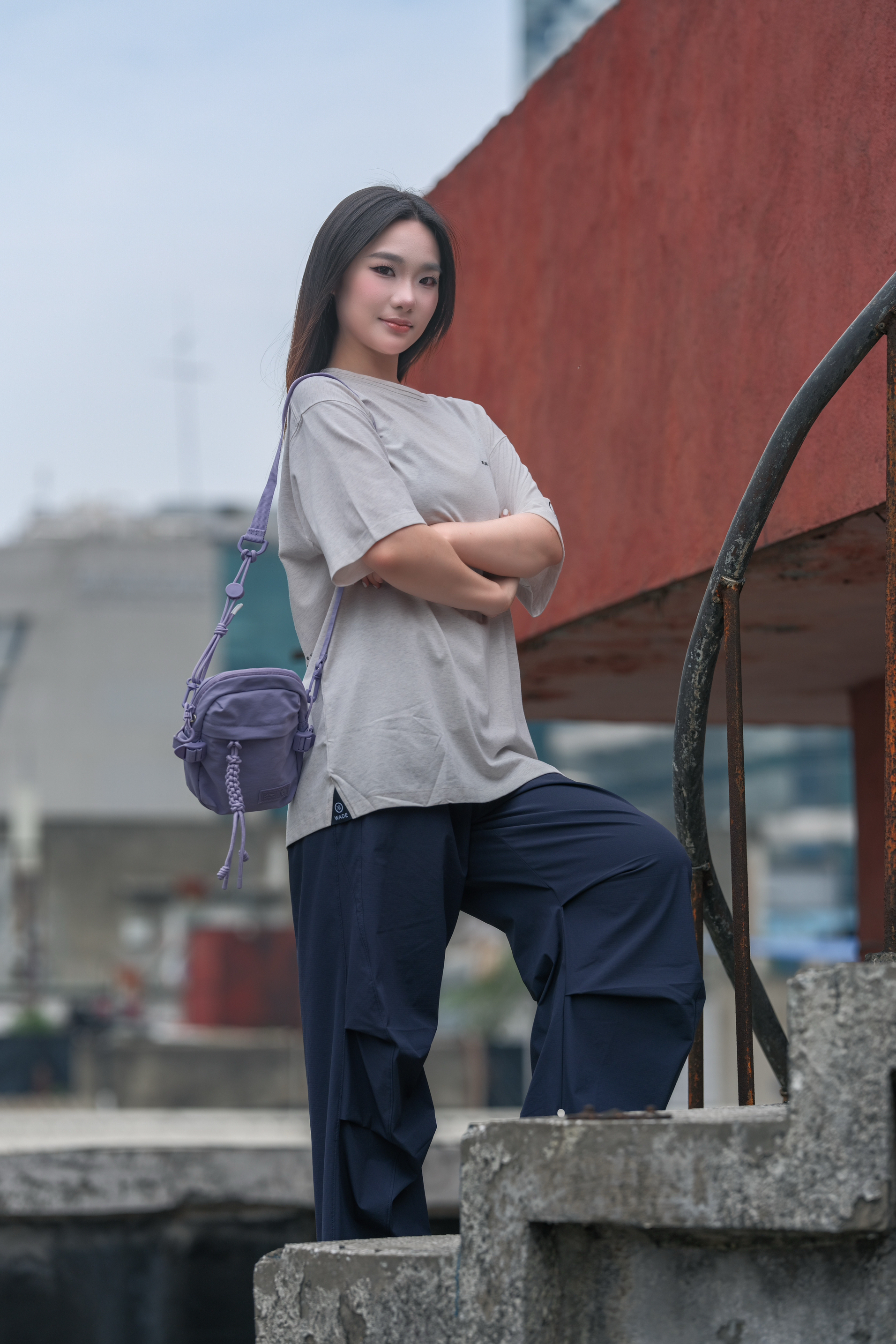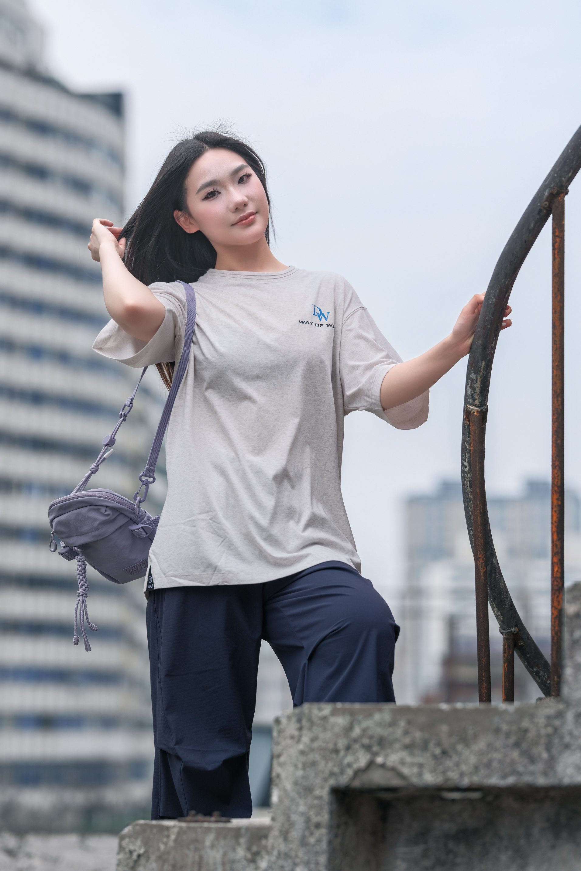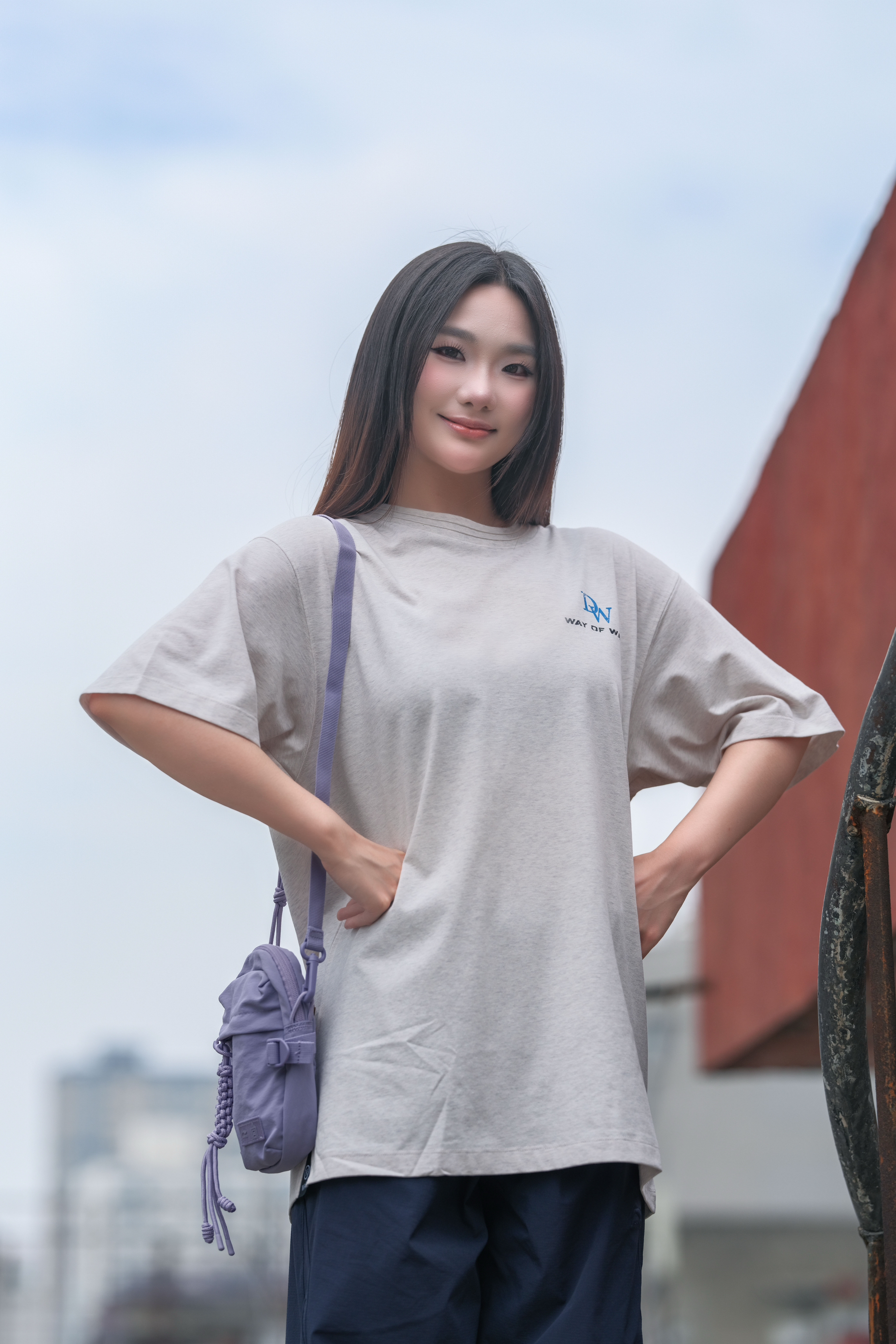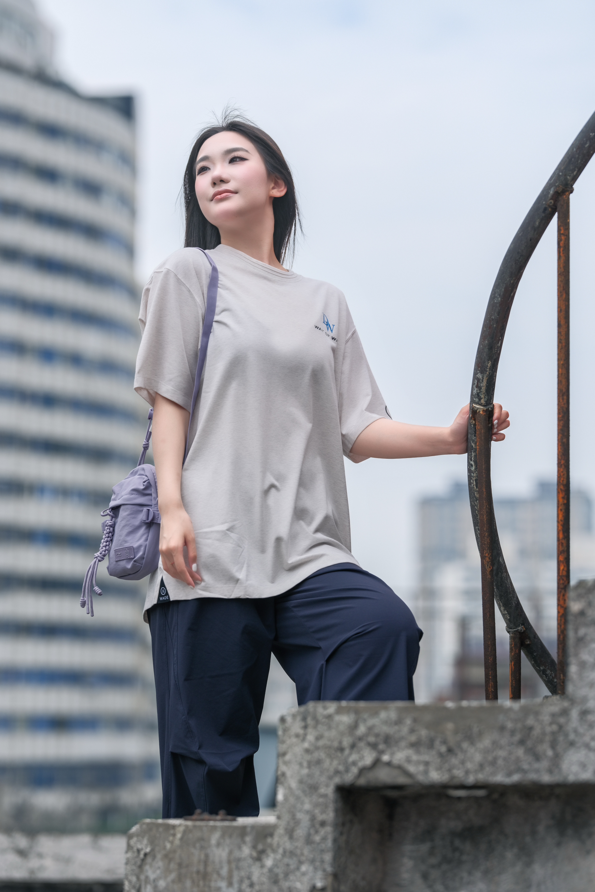 浅灰简约印花T + 藏蓝阔腿裤,慵懒又随性 搭个浅紫挎包💜 配色清爽到不行~ 日常出街、逛公园、压马路 都适配 主打一个舒服自在还好看✨ 想轻松拿捏松弛感的宝子,直接抄作业✔