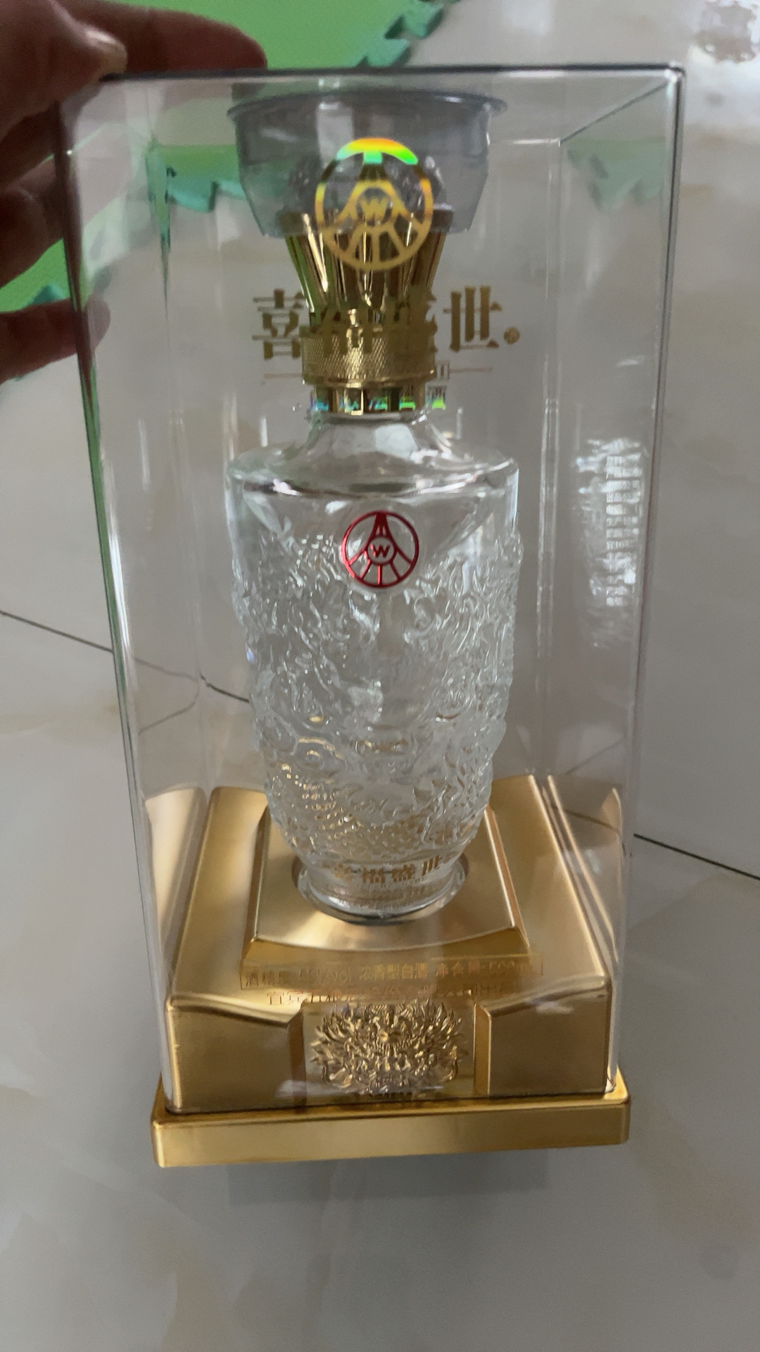 它精选高粱、大米、糯米、小麦和玉米,沿用五粮液那超牛的非遗酿制技艺,历经层层工序,才成就这一瓶 52 度的浓香佳酿。轻抿一口,绵甜醇厚瞬间在舌尖散开,回味悠长,让你欲罢不能。 瓶身设计超惊艳,浮雕立体龙纹栩栩如生,搭配钻石造型瓶盖,高级感拉满。灯光一照,底部五粮液 “W” 标呈立体状,尊贵感爆棚,放哪都是焦点。