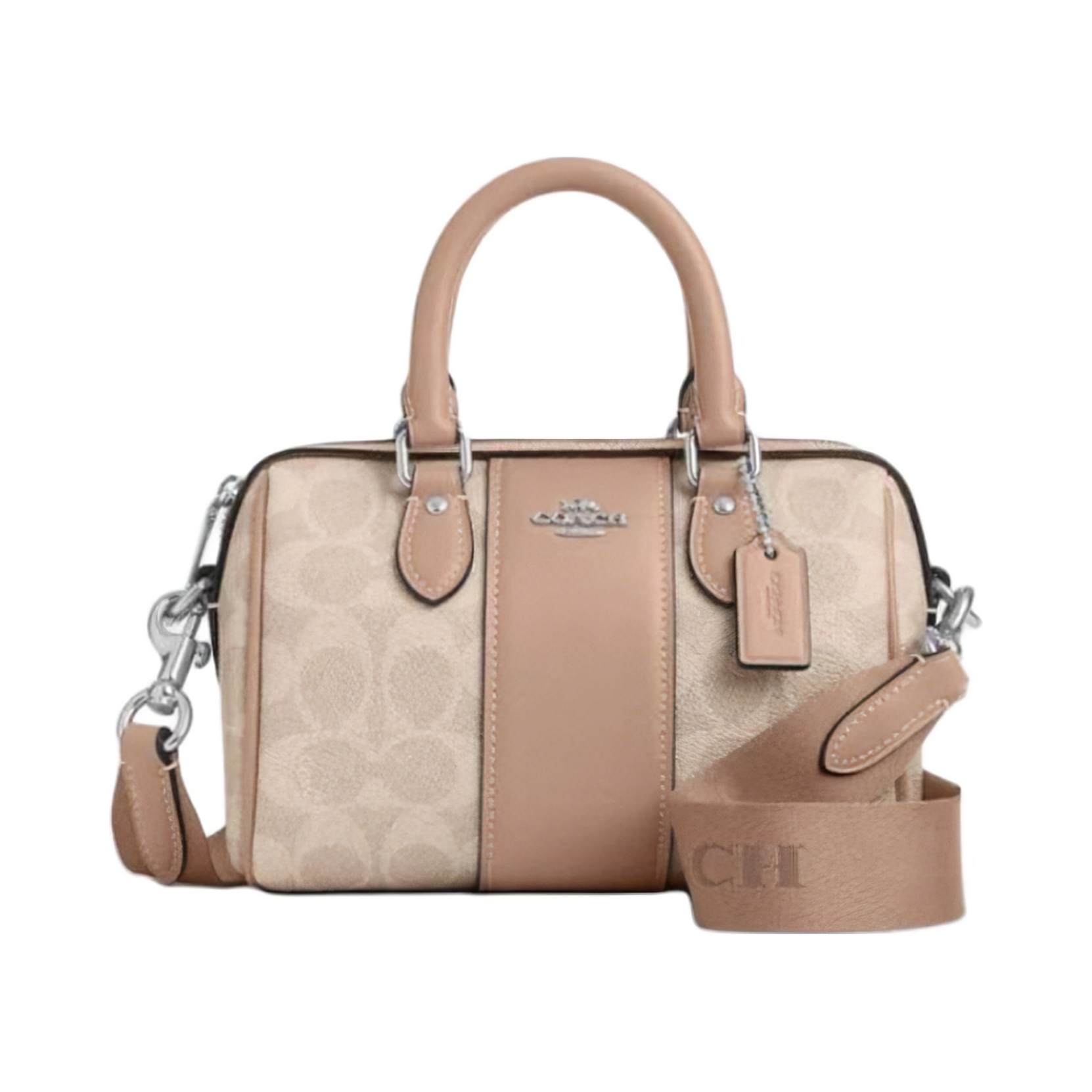 本篇笔记关联了Coach Rowan 18 品牌徽标拉链开合人造革条纹斜挎单肩手提包 奶茶色等商品,为用户提供真实的使用体验和购买参考。
