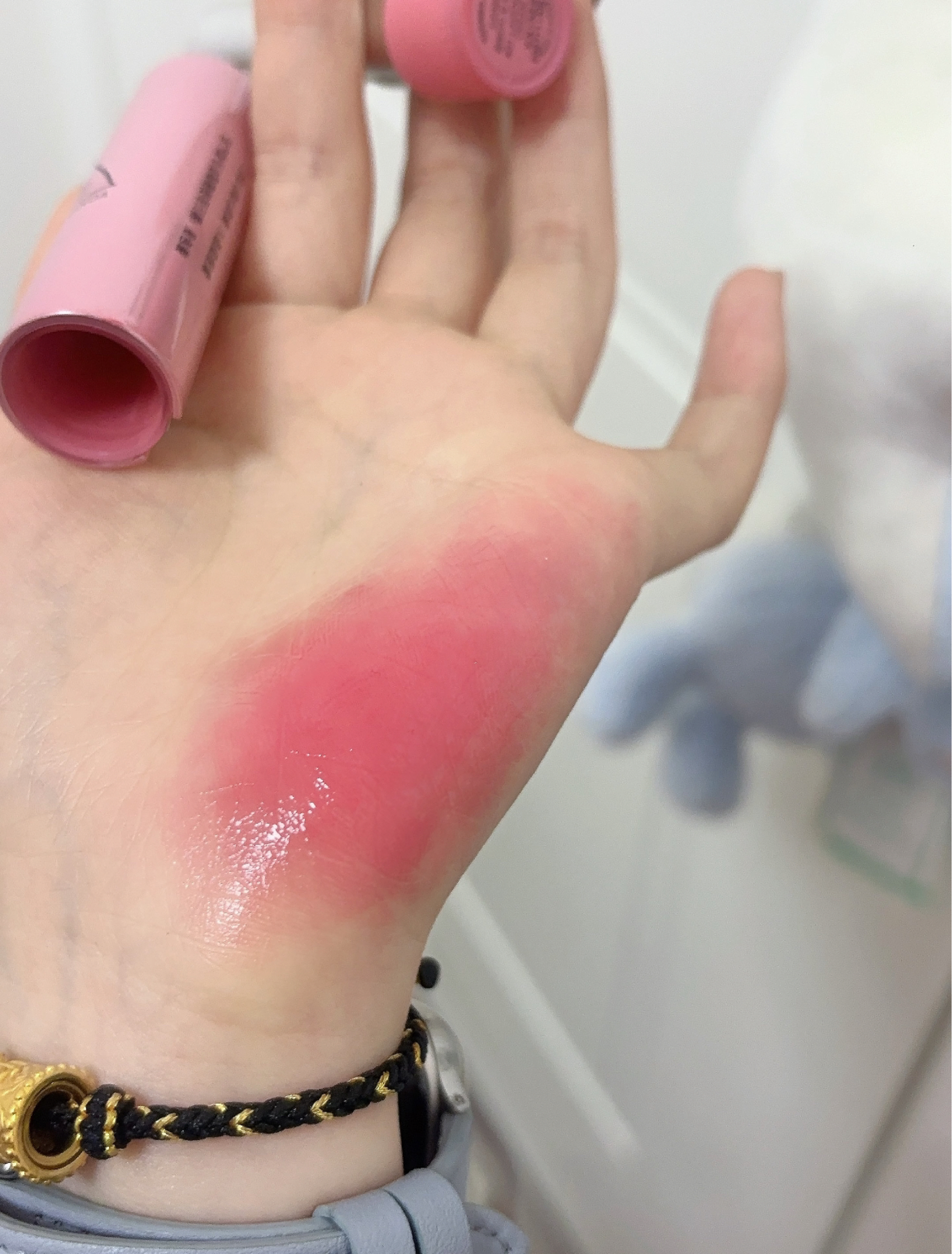 去逛街 试了一下 马上拿下 好好好好嫩!!!很能遮唇色 我唇色挺深的 但是涂出来也是蜜桃色!!!