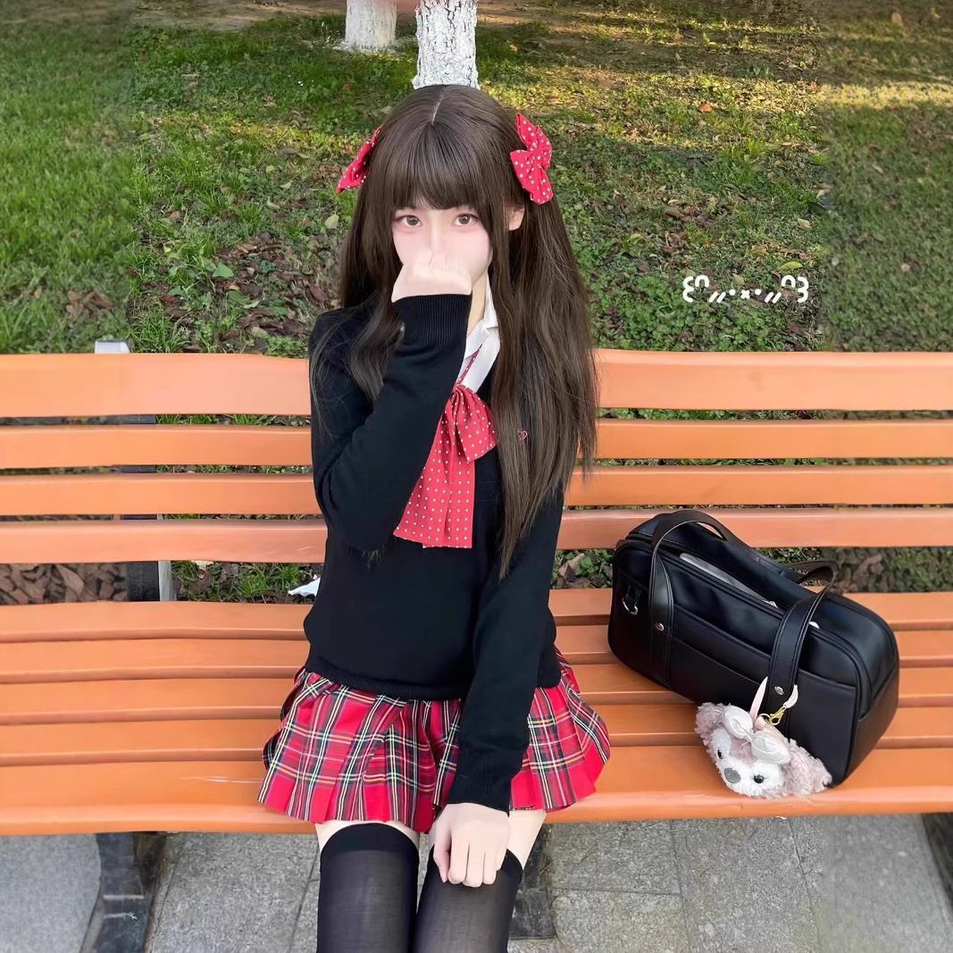 原创正版日系JK制服秋冬校供毛衣格裙套装夏衣穿搭