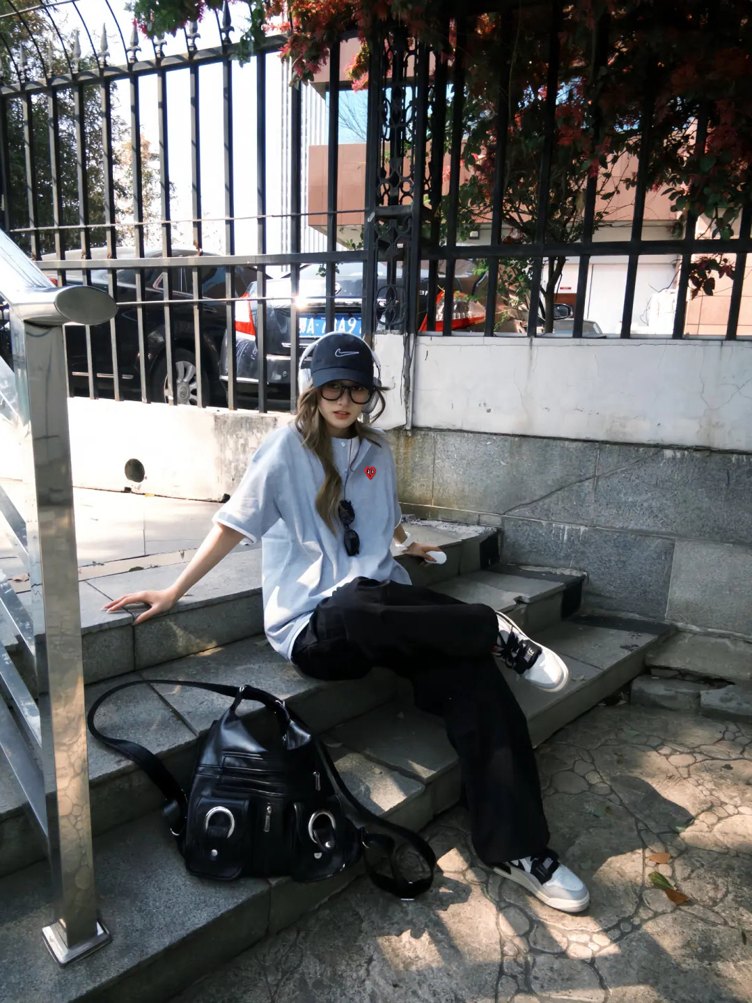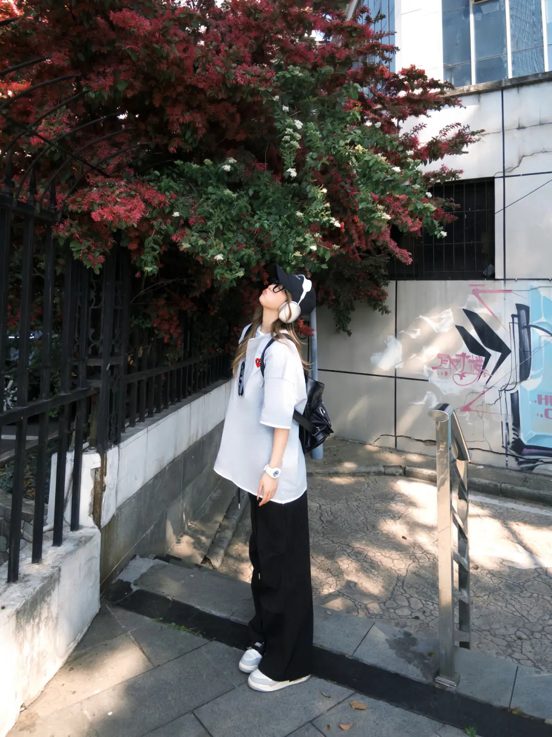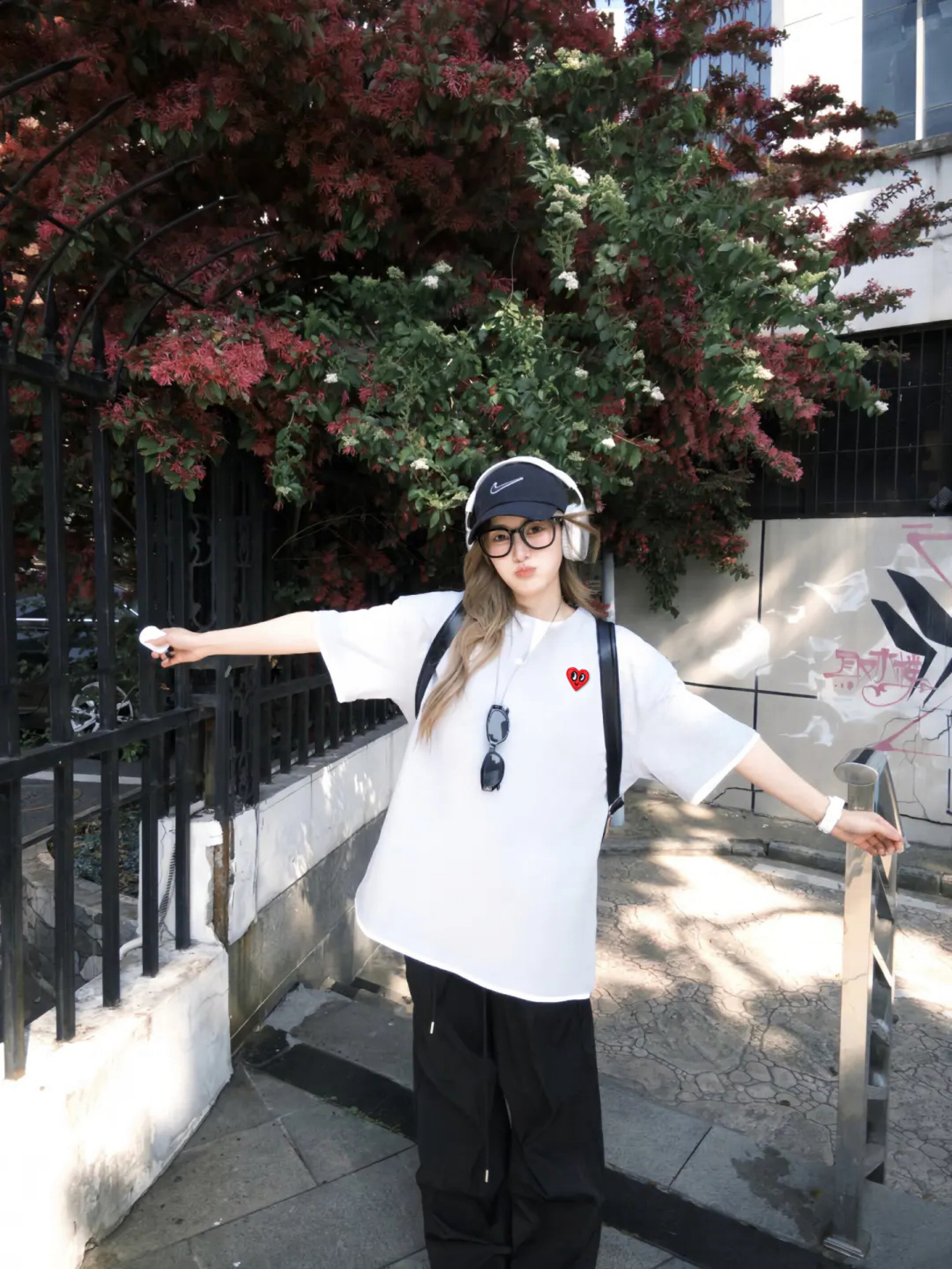 日常就喜欢穿得舒适又好看,这件假两件设计的短袖真的很特别,灰色更加显得慵懒和高级,搭配黑裤版型,轻松出门嘻嘻