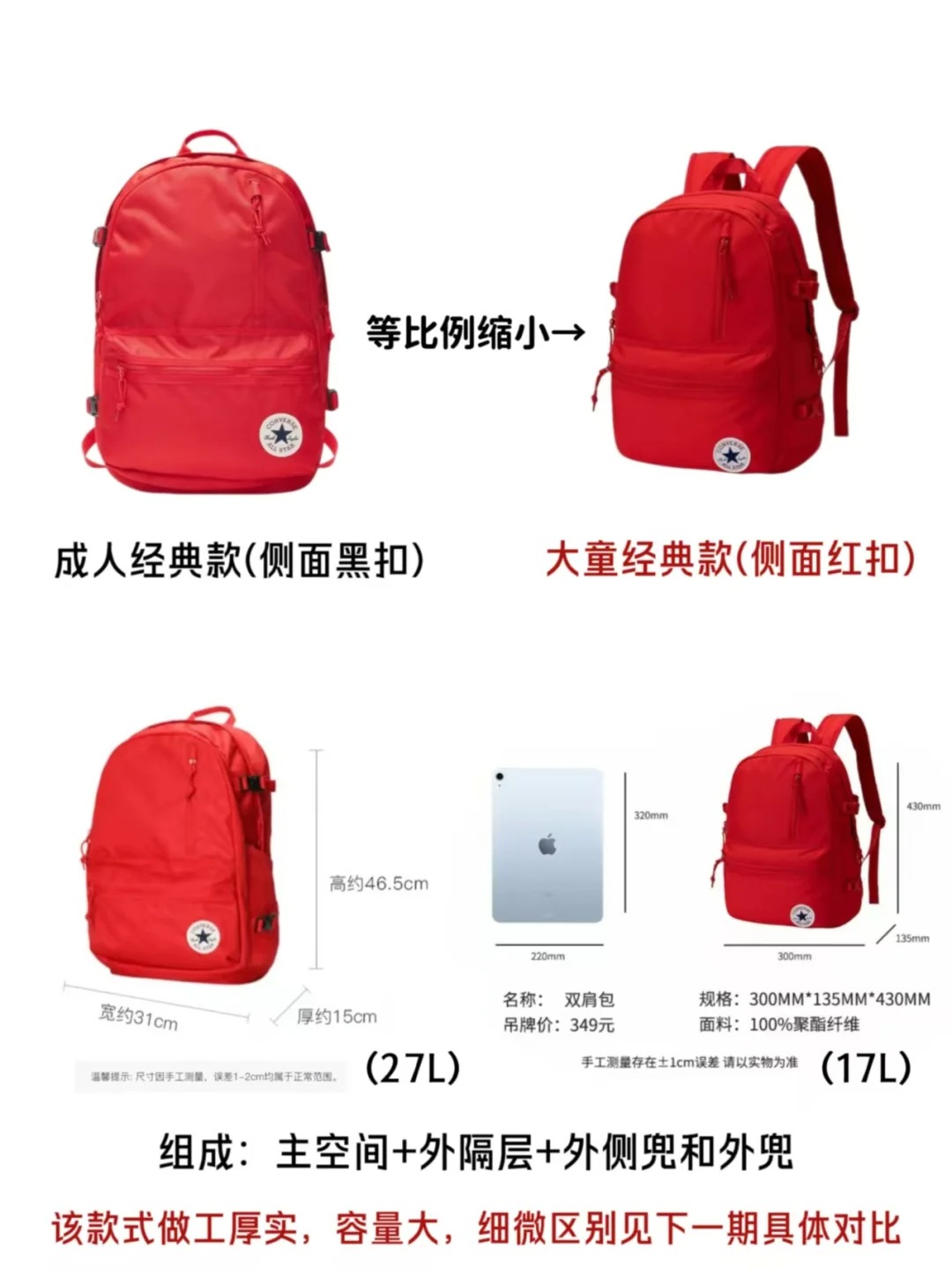 本篇笔记关联了Converse/匡威 中号时尚潮流轻便减负大容量拉链开合女童小学高中生初中生多功能口袋童包背包双肩包 红色 CV2213004PS-002等商品,为用户提供真实的使用体验和购买参考。