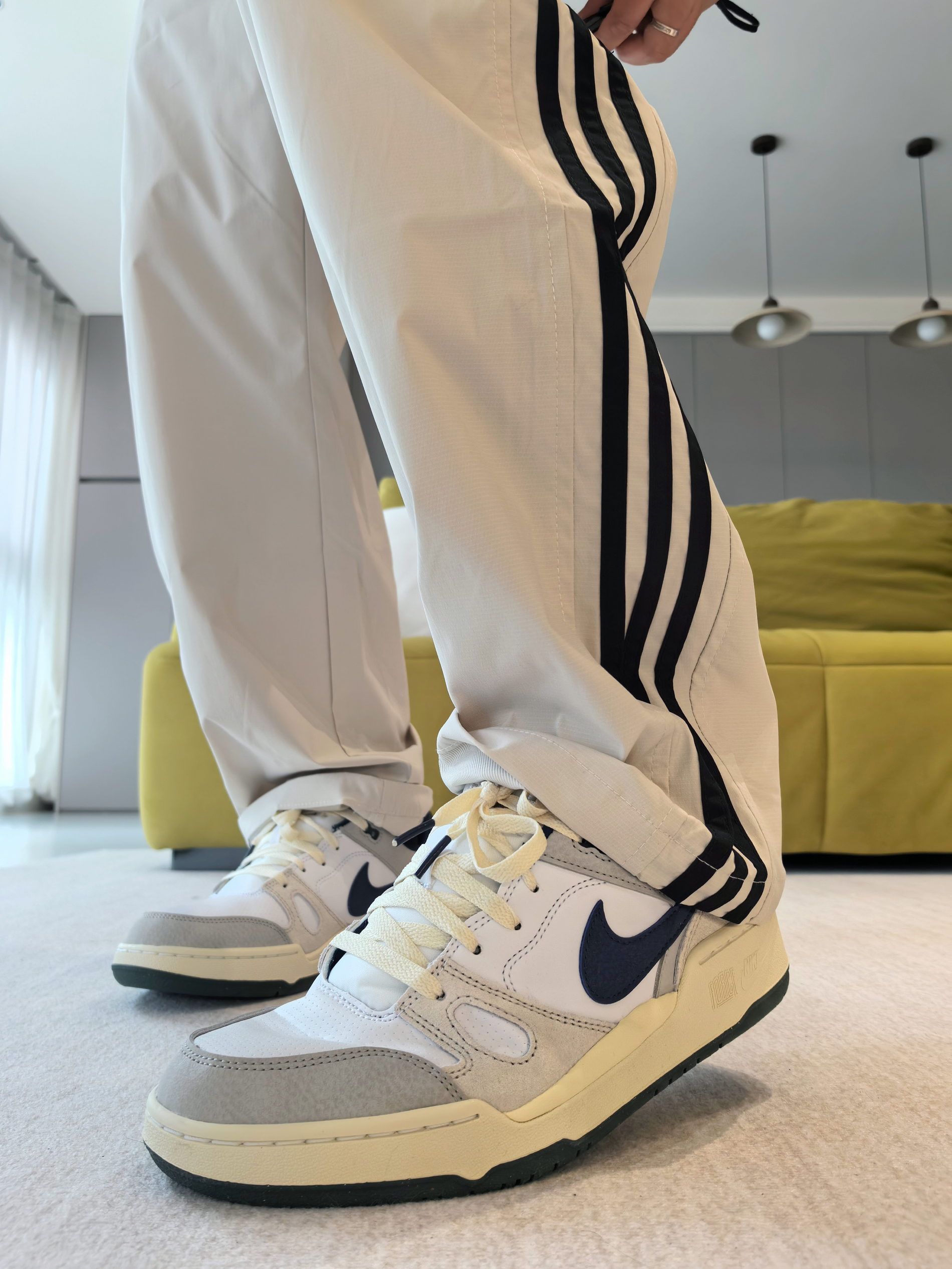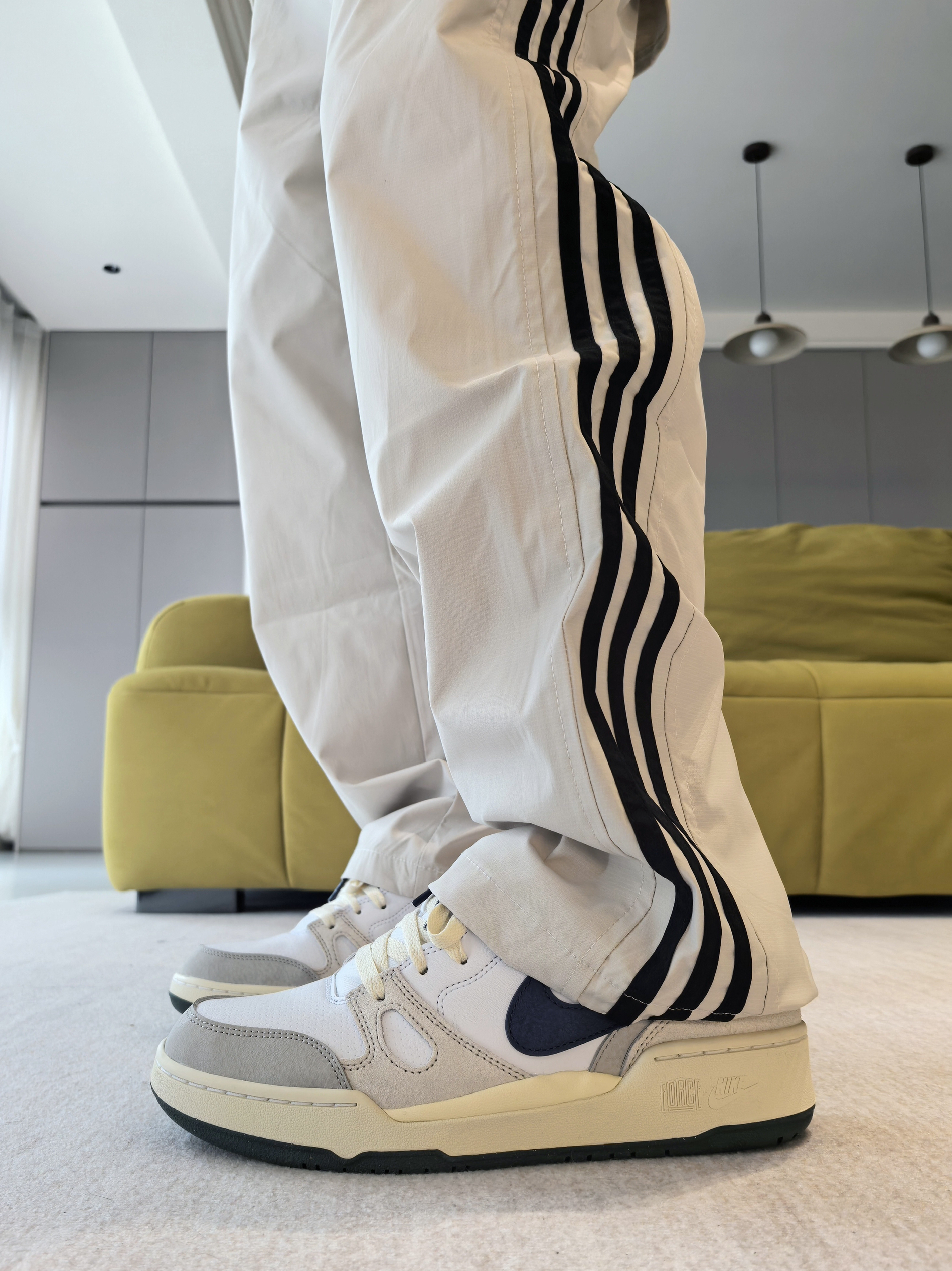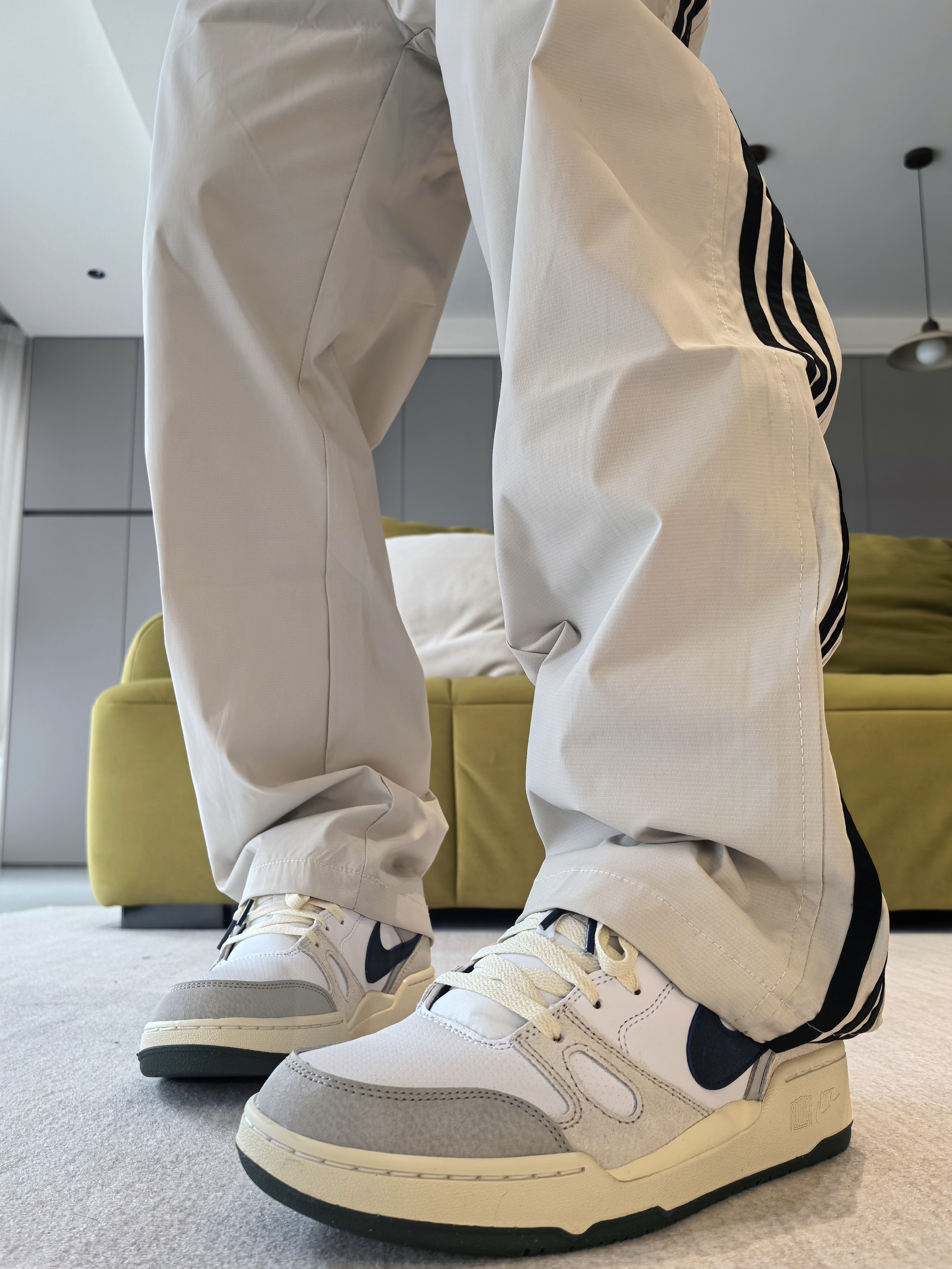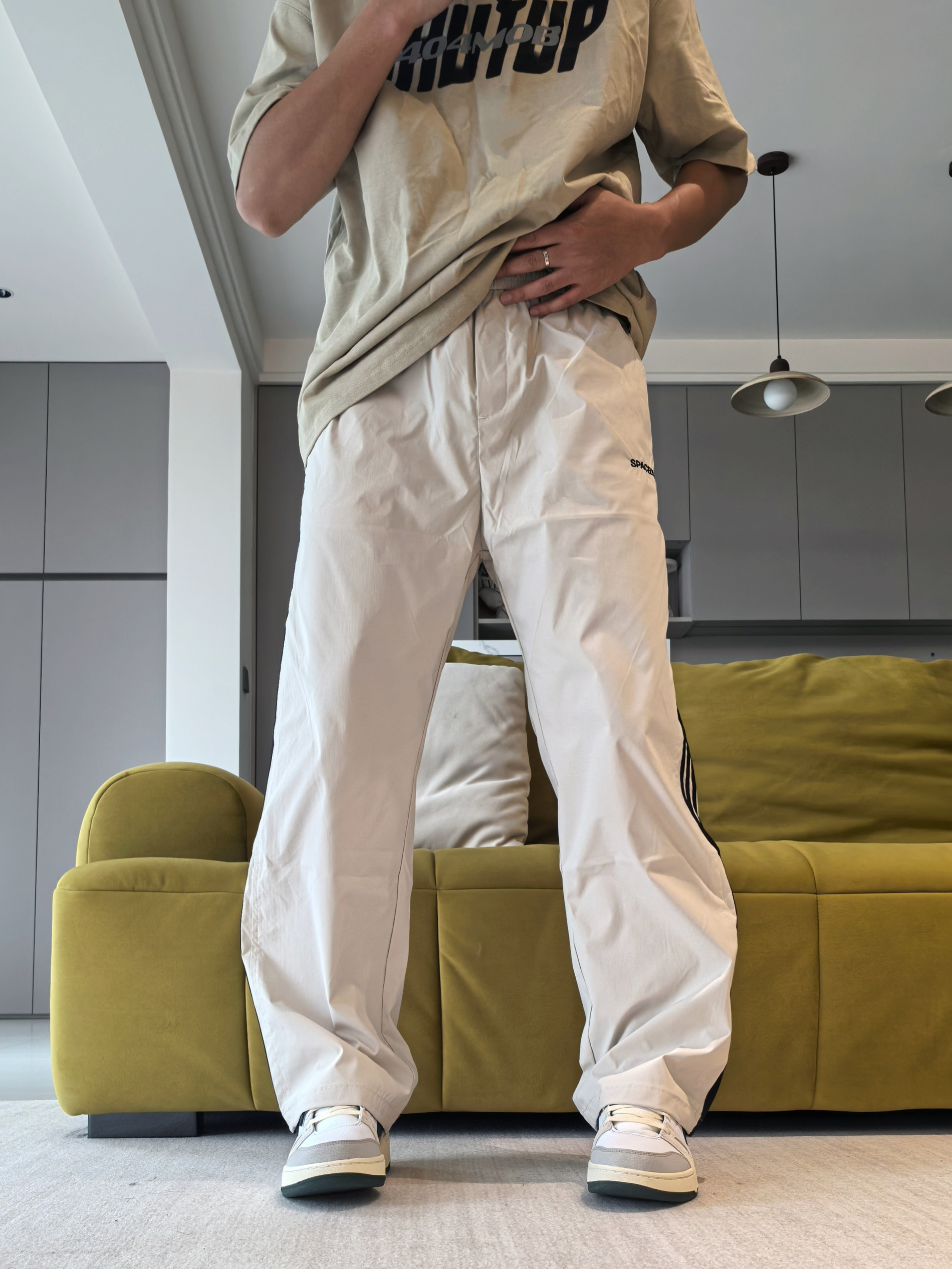 🔥是有它的原因的 毕竟颜值不差,大部分上脚都能百搭到位 ------ 主要注意的就是细节做工,以及鞋头尺码问题 同时脚感要多磨合! 一丢丢伞兵裤造型 小腿位置微微的弯弧度造型,上身后很校园 ------ 👖侧边的黑色竖杠确实经典美潮 造型上融合了许多裤型的特点 上身的感觉就是妥妥的校园休闲裤