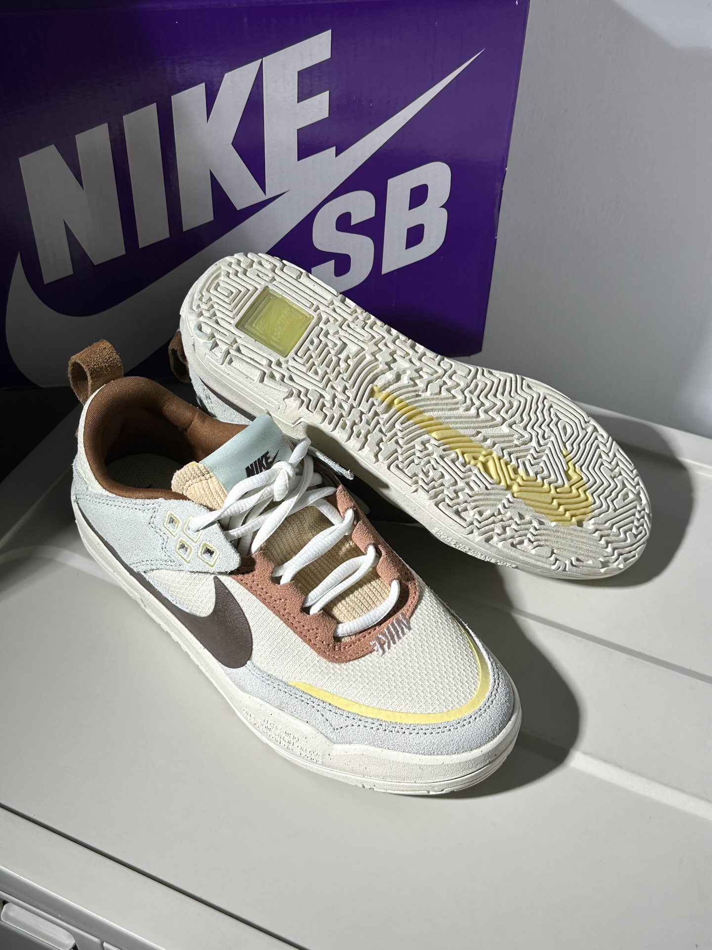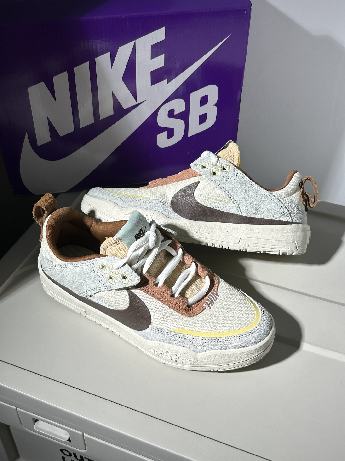 今天和大家分享一下最近发现的宝藏nike板鞋,一起看看鞋子的细节如何吧~🫐 − 🥝配色:最近入手了这双上Nike sb day one系列的小板鞋👟,鞋子采用非常多的浅色系进行拼接组合,有马卡龙的感觉🍮,而棕色则是给整双鞋子增添了很多的复古感🎞️,而且也让辨识度更强一点~鞋子带来的整体感觉是非常元气温柔的🍀,所以很适合夏天那种清爽感和比较偏向于浅色系凉感一点的穿搭🍉,而且鞋面也用到很多材质进行拼接...
