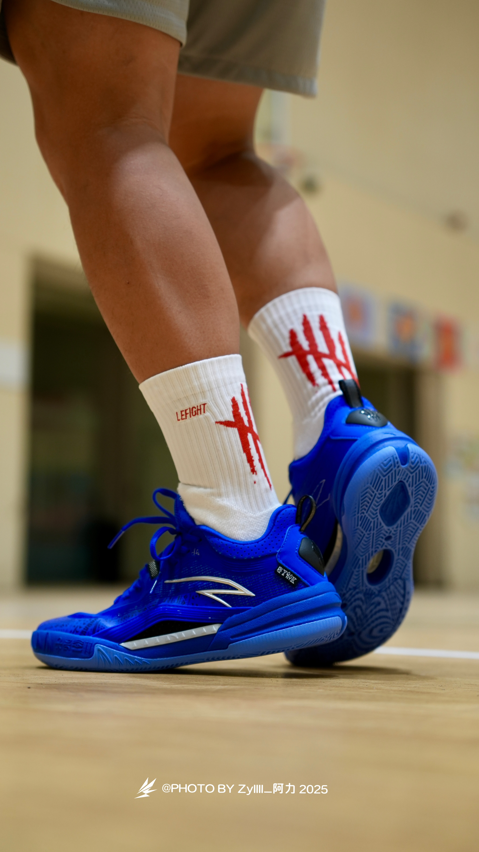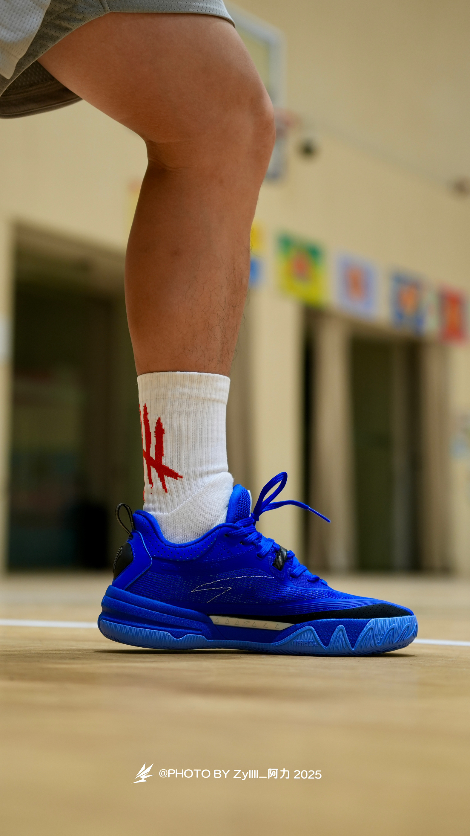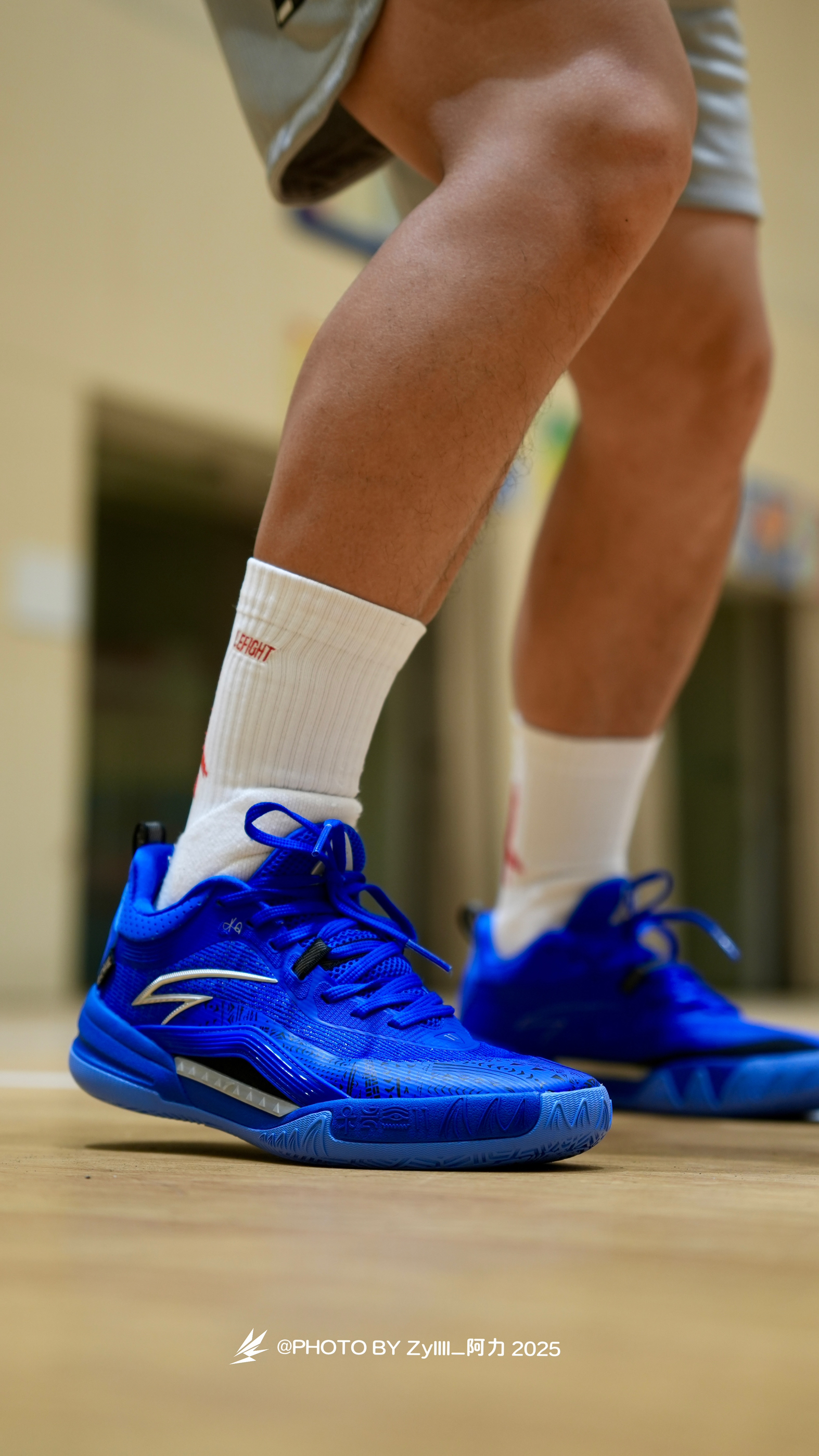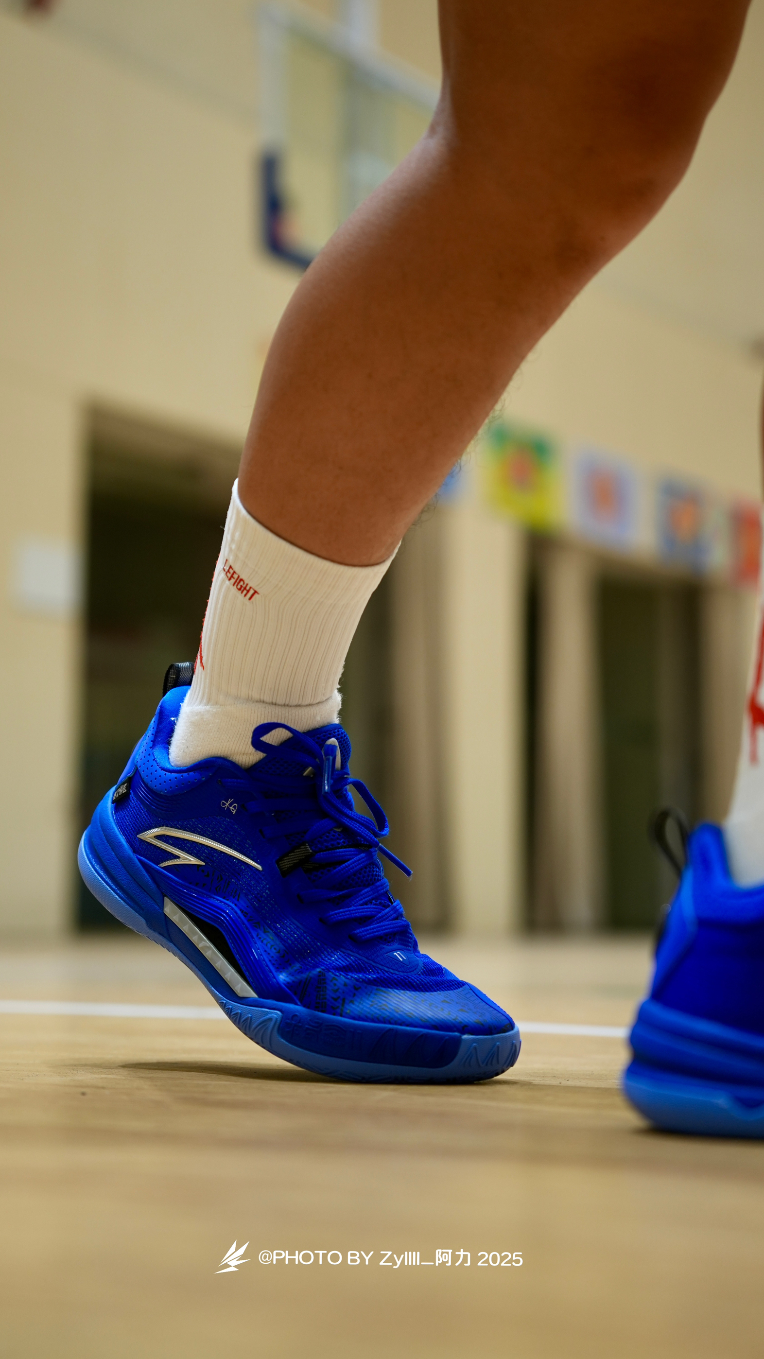 一眼感觉这一抹克莱因蓝得KAI1 Team 真的很酷 纯色系实战鞋搭配白色袜子,这搭配绝了❗️ 上脚之后的脚感是偏韧的 属于是薄底快靴一类的,80kg以下穿着没啥问题 抓地也不错,指哪打哪,各种变相动作也是可以放心的做