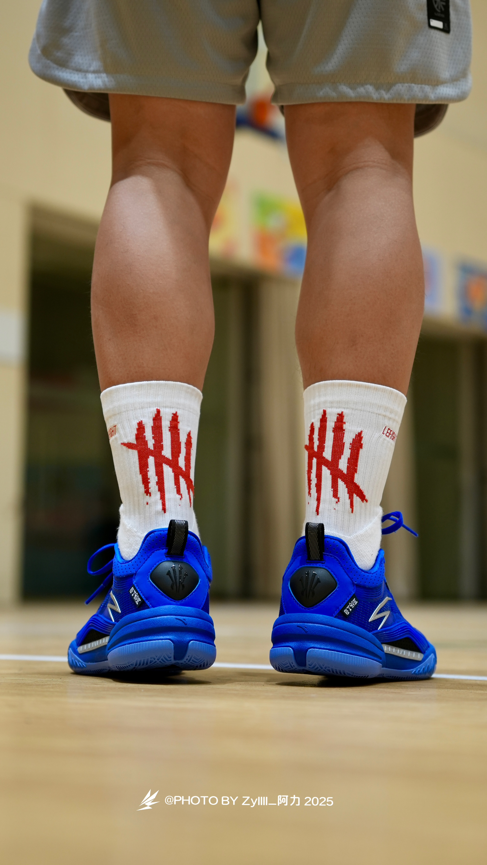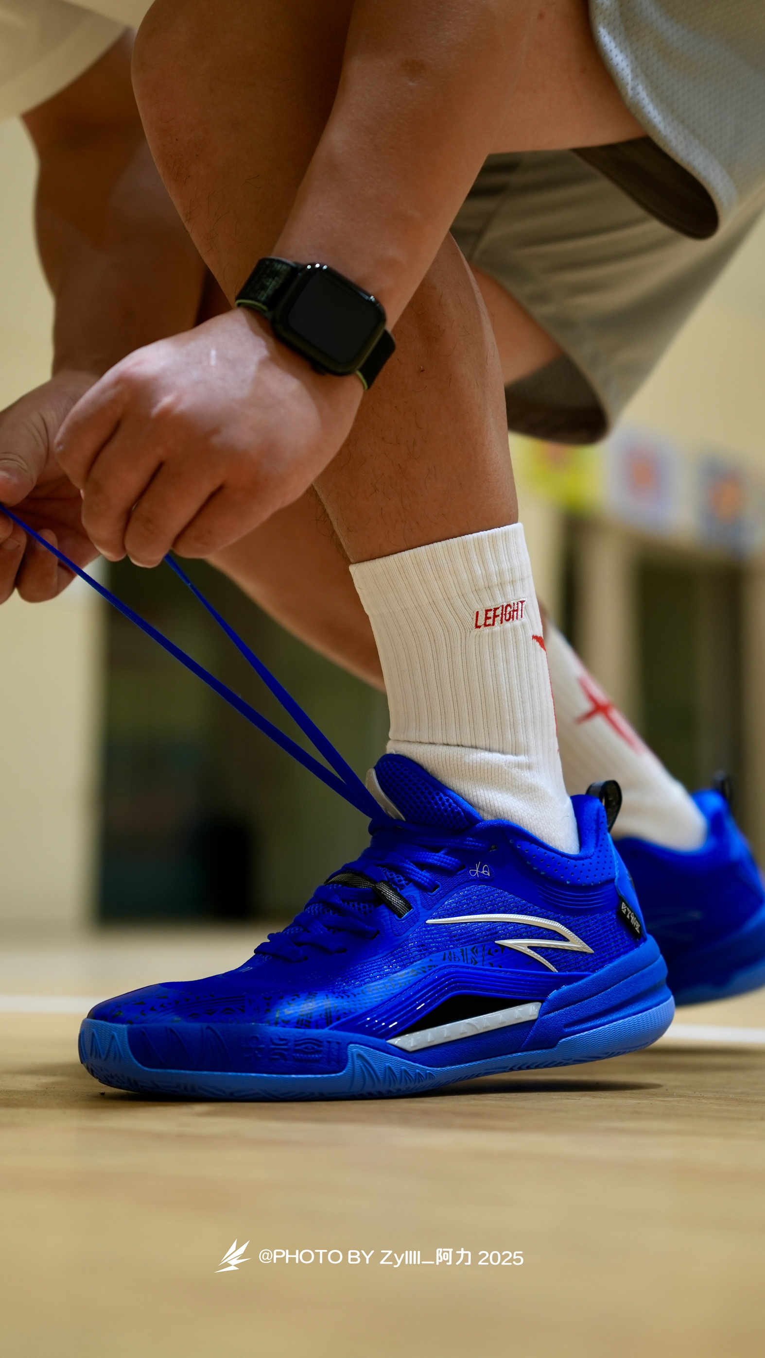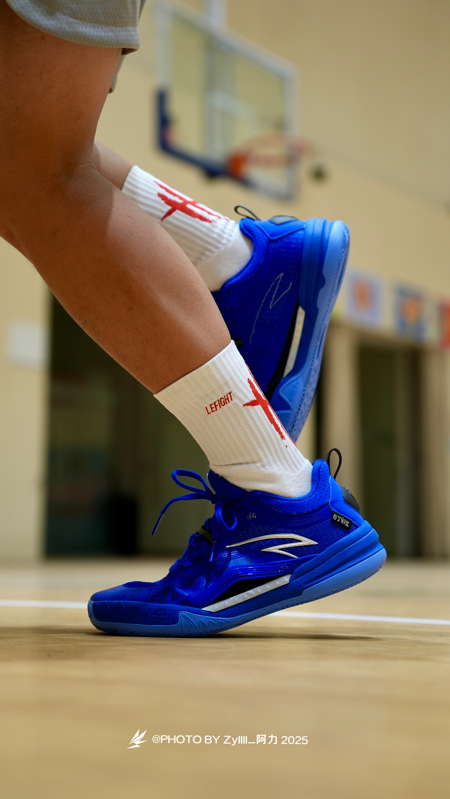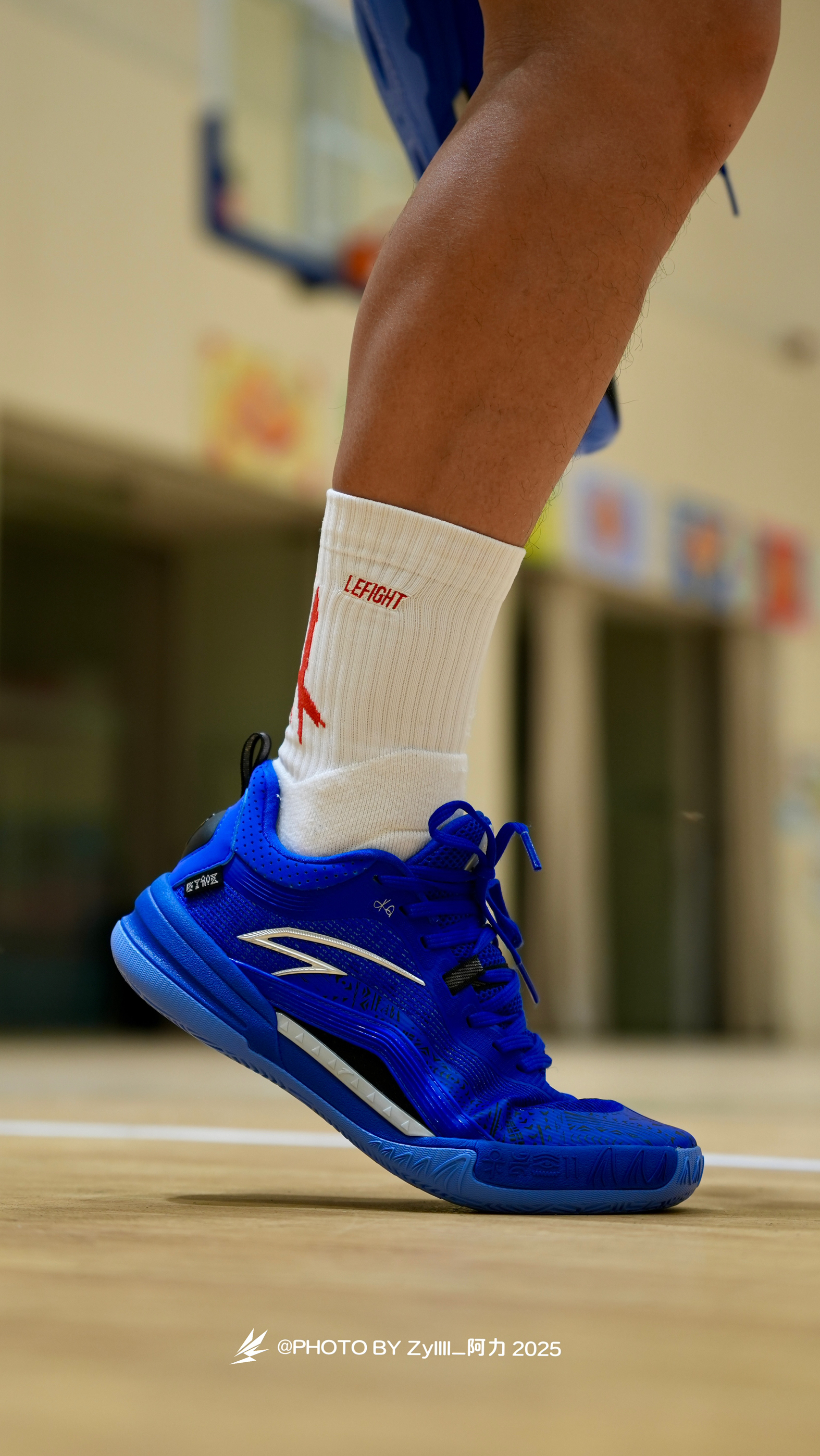 一眼感觉这一抹克莱因蓝得KAI1 Team 真的很酷 纯色系实战鞋搭配白色袜子,这搭配绝了❗️ 上脚之后的脚感是偏韧的 属于是薄底快靴一类的,80kg以下穿着没啥问题 抓地也不错,指哪打哪,各种变相动作也是可以放心的做