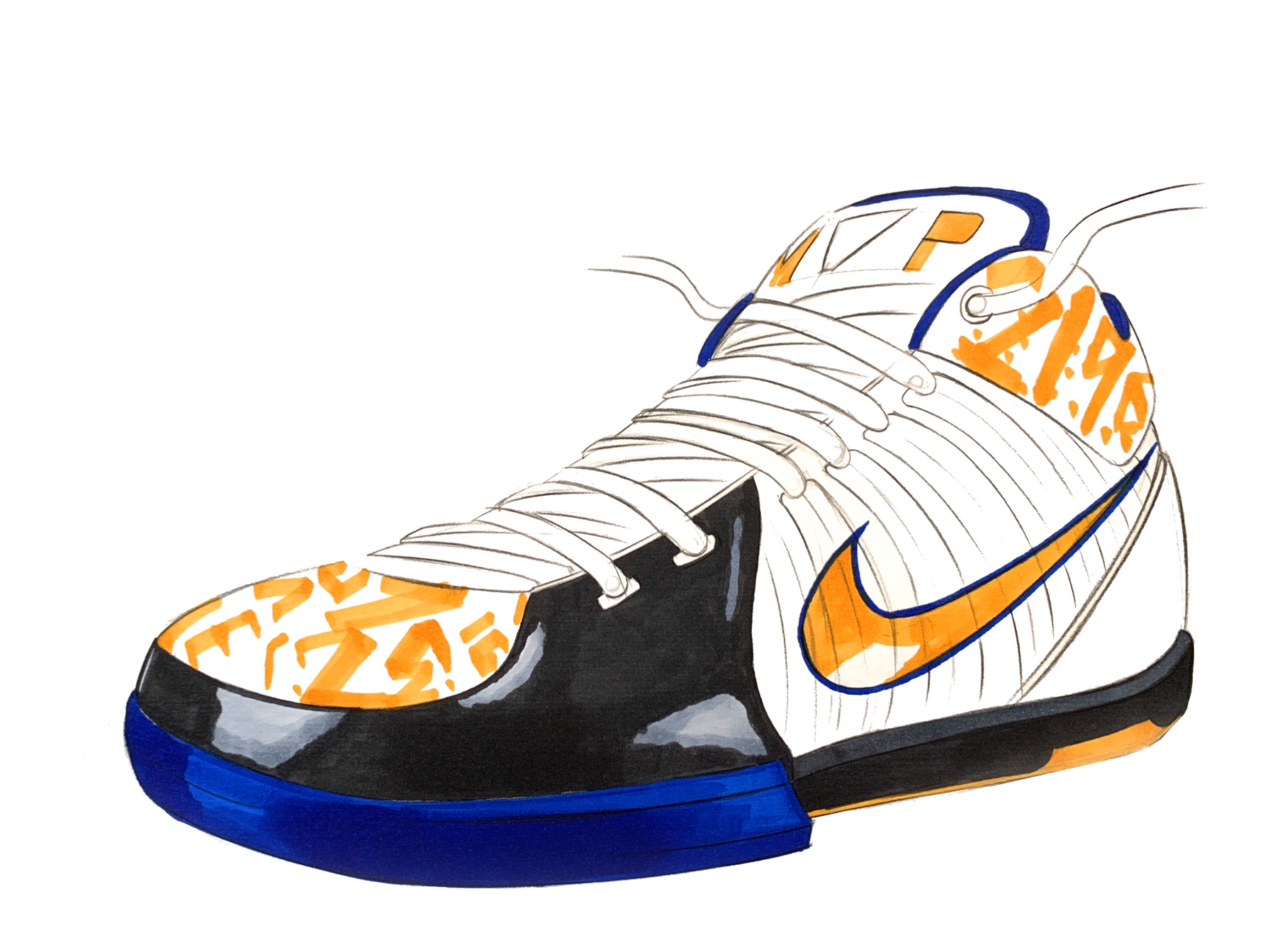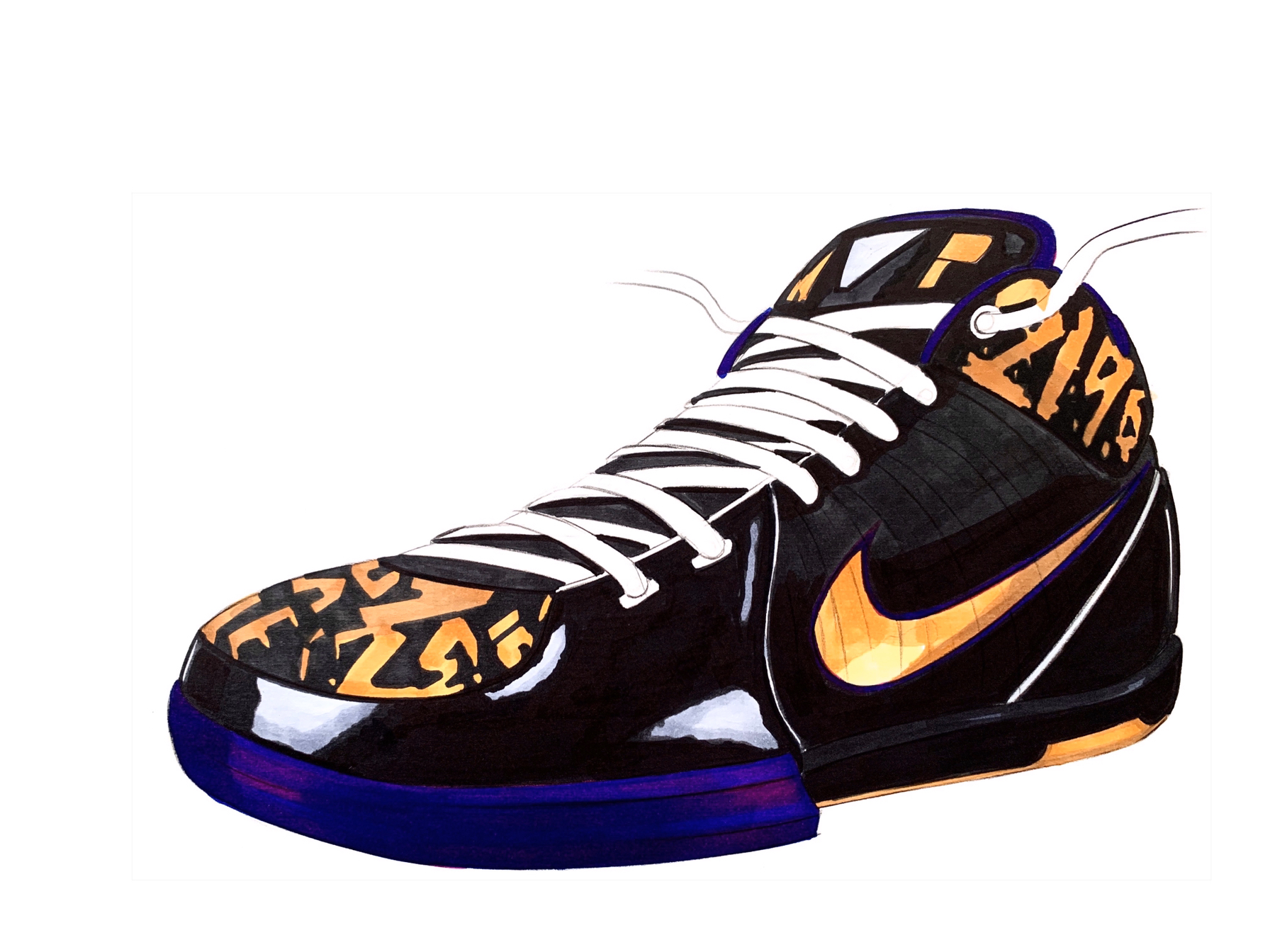 最喜欢的一款老大的球鞋,不论是造型设计还是配色印花,都象征着巅峰之上的紫金湖人的队魂。 这次给大家带来的是球鞋教程,步骤图,从线稿到定案。 工具: 线稿:辉柏嘉399 上色:法卡勒一代,三代,霹雳马彩铅 后期:Photoshop 想要原图的小伙伴私聊我~微博:王子豪手绘 还想看哪款球鞋手绘,下方评论区见~