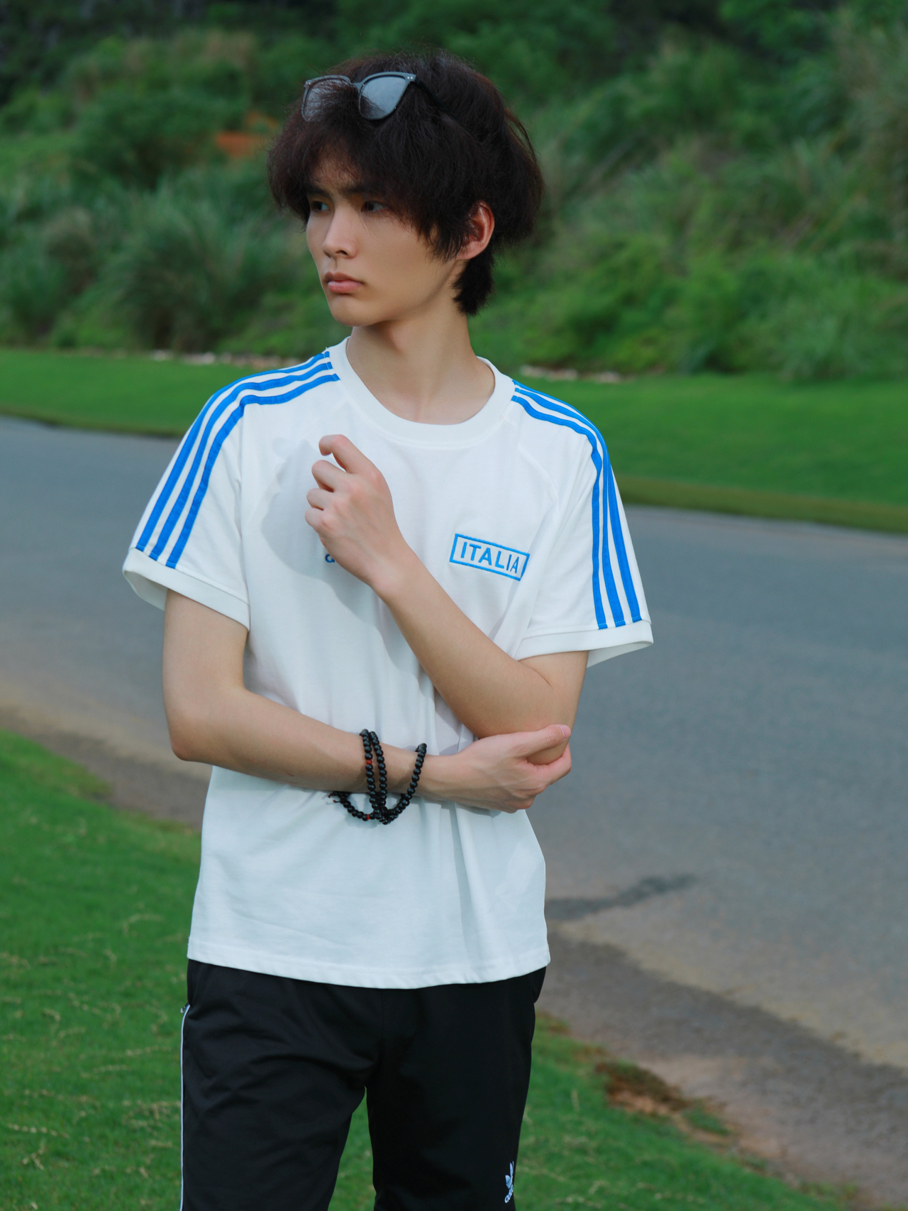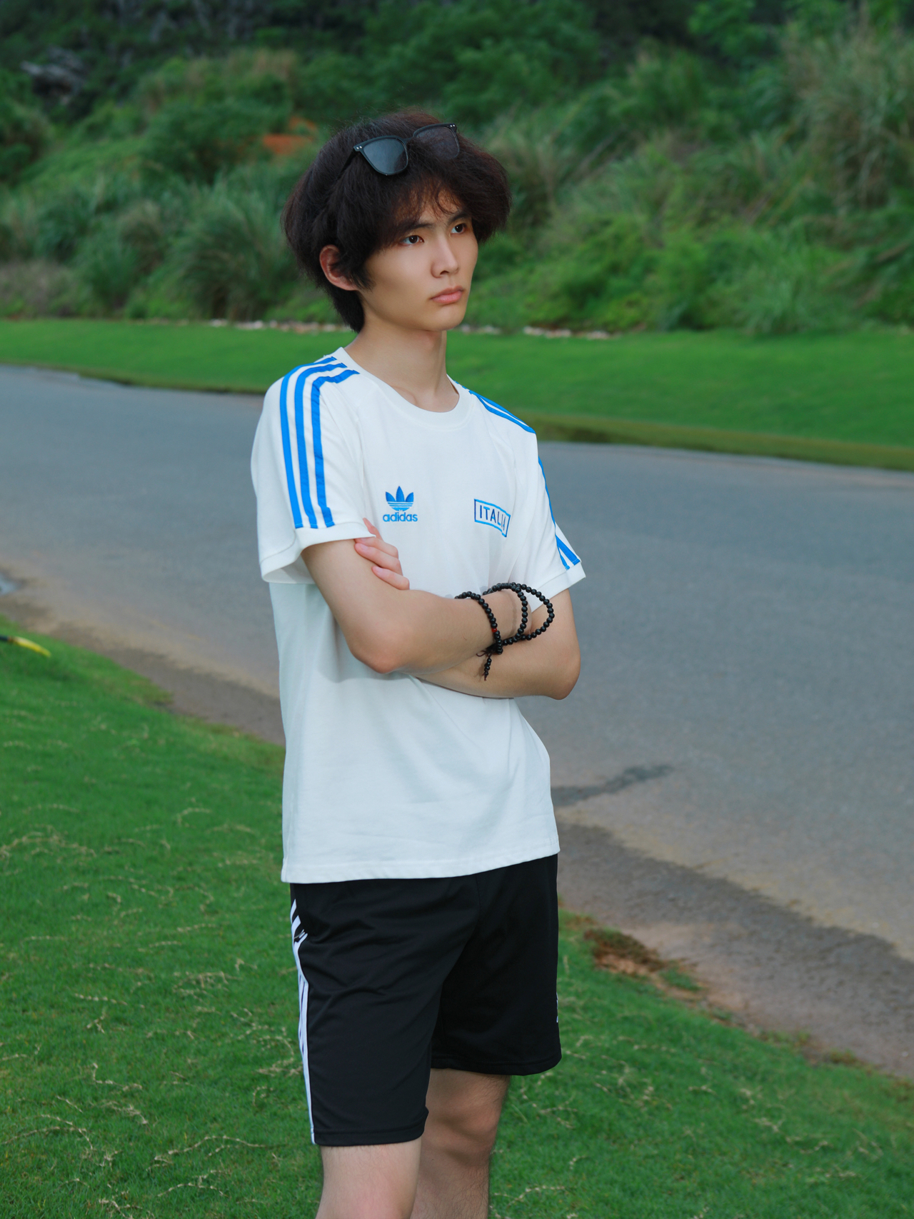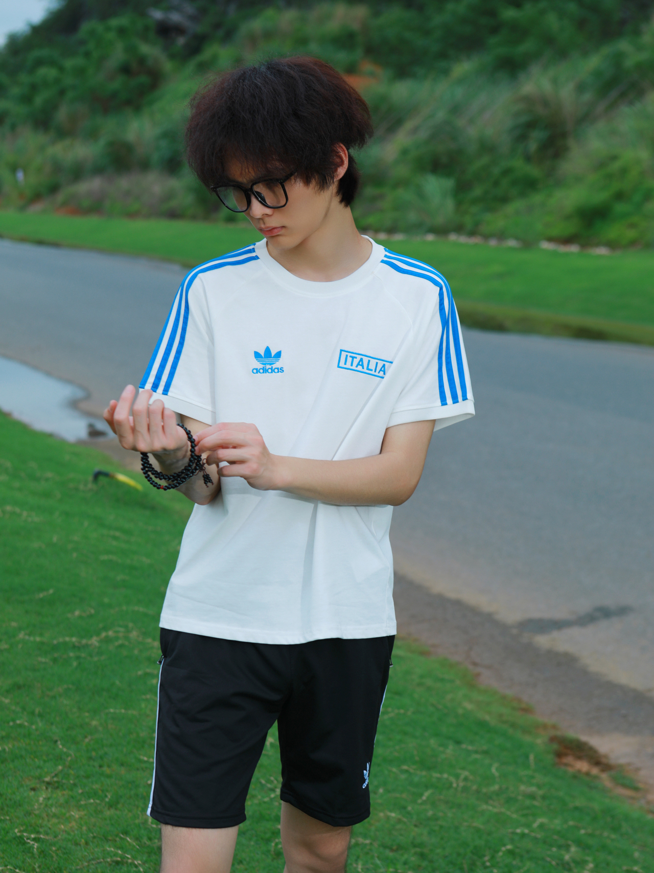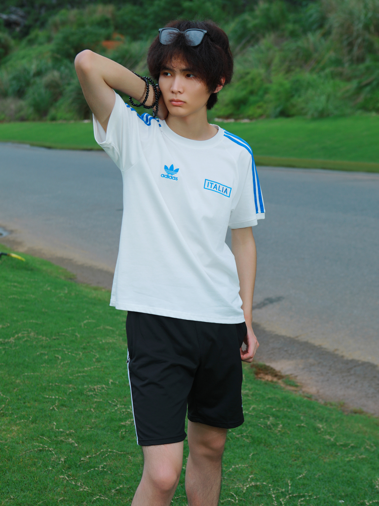 hello 大家好!我是叶非夜我非你 好喜欢这套穿搭!清爽过夏天🏖 经典黑白配!黑色短裤+白色短袖 棉质的面料 亲肤透气 嘎嘎柔软 纯白底色 + 经典三条纹,袖口暗纹藏着绿茵场细节,胸前队徽刺绣像把亚平宁的风穿在身上💥 图源网络,侵删