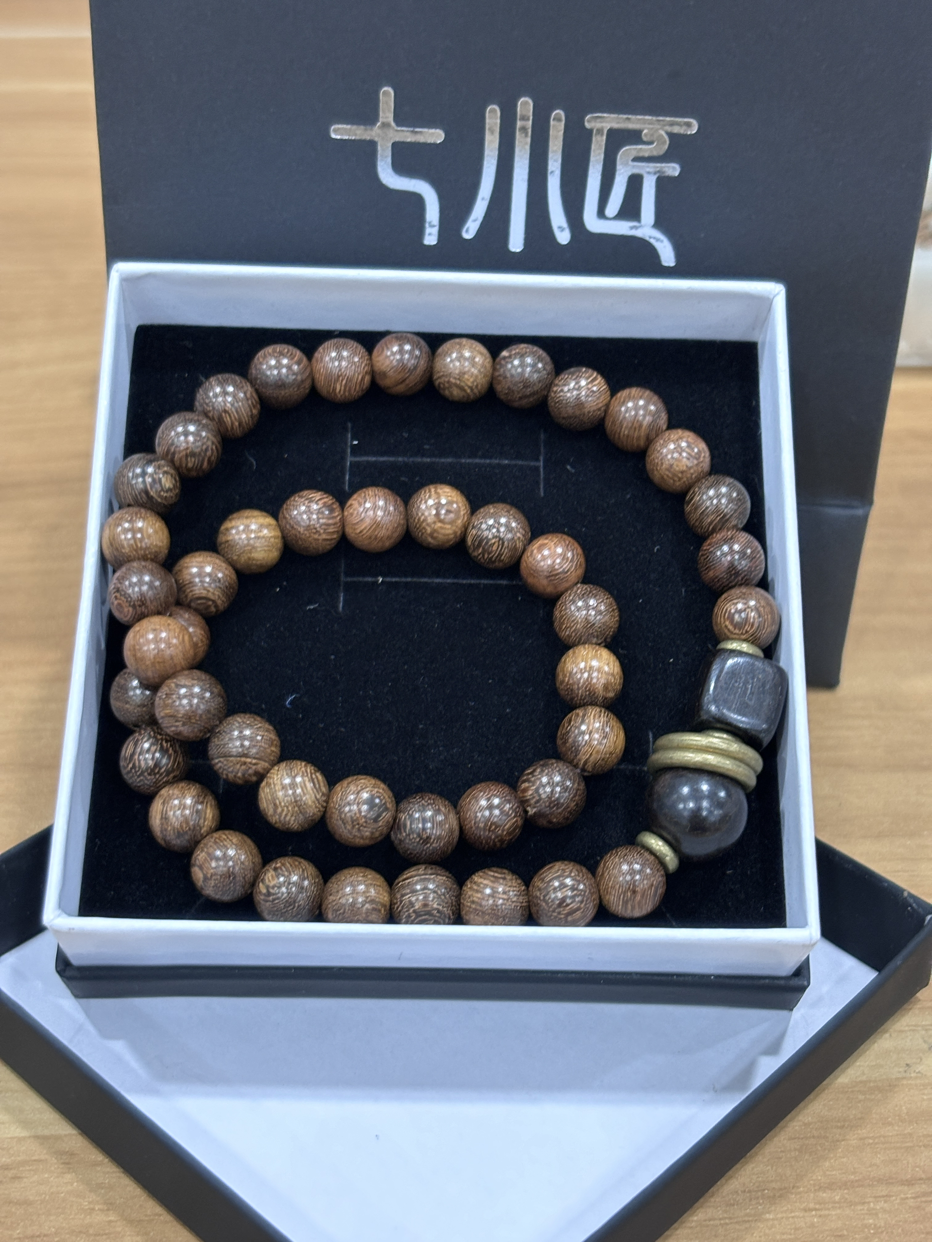戴了段时间七小匠的金丝檀木手串,必须来分享~上手轻盈,不会有累赘感,檀木温润的触感,夏天戴也很舒服。 穿搭上,配中式汉服,古韵直接拉满;搭简约T恤牛仔裤,又添几分文艺随性,低调中透着独特品味,日常和特殊场合戴都很适配,盘玩过程中看着它慢慢变化,超有成就感,入手不亏✨男女都适合