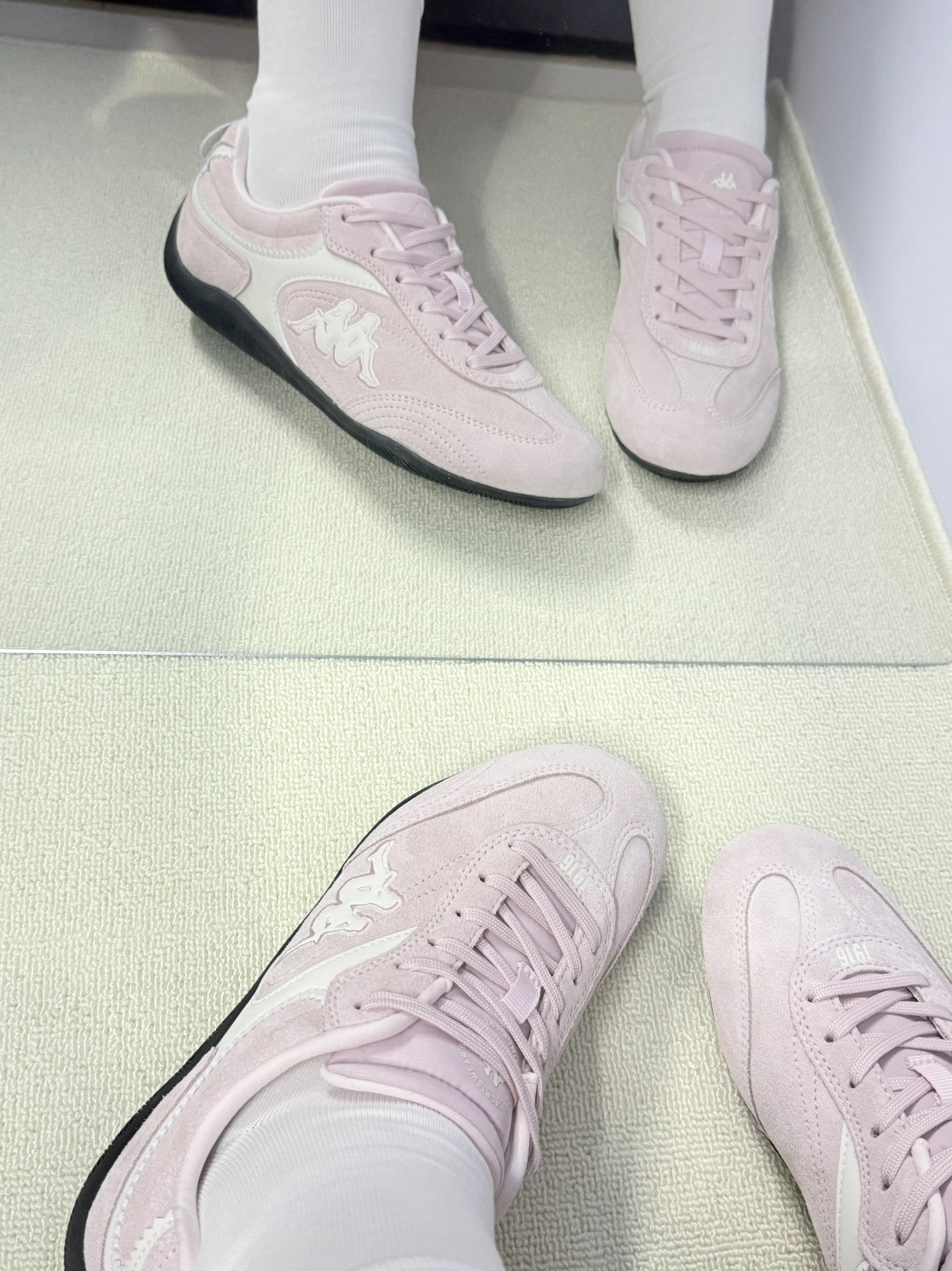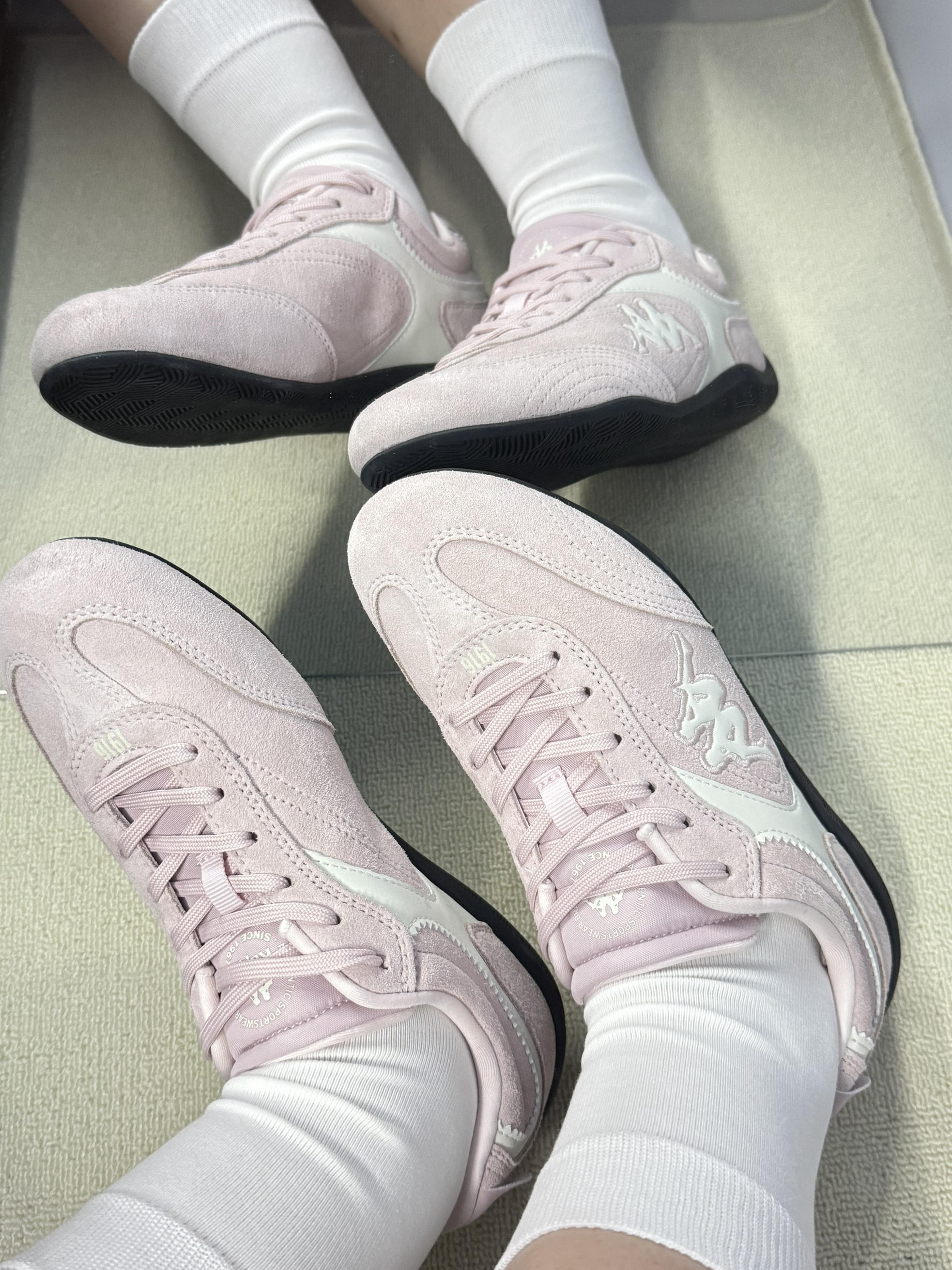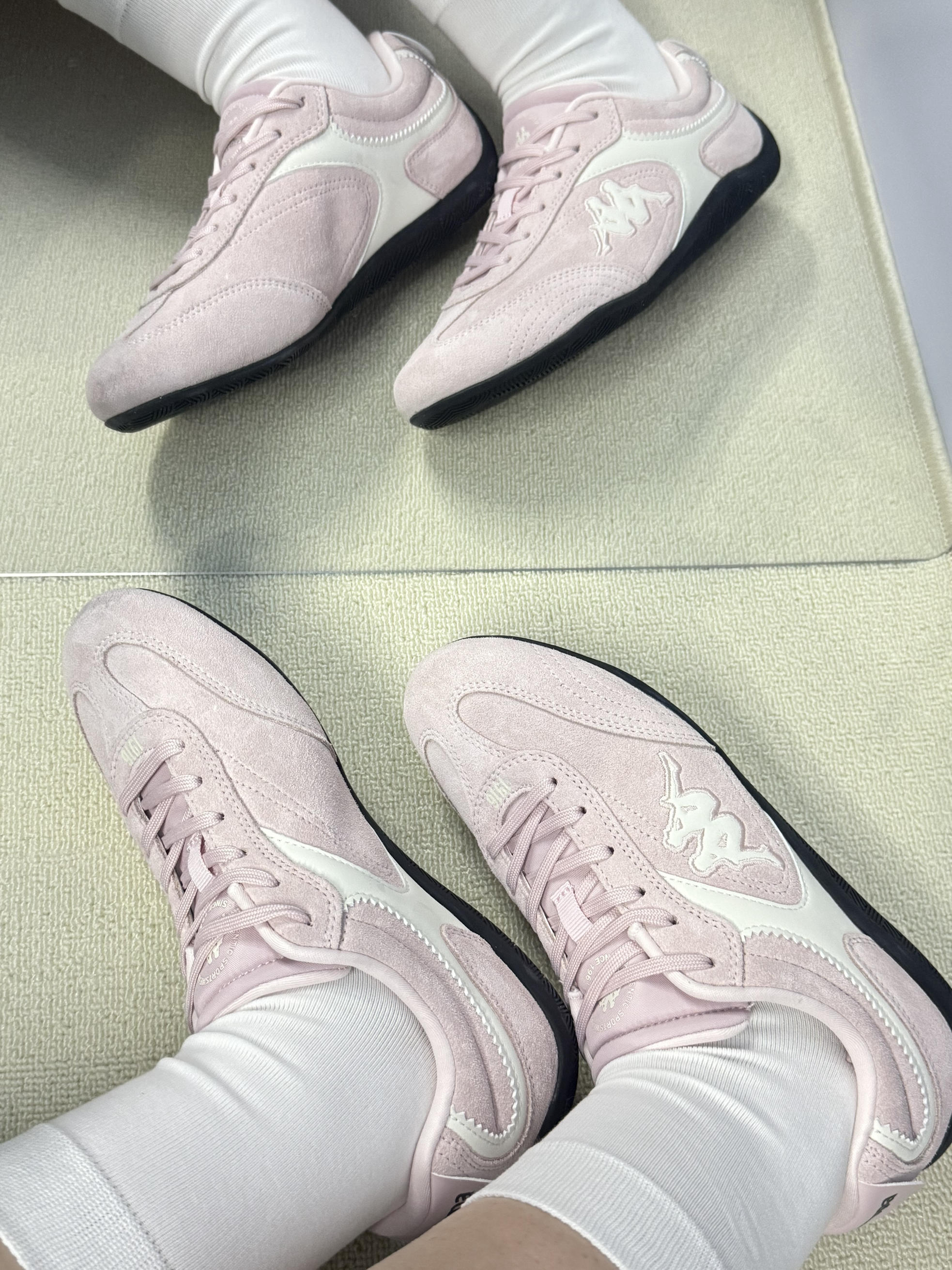 救命!Kappa这双粉德训鞋直接戳中我心巴💘! 奶杏粉自带柔光滤镜,黄黑皮穿都超显白~ 复古鞋头 + 薄底设计,配短裤瞬间腿长两米 皮革拼接耐造又高级,踢到桌角都没痕迹👟 鞋垫软弹像踩云朵☁,暴走 4 小时脚不酸! 防滑底雨天也稳当,安全感拉满~ 搭运动裤元气,配裙子温柔,工装裤也能甜酷 现在出门必穿它,这波血赚!