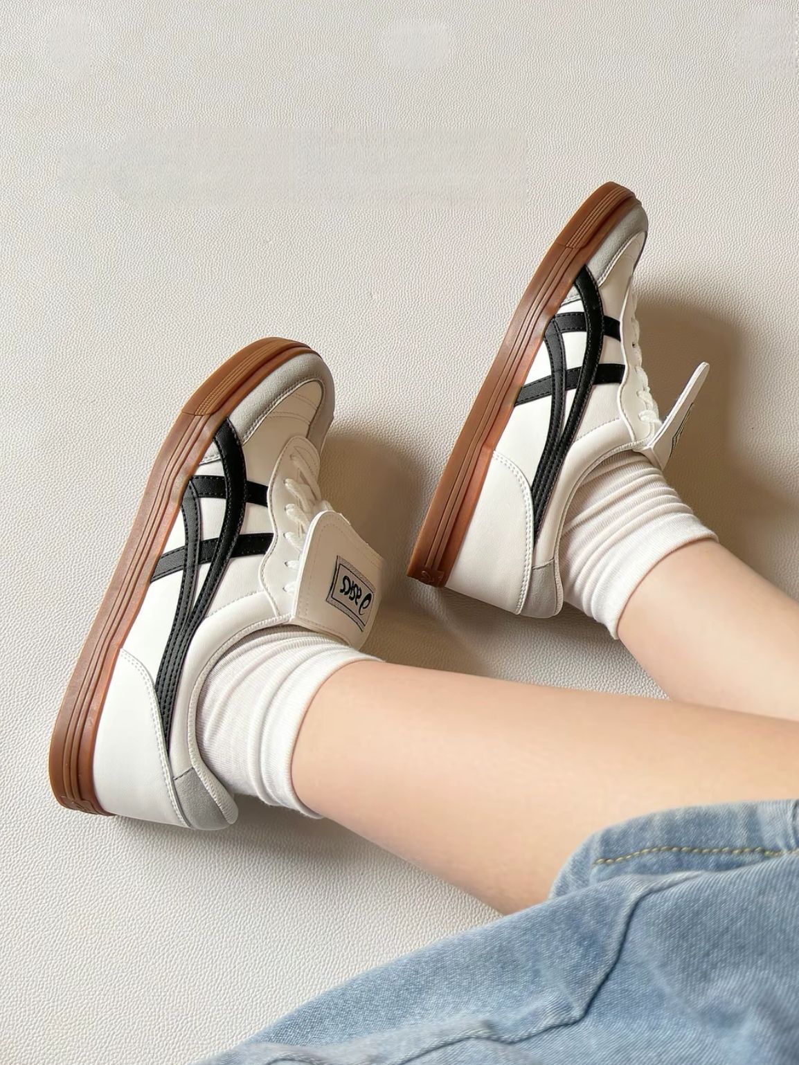 一、外观设计:复古又吸睛 经典白黑配色⚪⚫ 简约中透着复古韵味,魔术贴设计增添潮流感,辨识度拉满。不管是搭配牛仔裤走休闲风,还是配短裙打造青春感,都很适配,轻松拿捏各种穿搭风格,出街回头率超高👀 二、脚感体验:舒适到不想脱 上脚第一感觉就是软弹!中底有缓震设计,走路、跑步时能有效缓冲,长时间行走也不会累脚🦶 鞋楦贴合亚洲脚型,包裹感恰到好处,像我这种脚型稍宽的,穿起来也不挤脚,舒适度拉...