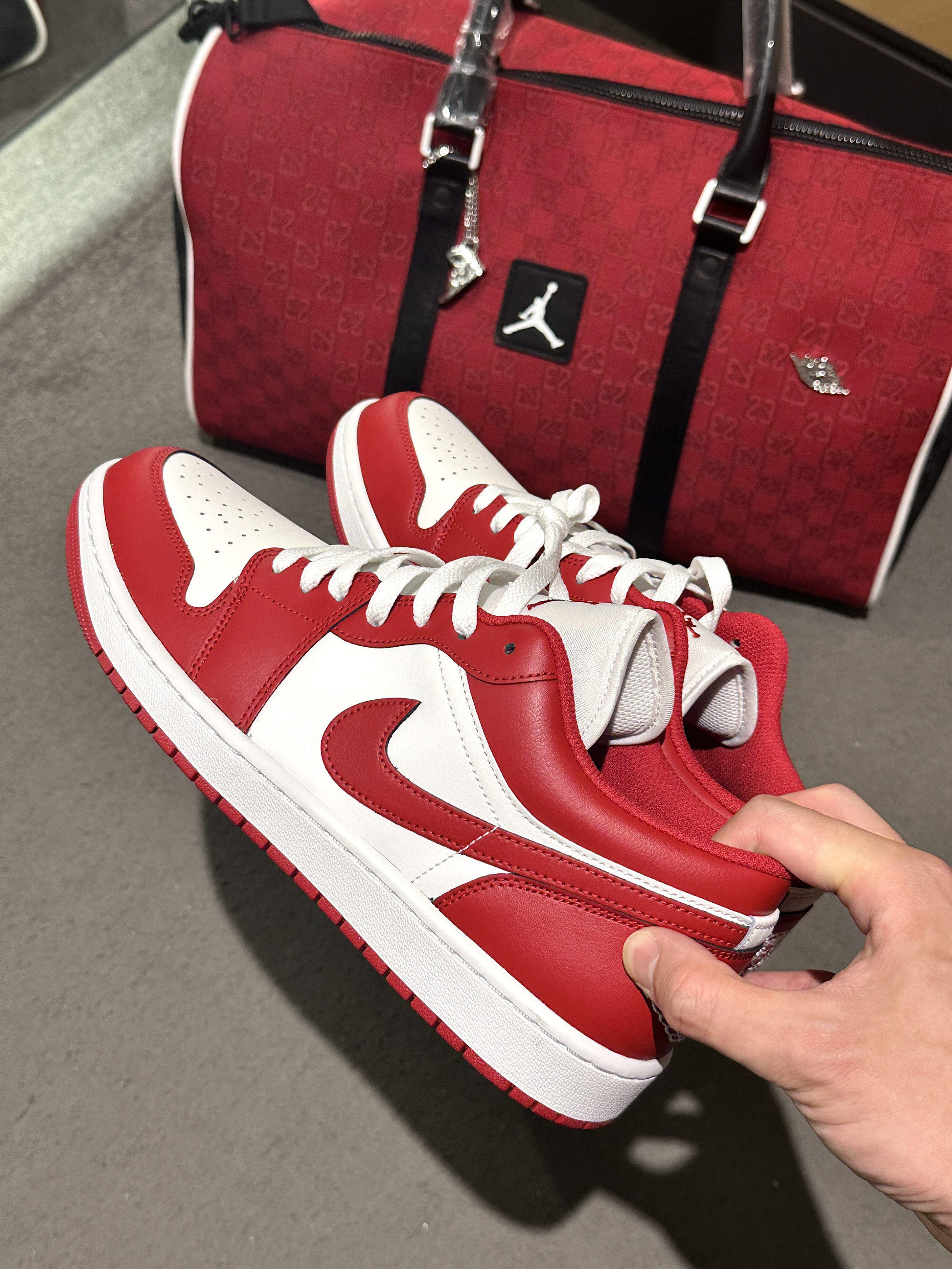 AJ1低帮板鞋经典配色来袭‼️白红芝加哥⁉️ 夏日炎炎,推荐你尝试一下美式穿搭风格~ AJ1板鞋白红色来咯,相比芝加哥配色,颜色会更红一些,Swoosh不是黑色,但足以支撑你的夏日穿搭!😍 穿起来轻便帅气,轻松拿捏氛围感~‼️