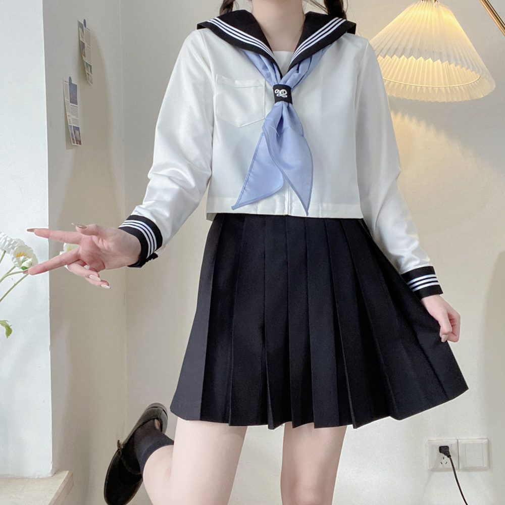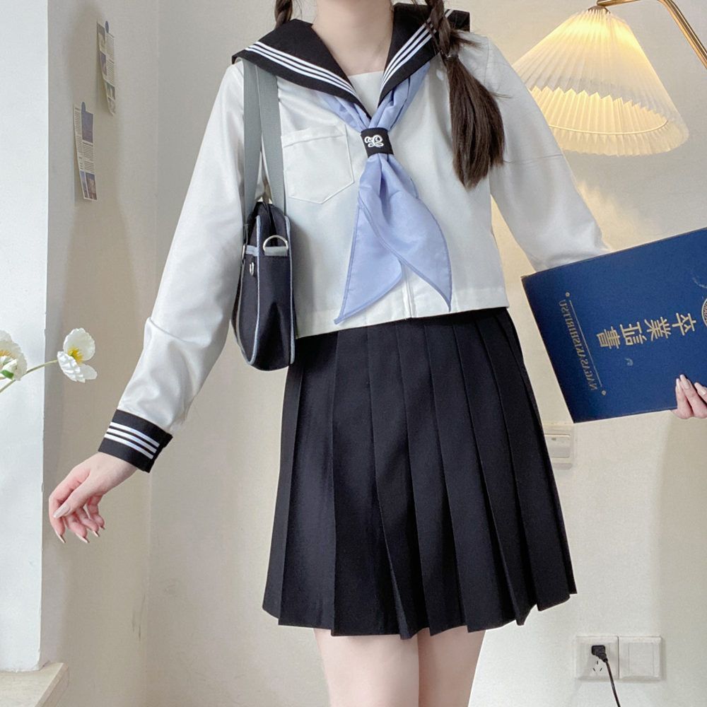 jk制服正版白三本基础款中间服长袖水手服套装 夏衣穿搭