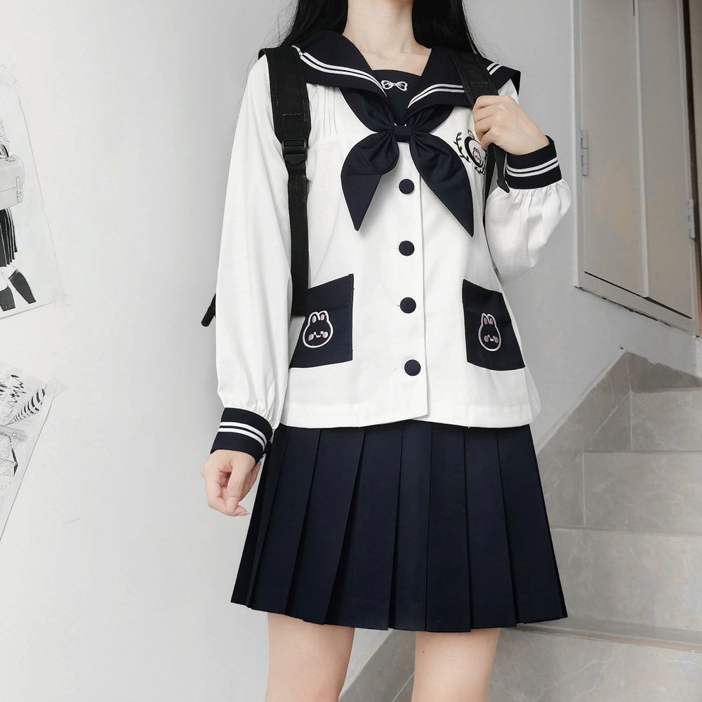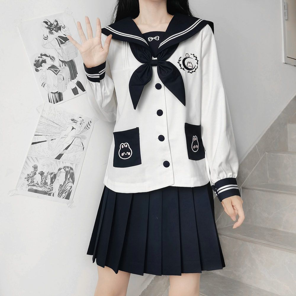原创月中兔正统jk制服可爱幼稚园软妹风水手服中间服 夏衣穿搭